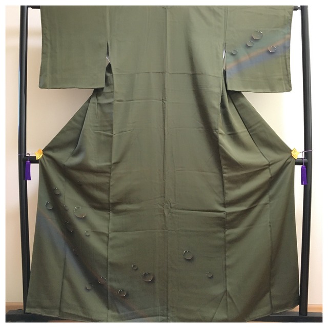 美品 正絹 訪問着 雫柄 仕付け付き 紋無 深緑 身丈158 裄63