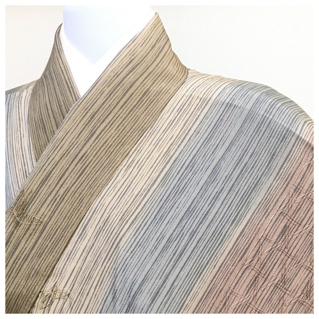 ご覧頂きありがとうございます。 ご紹介します商品は、 美品 正絹 小紋 スワトウ刺繡 染分け 小紋 正絹 身丈160 裄68.5 リサイクル着物 です。 絹本来の艶やかで光沢のあり、縦縞の染分け柄が上品です。 蝶々はスワトウ刺繡を施していてお洒落です。 中古品となりキレイで着用に気になるシミ汚れもありません。 画像色は出力により異なる場合がありますが、 1枚目が一番近くなるように撮影しています。 一点物となりますので、是非いかがでしょうか。 ■サイズ 適応サイズ:155cm~165cm 身丈:160cm 裄丈:68.5cm 袖丈:48cm 袖幅:34cm 前幅:25cm 後幅:28.5cm ■詳細 素 材:正絹 色 味:ベージュ系 状 態:2 ■状態の説明 1・・・新品 2・・・中古品となりますが、良い状態のお品です。 3・・・少々の汚れ等は御座いますが、中古品としては良い状態です。 4・・・汚れや傷などの使用感があり、使用は個人差になると思われます。 5・・・レア・アンティーク・趣味、向けです。 6・・・リメイク・素材としてご利用をお願いします。
