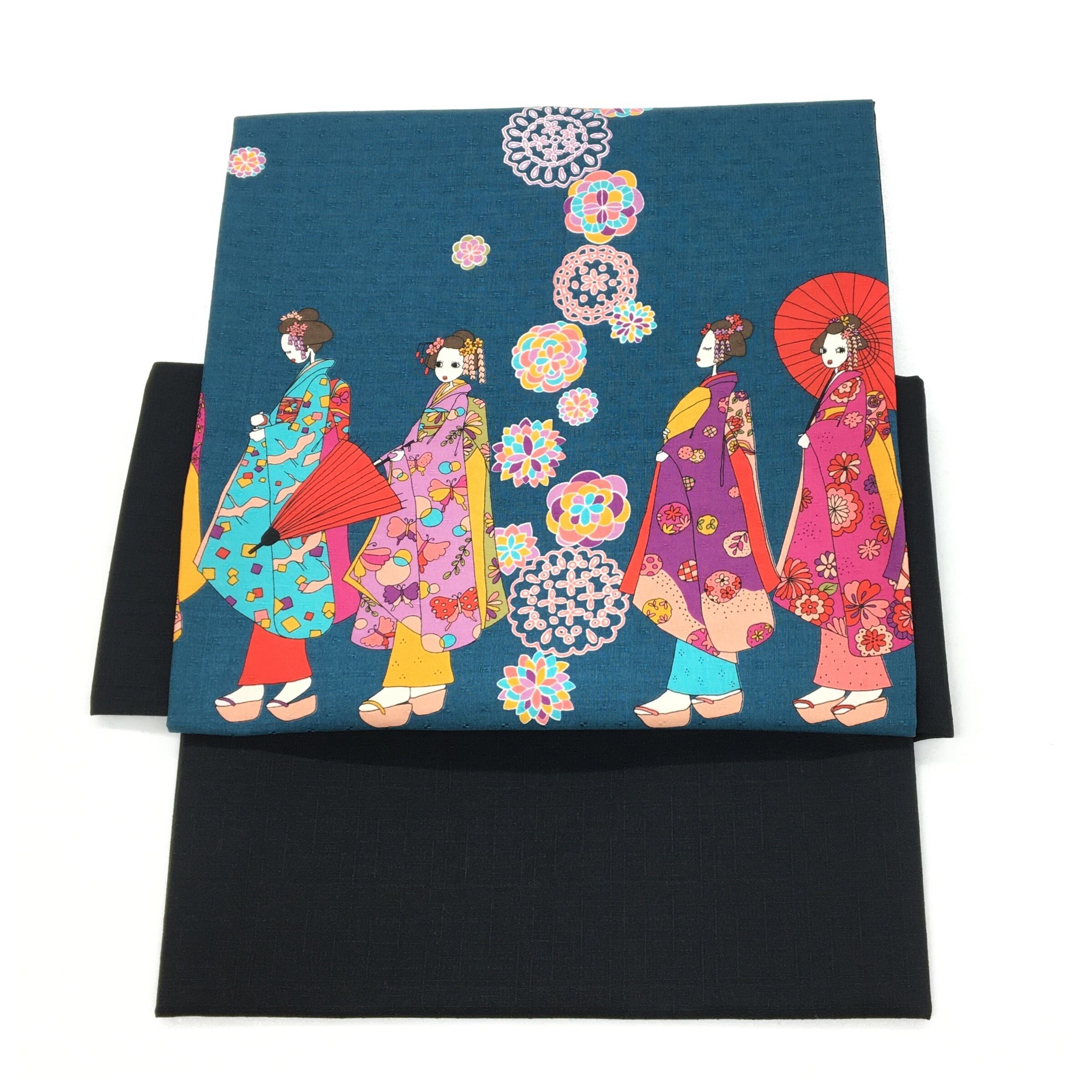 簡単装着 二部式 青緑 舞子さん 作り帯 黒 綿100% コットン ファブリック帯 新品 です。