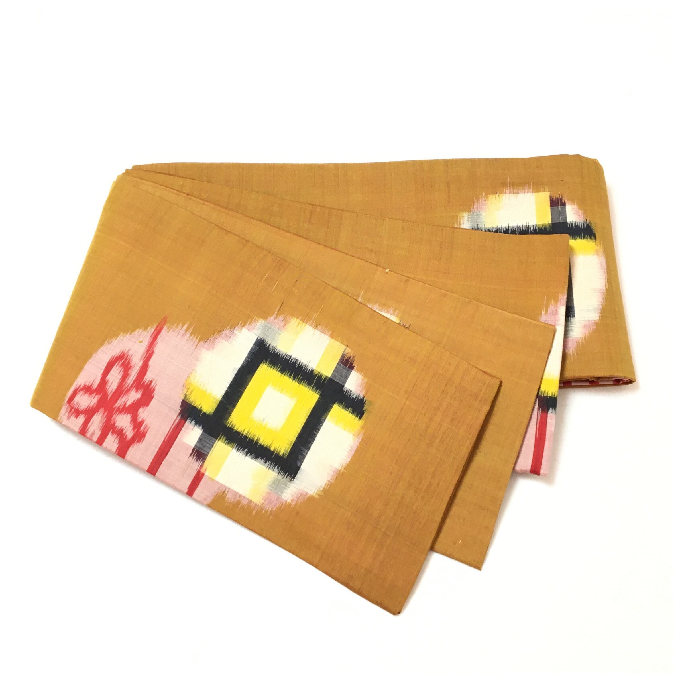 正絹 半幅帯 アンティーク 芥子色 全通柄 長さ408