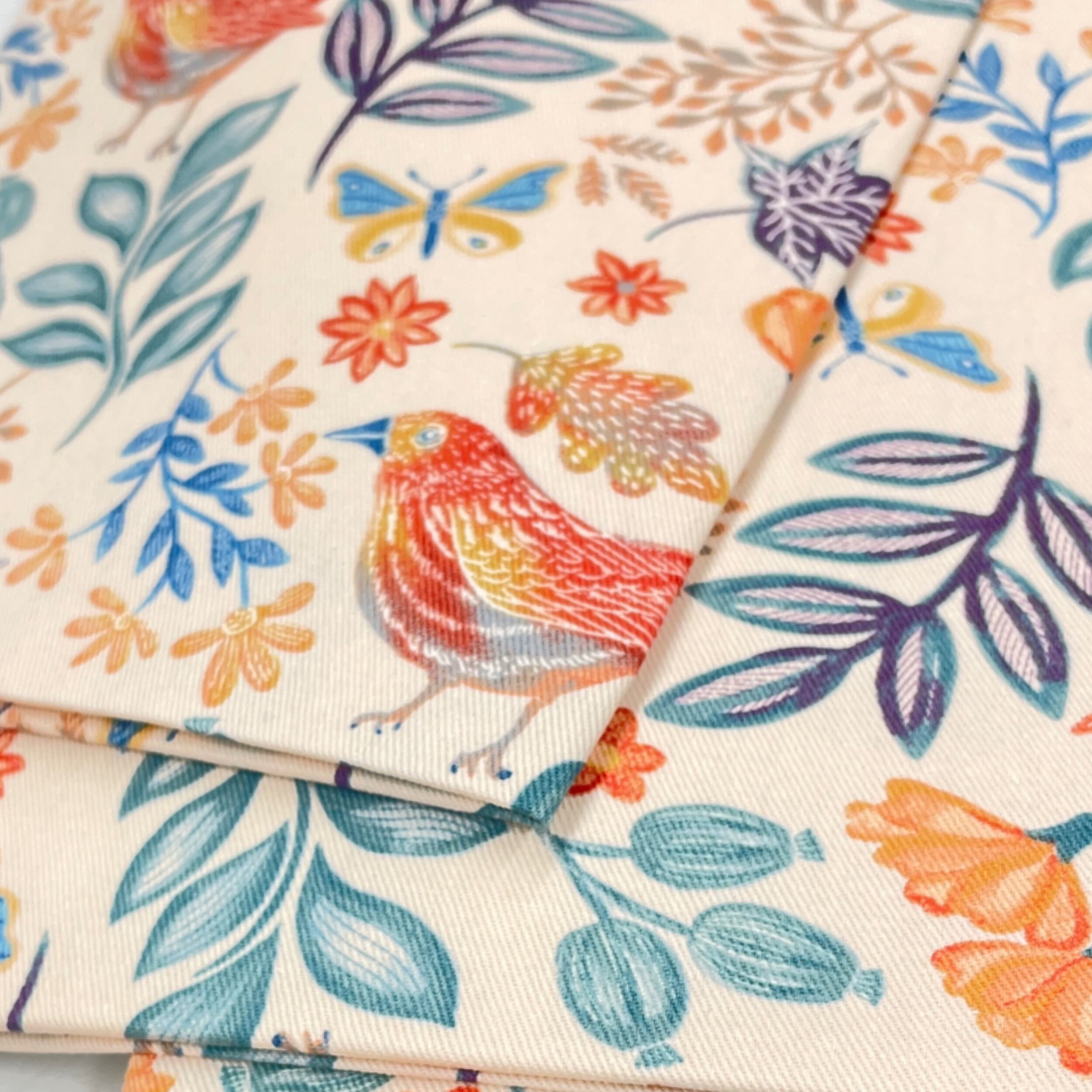 鳥模様がお洒落なファブリックの半幅帯です。