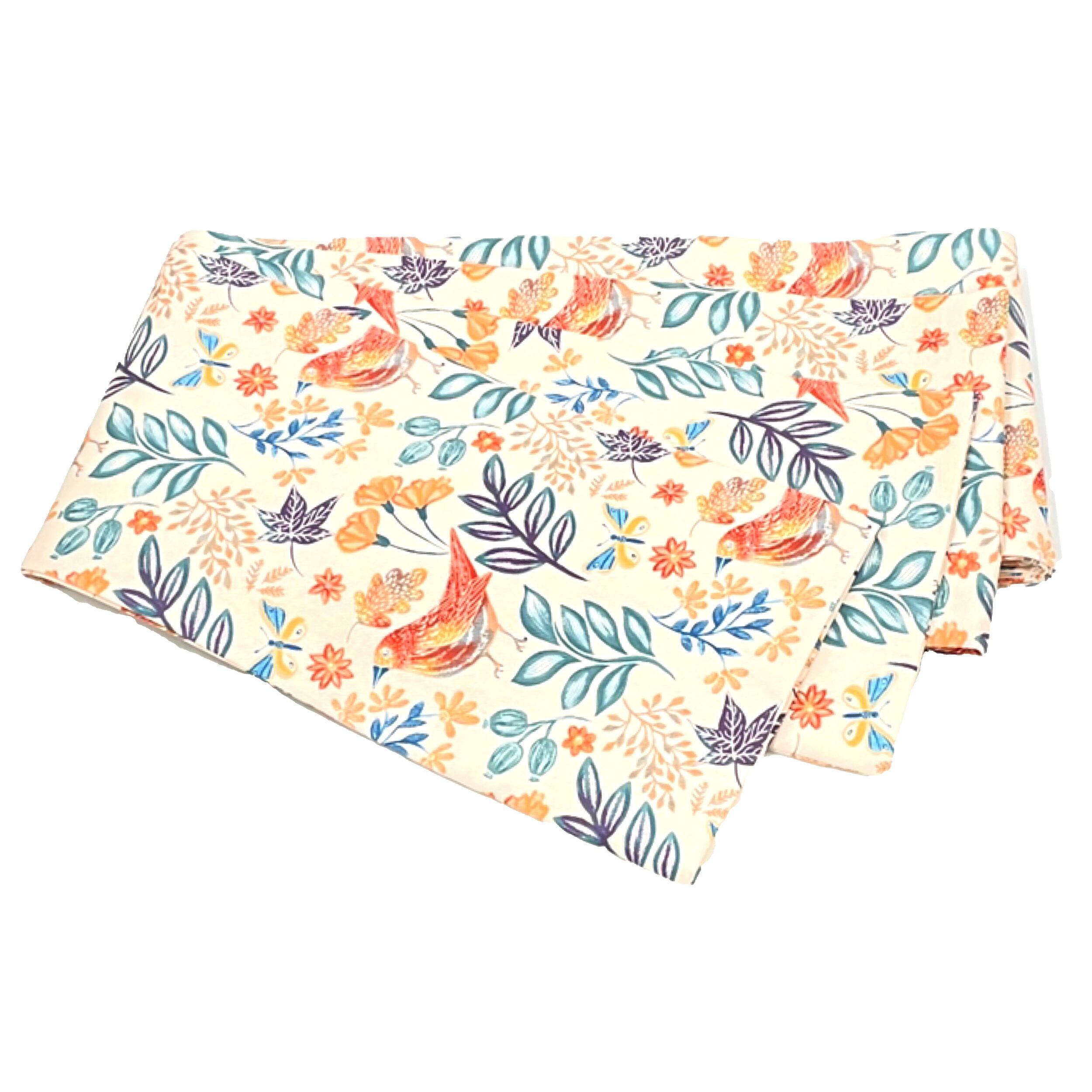 半幅帯 綿 コットン 鳥模様 パステルカラー オレンジ系 長さ440 全通 新品です。