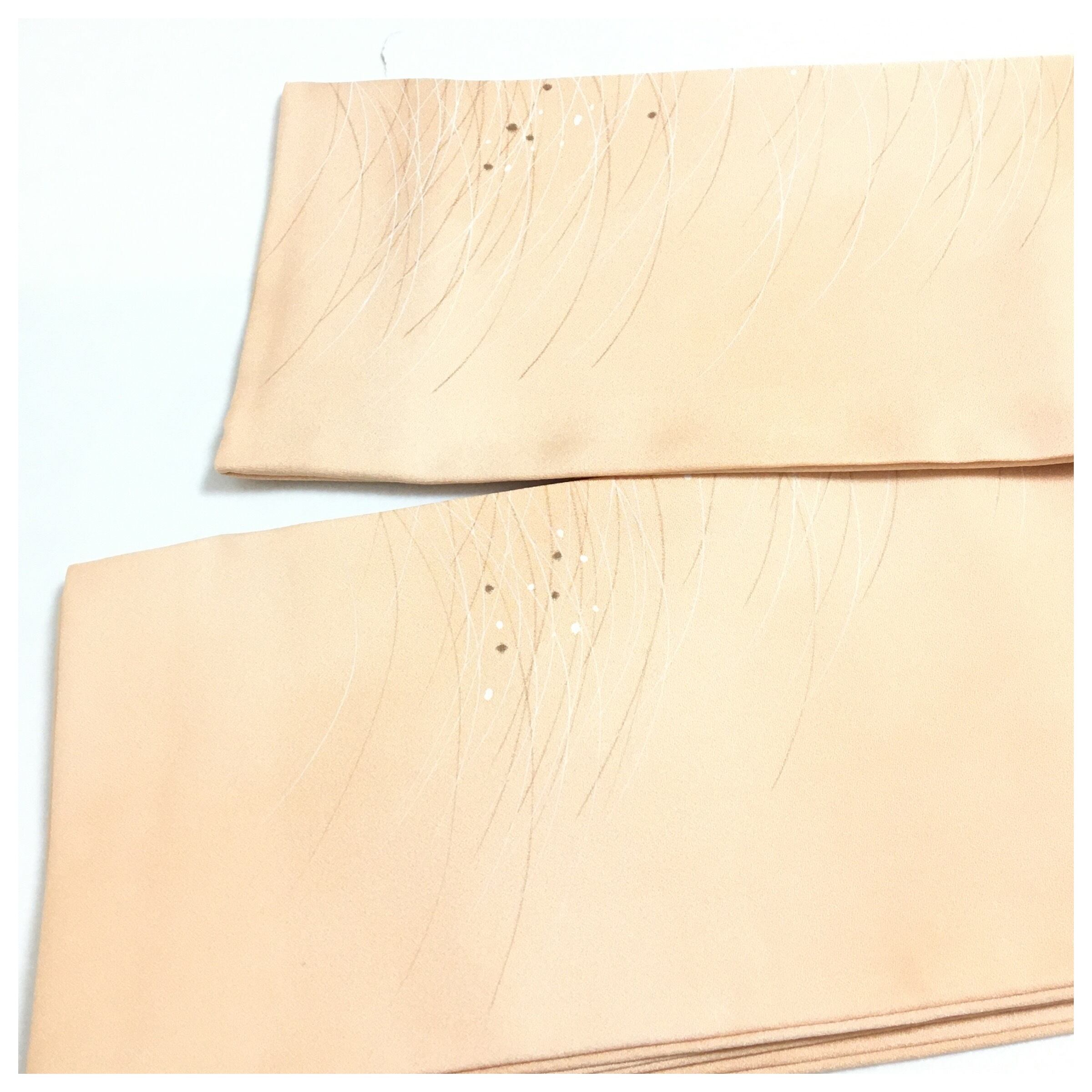 正絹 半幅帯 淡いオレンジ 草模様 部分柄 個性派 長さ428 幅16 中古品 です。