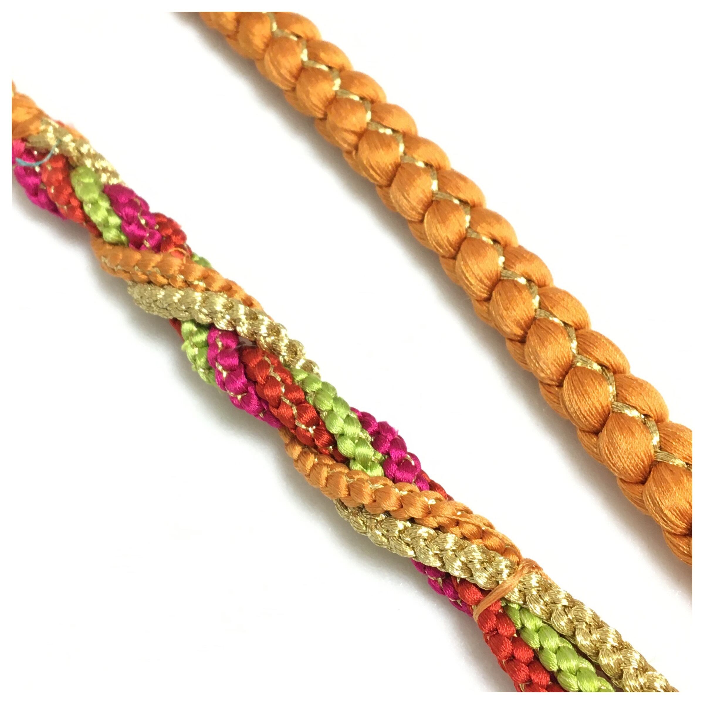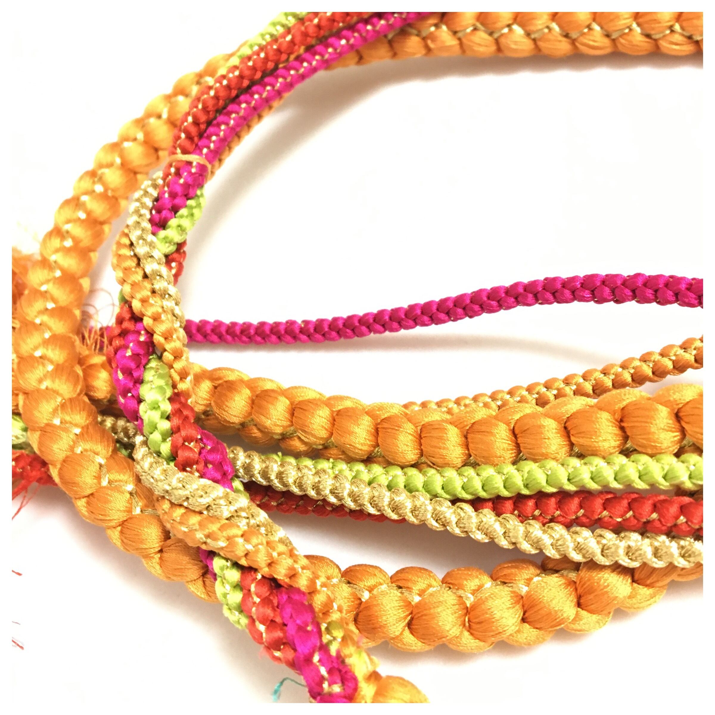 目を惹く鮮やかな黄色やピンク色の振袖用の帯締めです。
