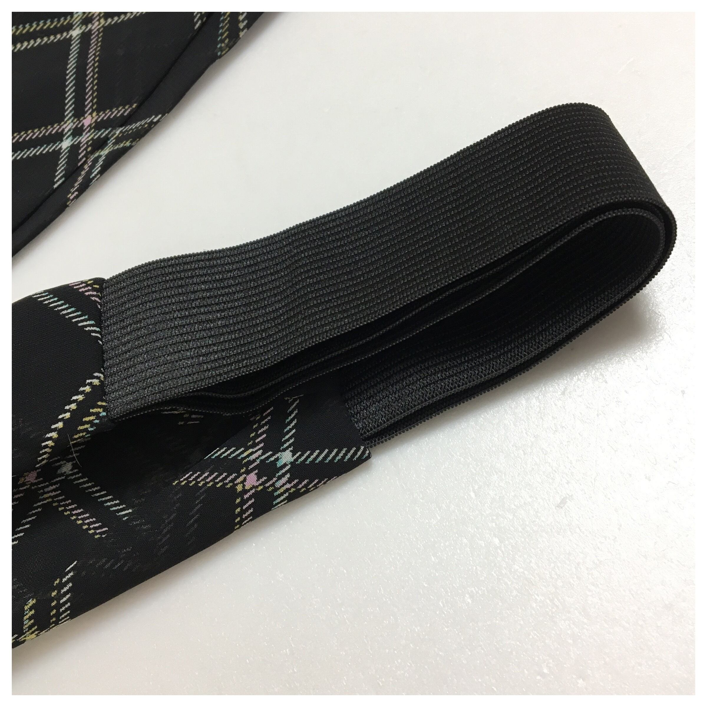 黒地に格子柄のシフォン生地で仕上げた三重仮紐です。