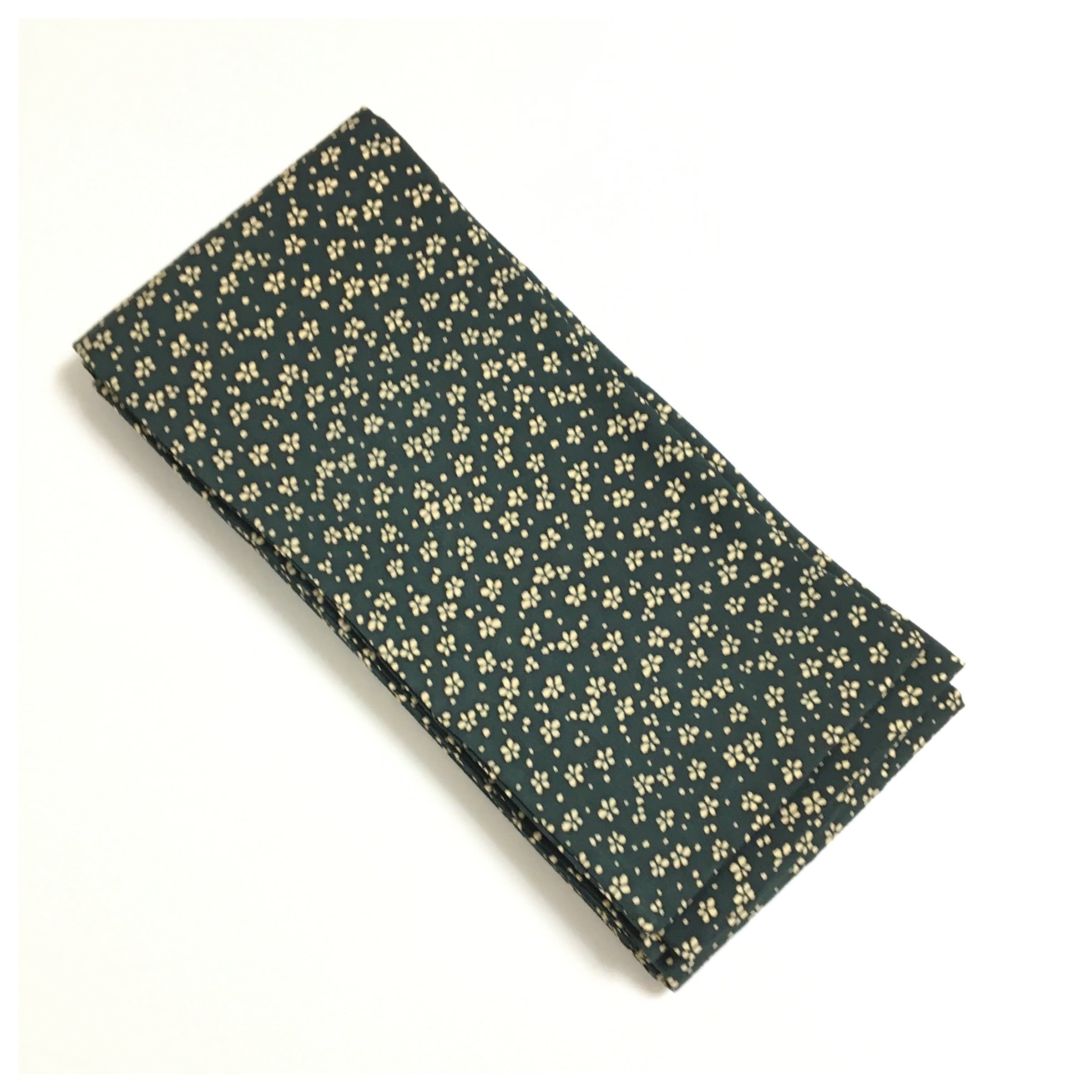 正絹 小花柄 黒地 小紋 半幅帯 個性派 長さ408 幅16 中古品 です。