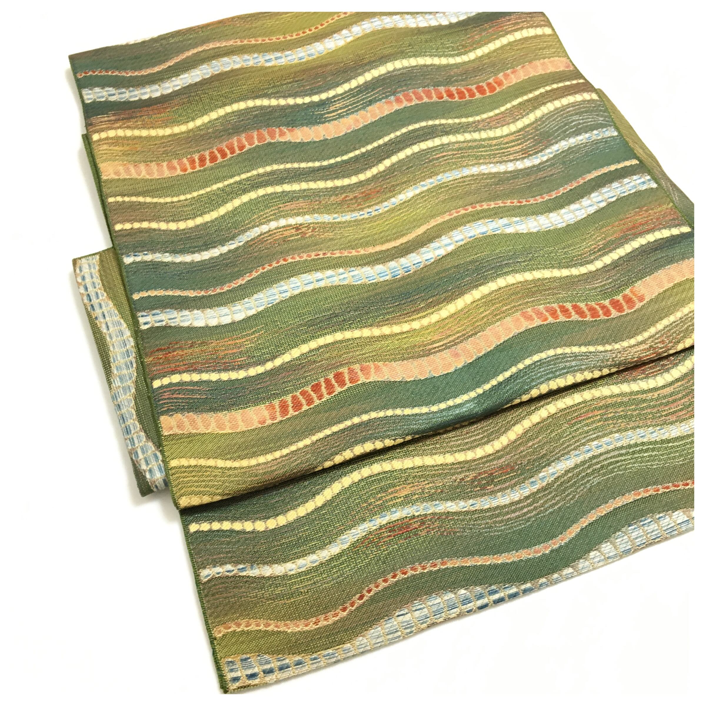 美品 正絹【二部式 名古屋帯】薄手 横段 簡単装着 和装 中古 リサイクル品