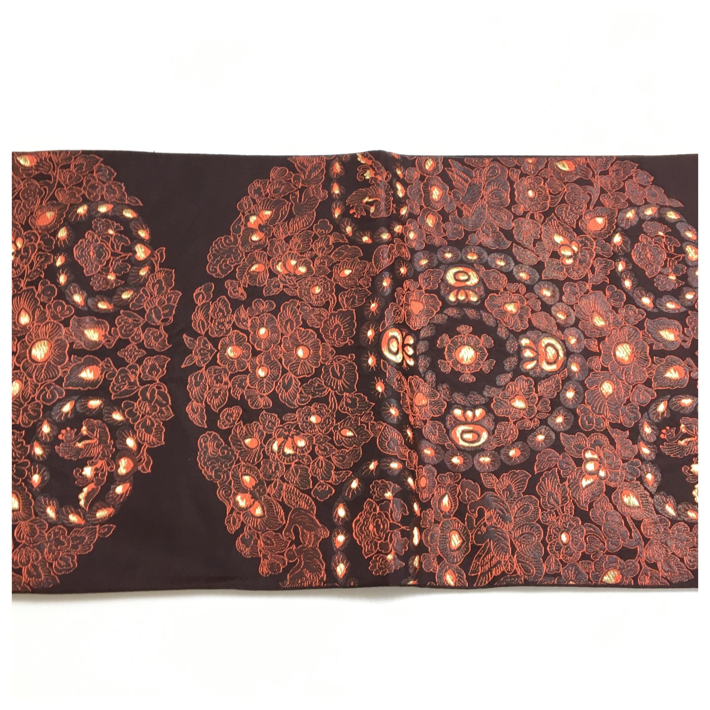 正絹 袋帯 焦げ茶 華紋 二部式 二重太鼓 作り帯 です。