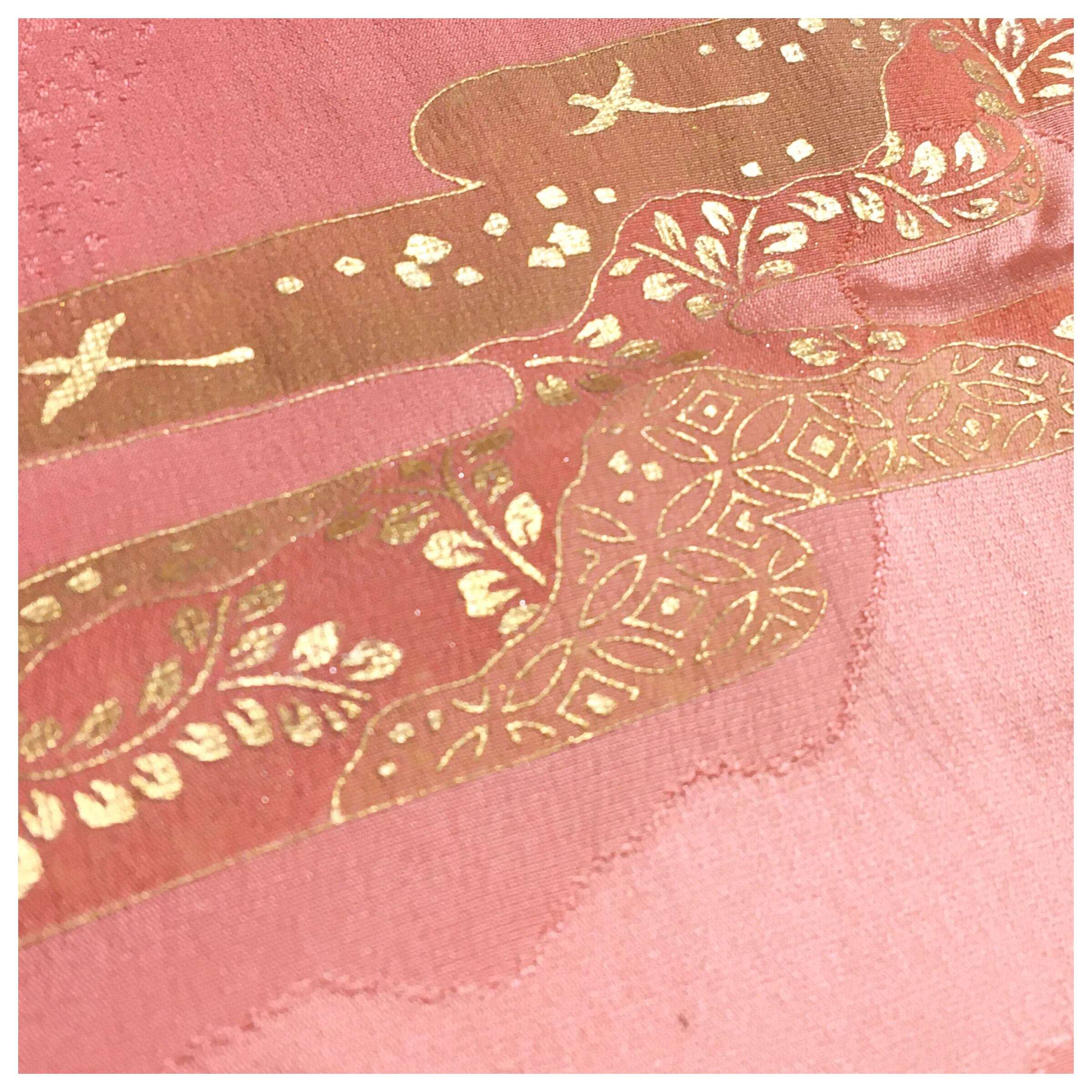 【帯揚げ】正絹 ピンク 金彩 ヱ霞 和装小物 中古 リサイクル品