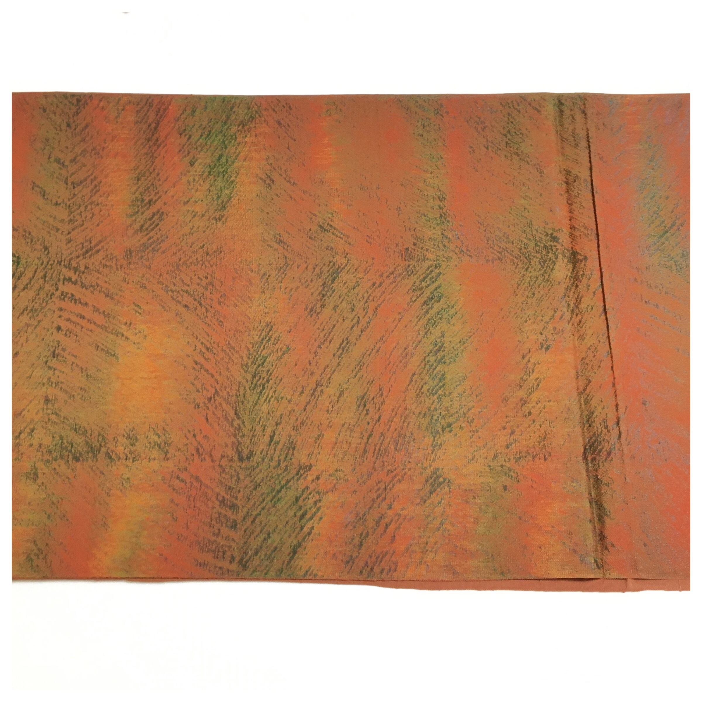 美品 上質 正絹 袋帯 二部式 茶 暈し柄 二重太鼓 作り帯 です。