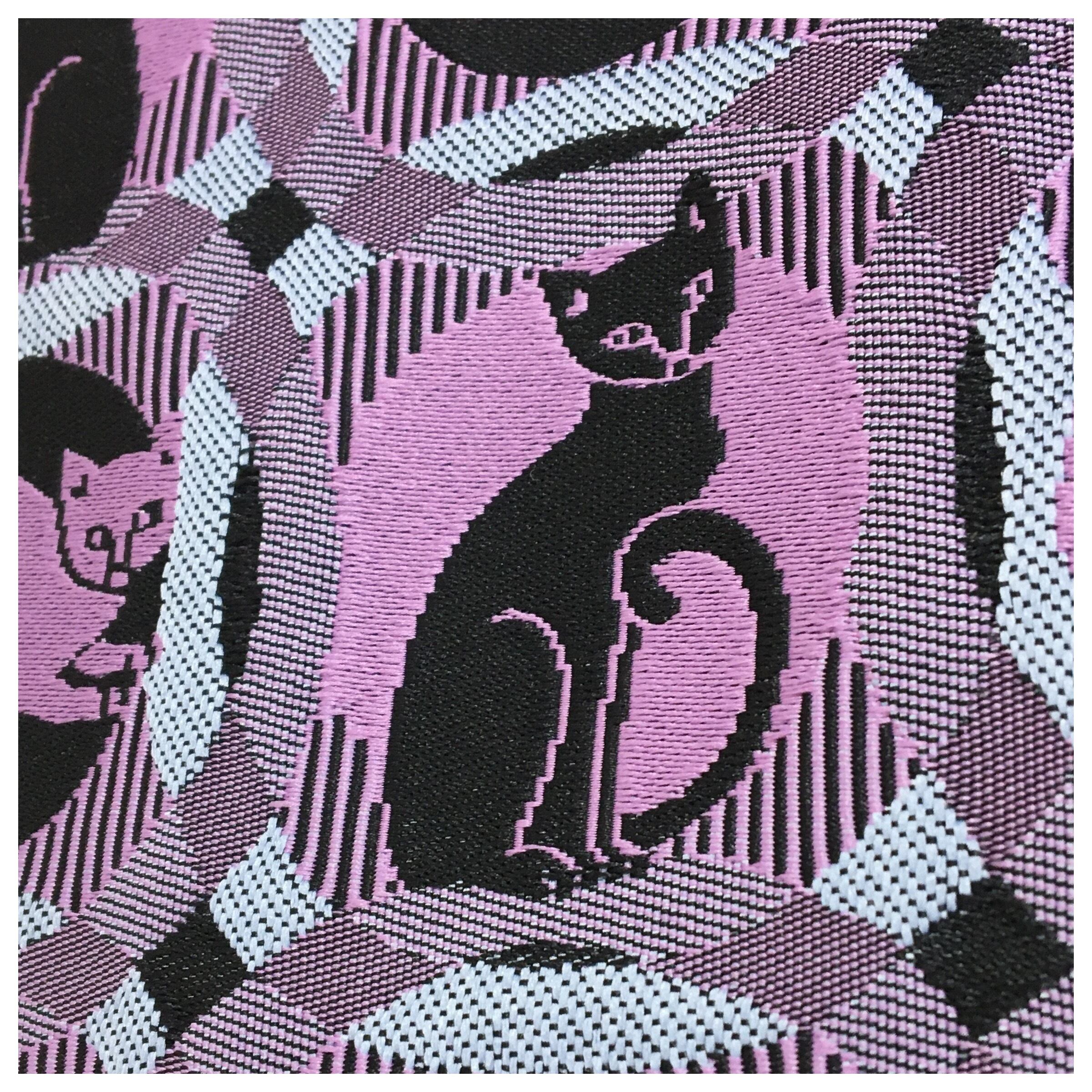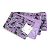美品 未使用 猫 半幅帯 化繊 紫 両面違い 長さ400