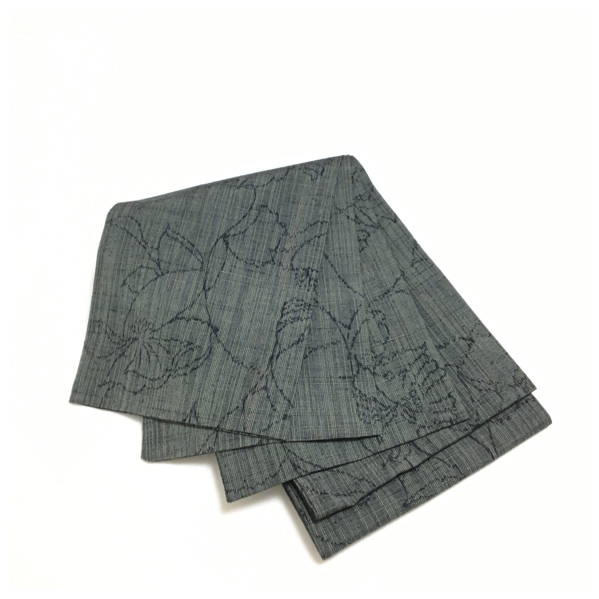 美品 正絹 紬 兵児帯 グレー 華柄 長尺400 幅16 中古品です。