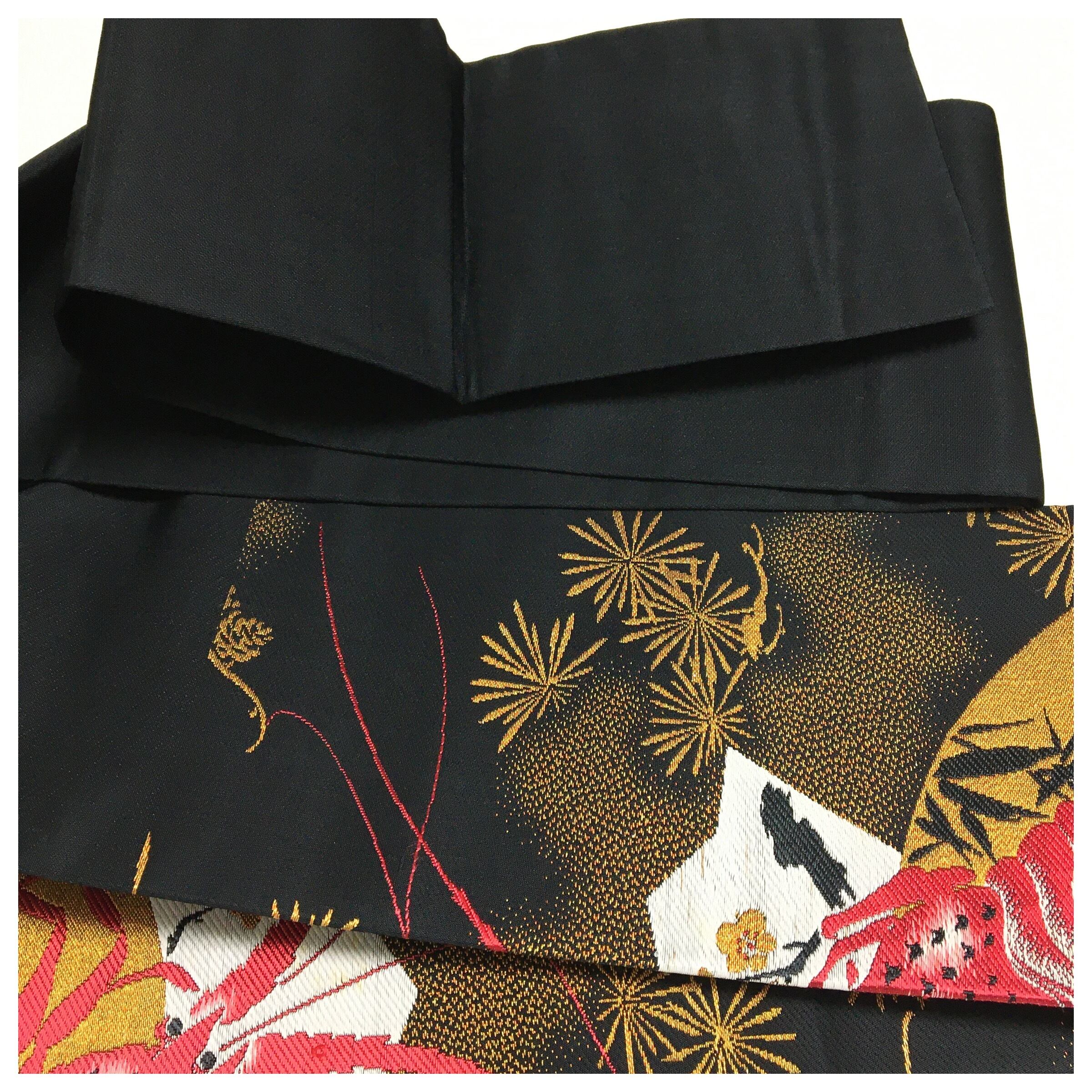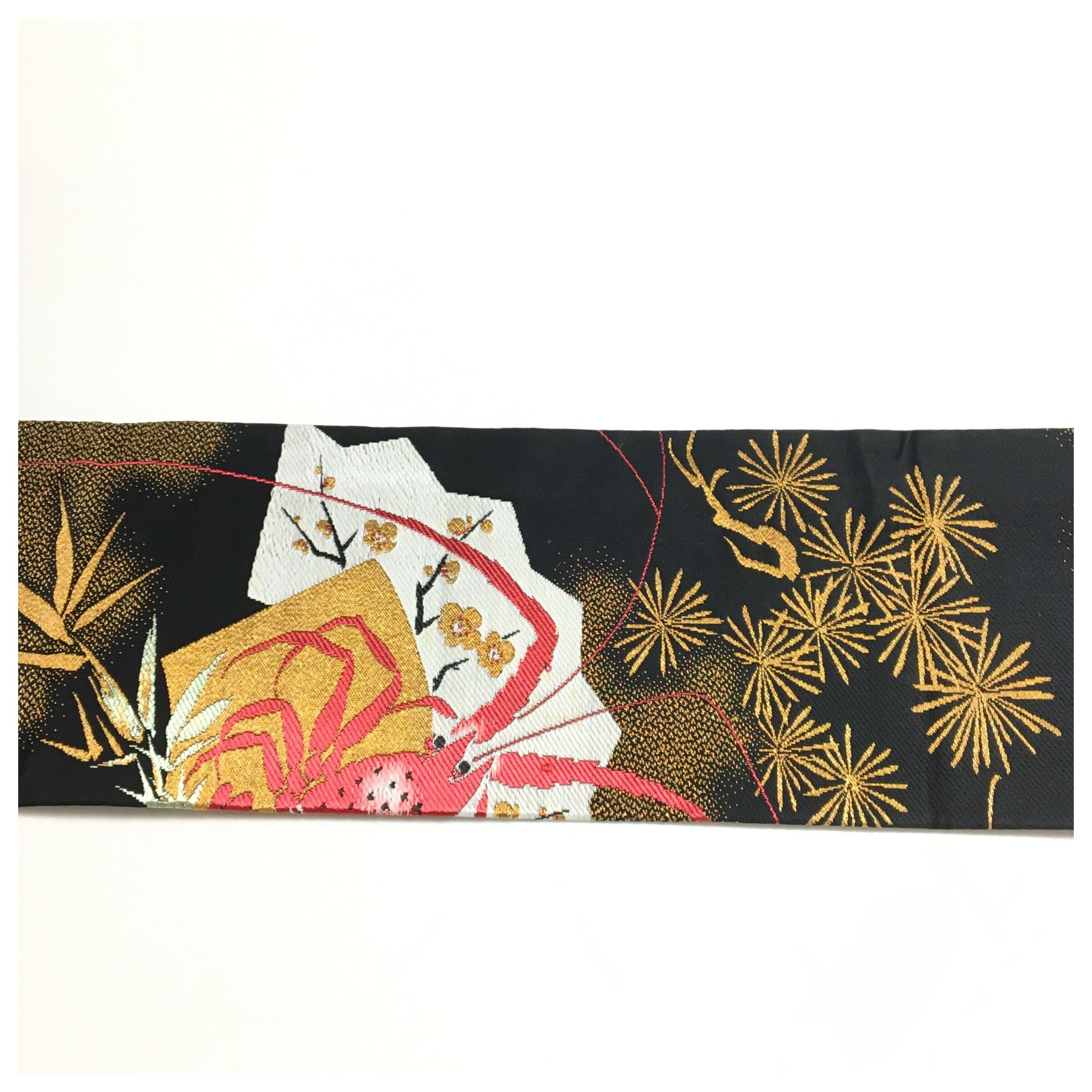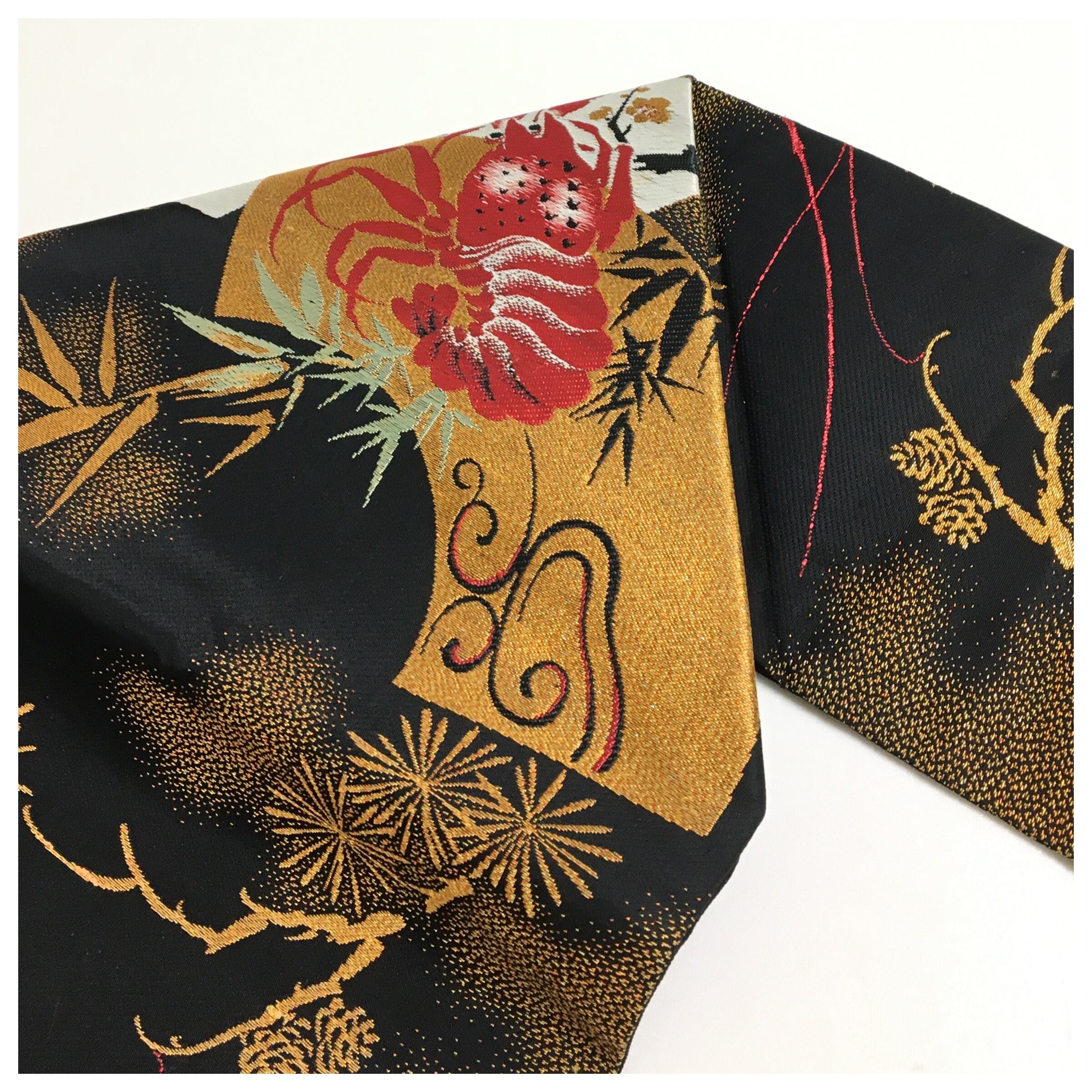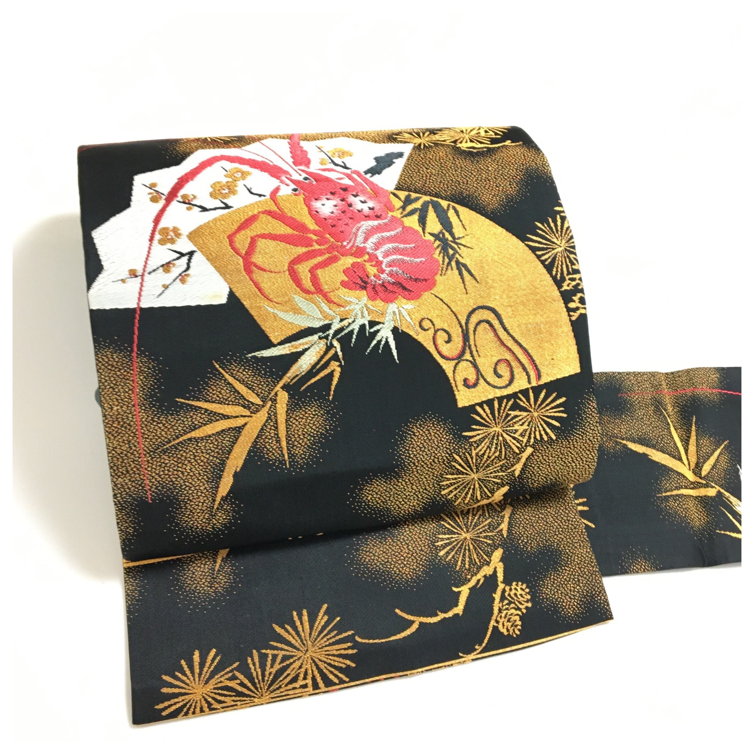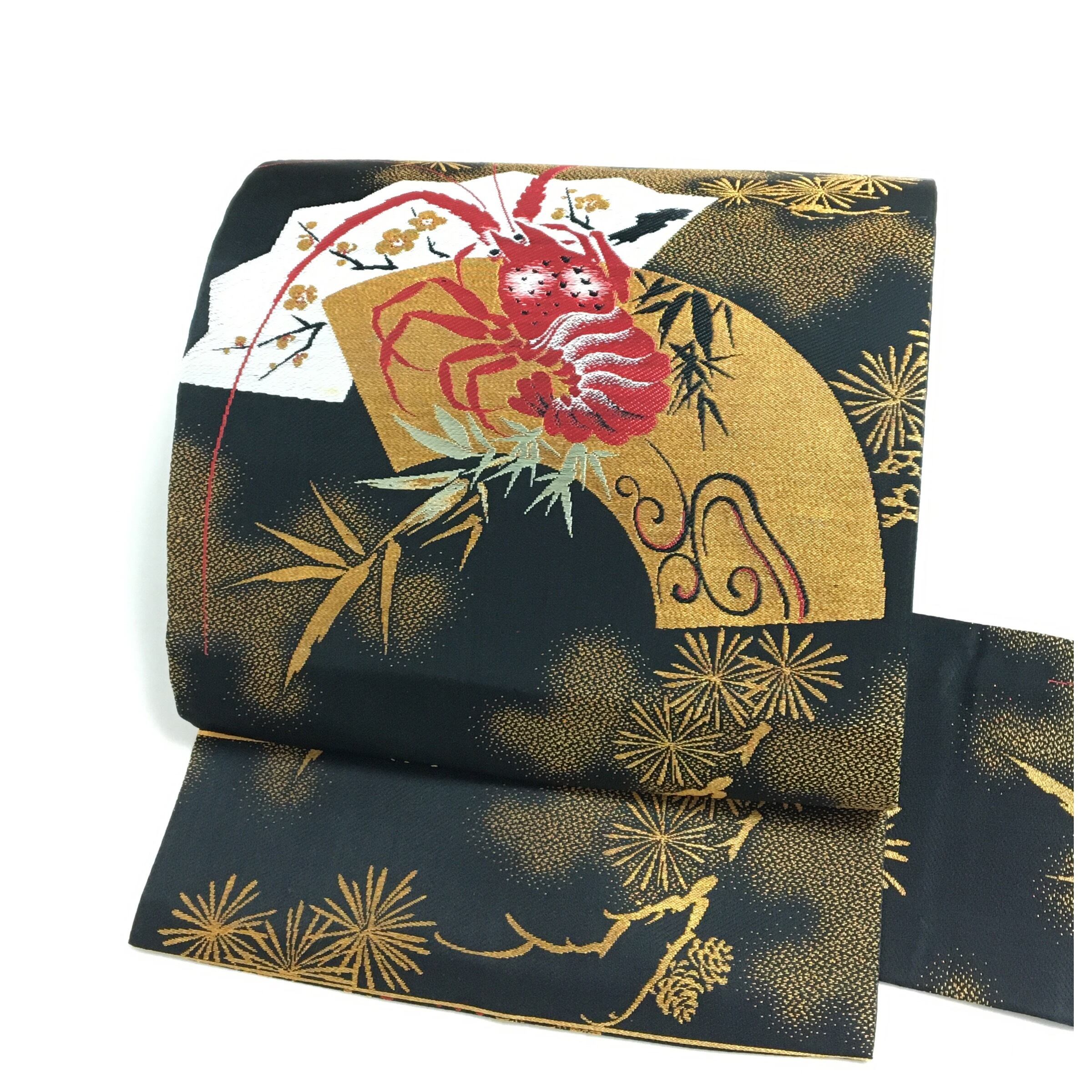 正絹 アンティーク 伊勢海老 大胆 大柄 名古屋帯 黒 長さ340 です。
