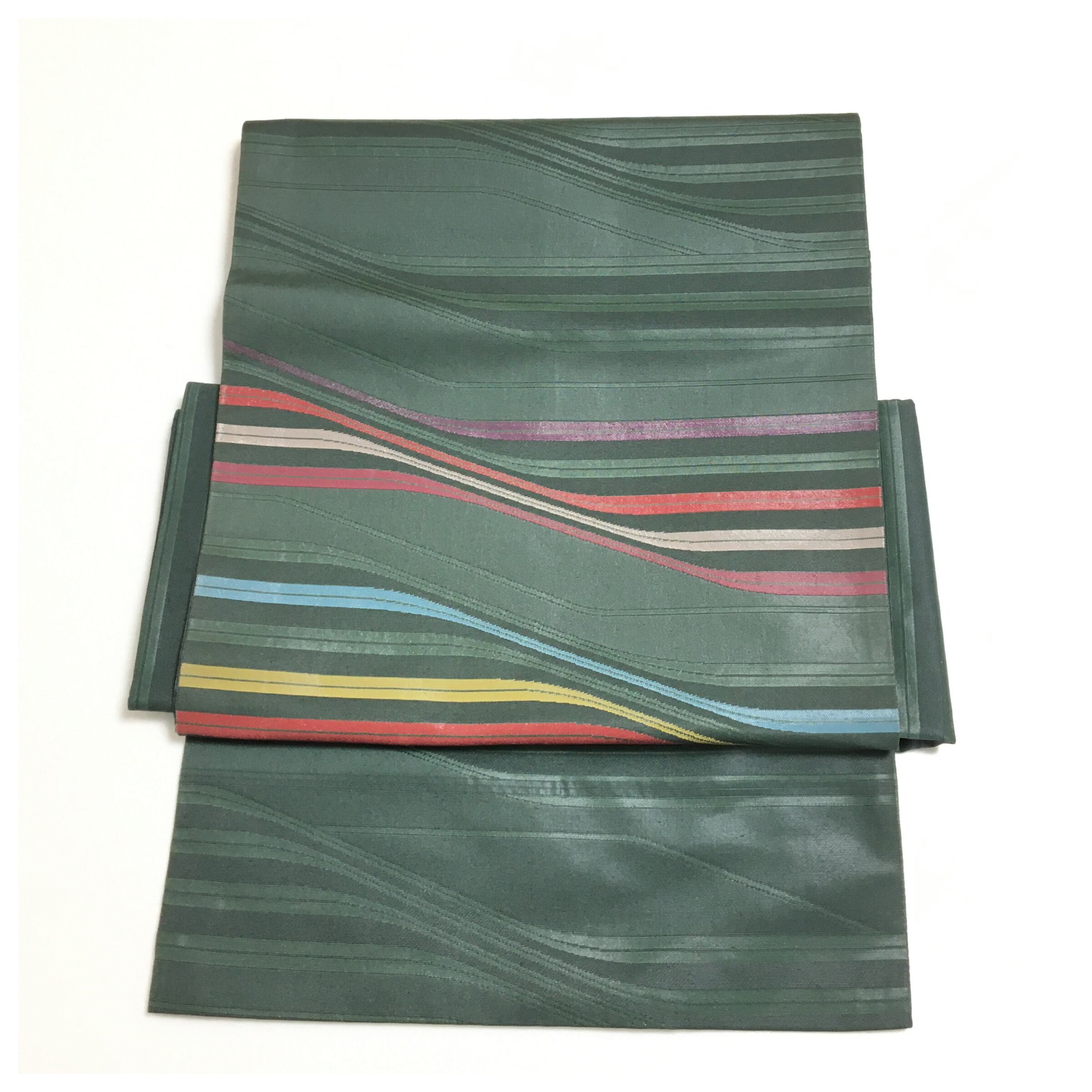 落ち着いたグリーン色で着物にあわせやすい意匠です。