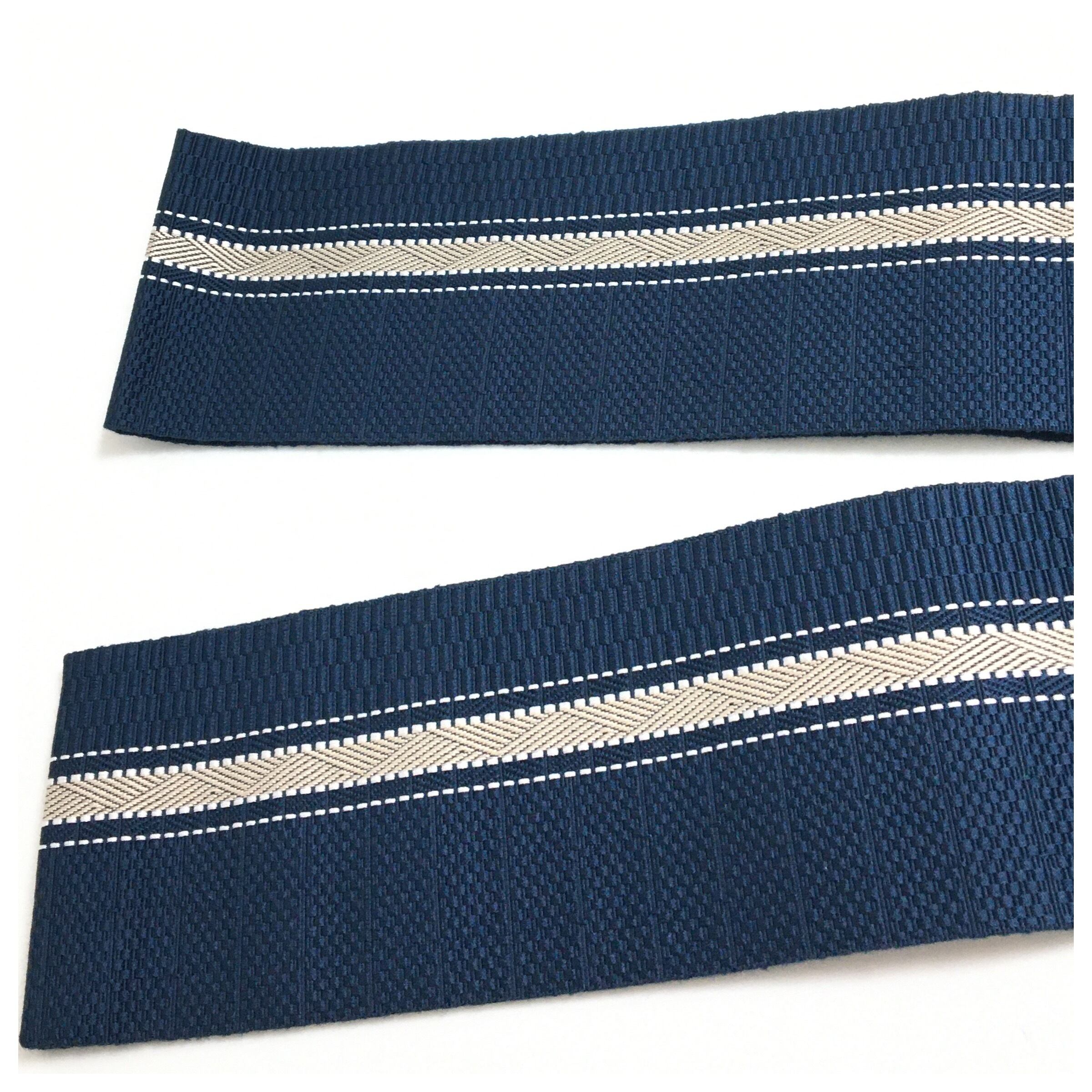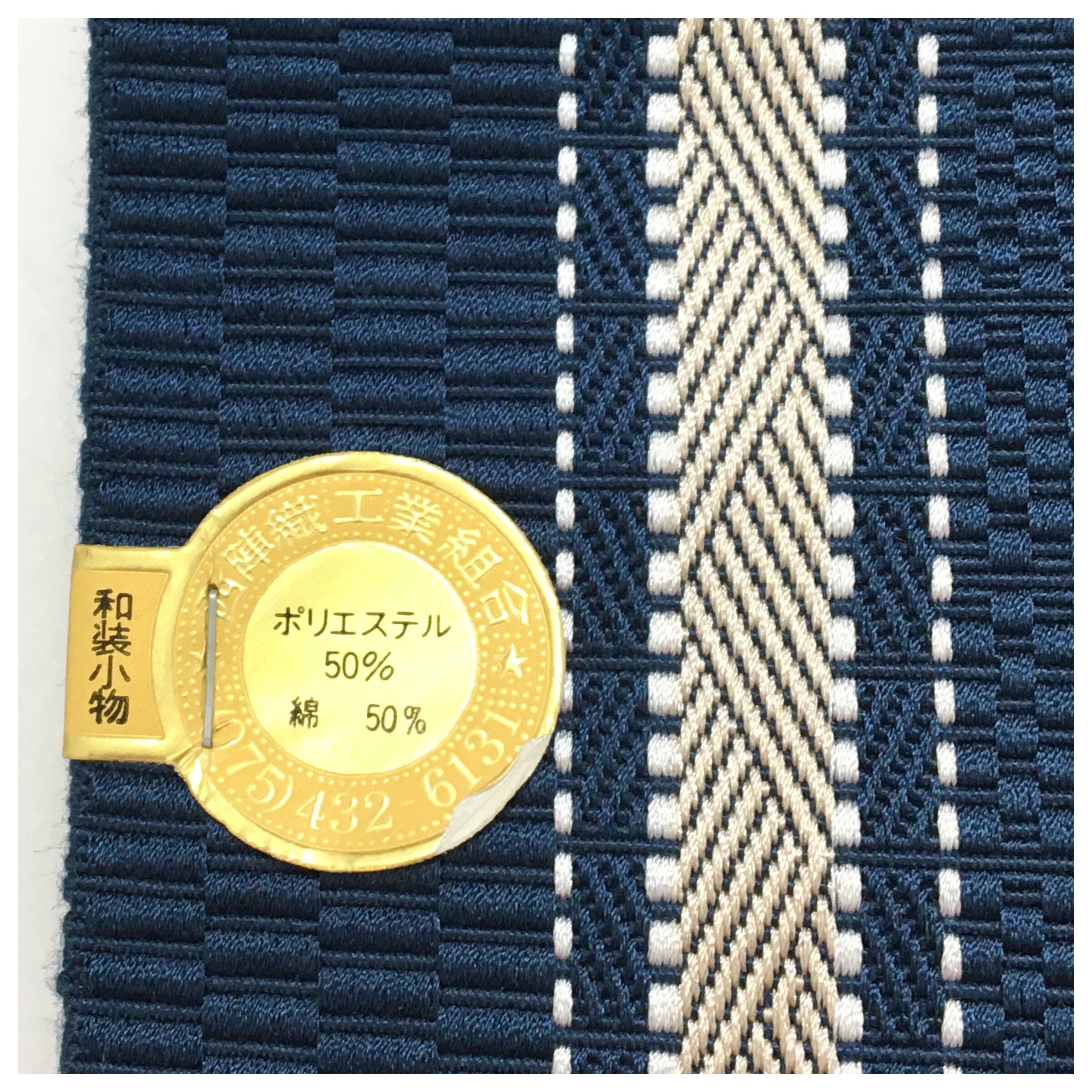 美品 角帯 正絹 綿 化繊 紺 未使用 男物 長さ416 巾9.2 です。