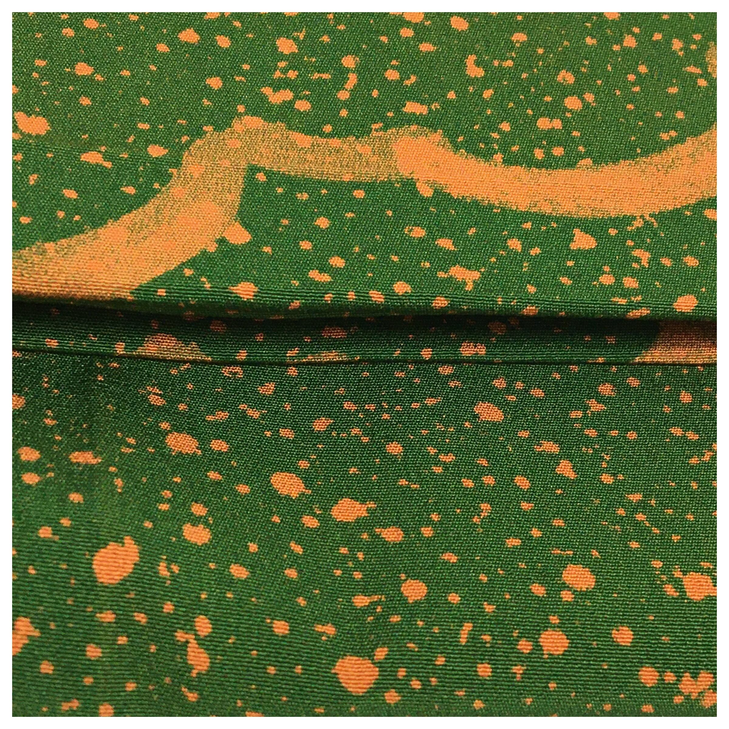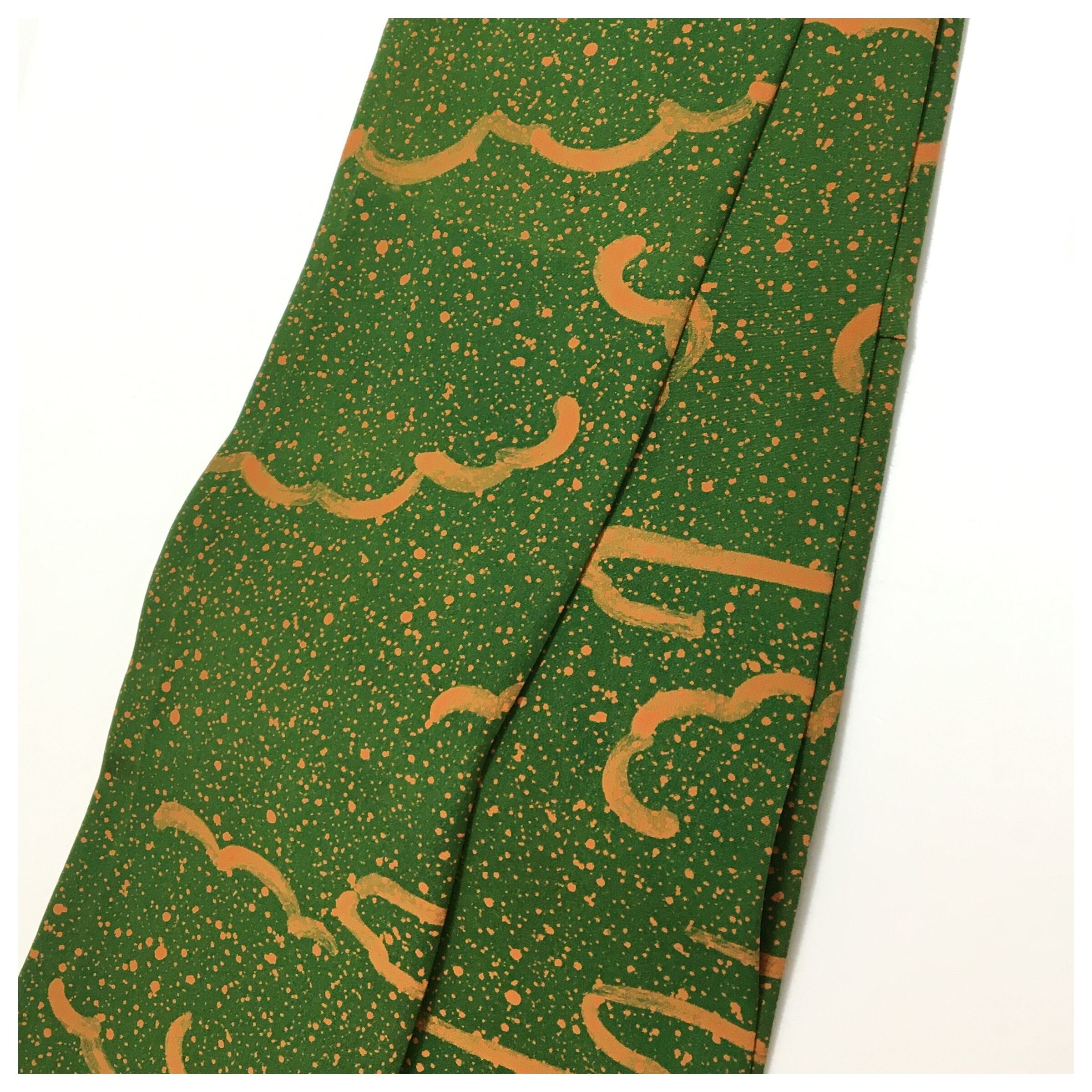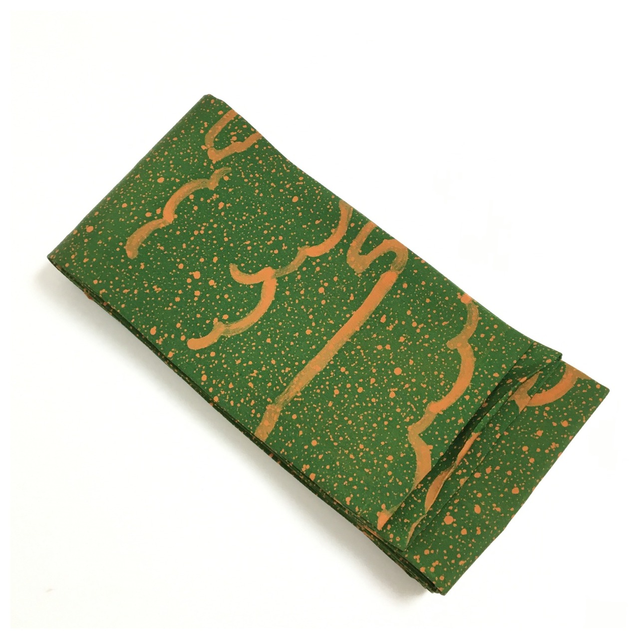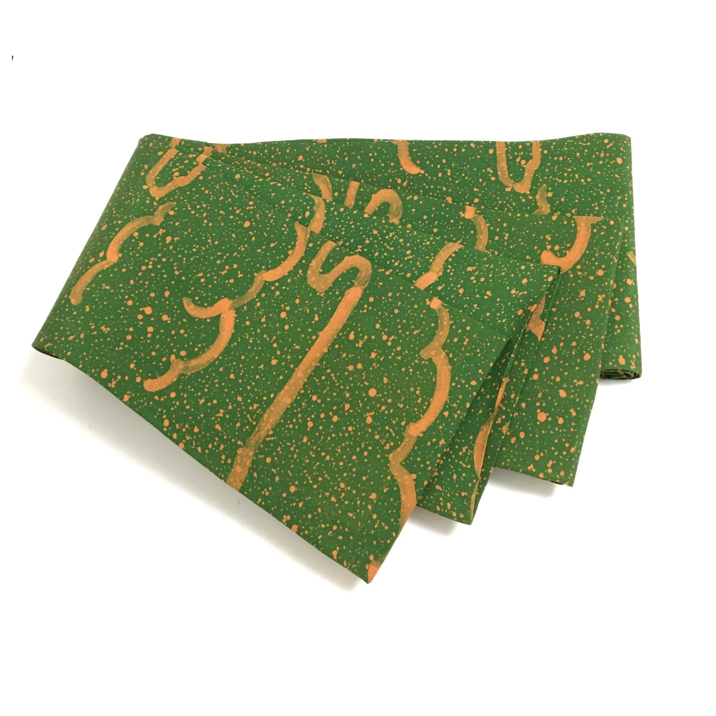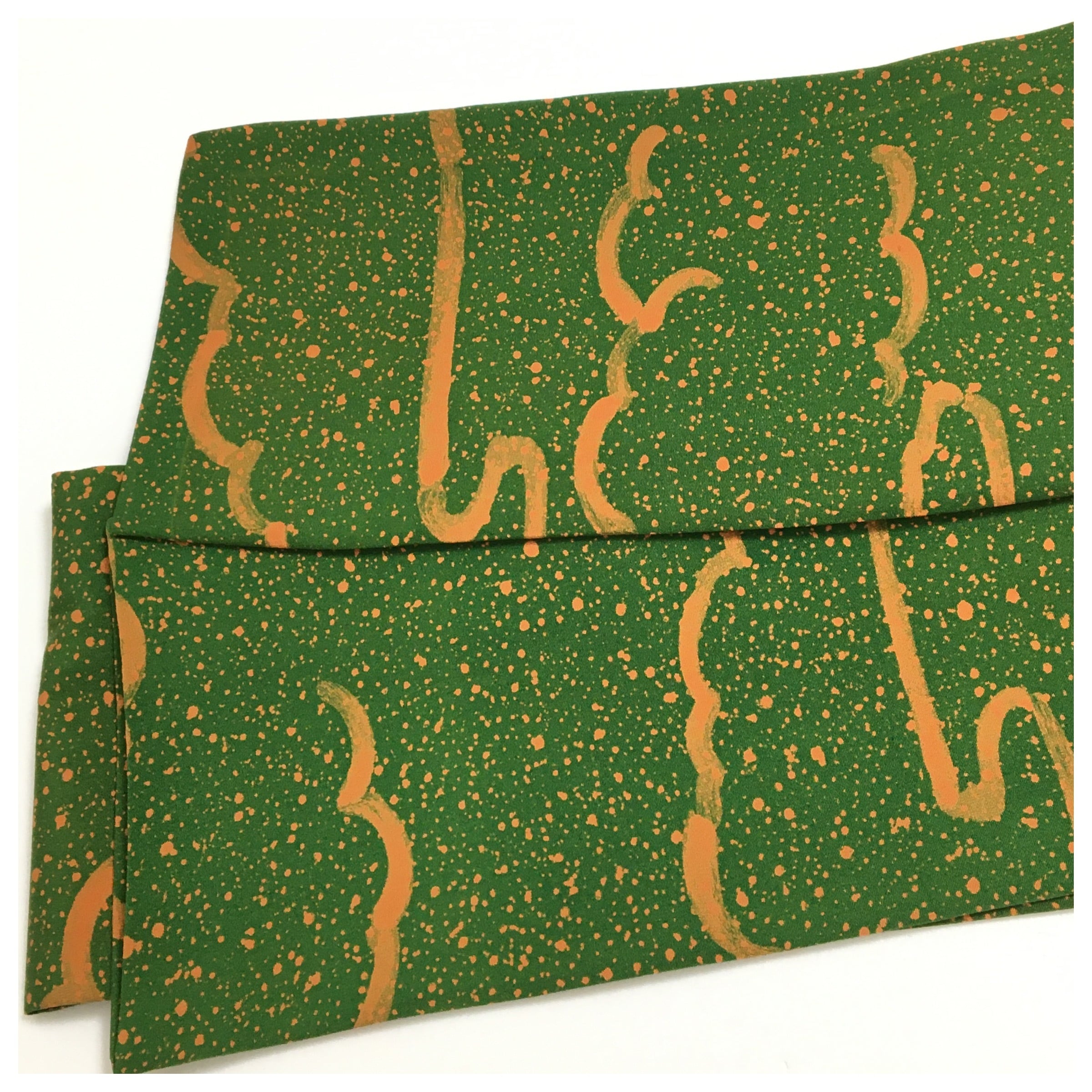 美品 正絹 半幅帯 グリーン たたき染め 個性派 長尺424 です。