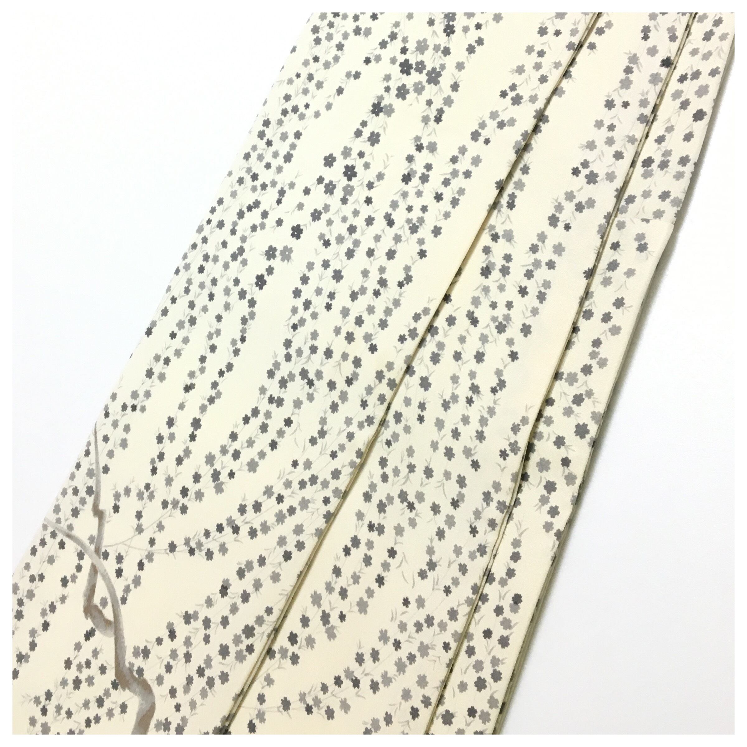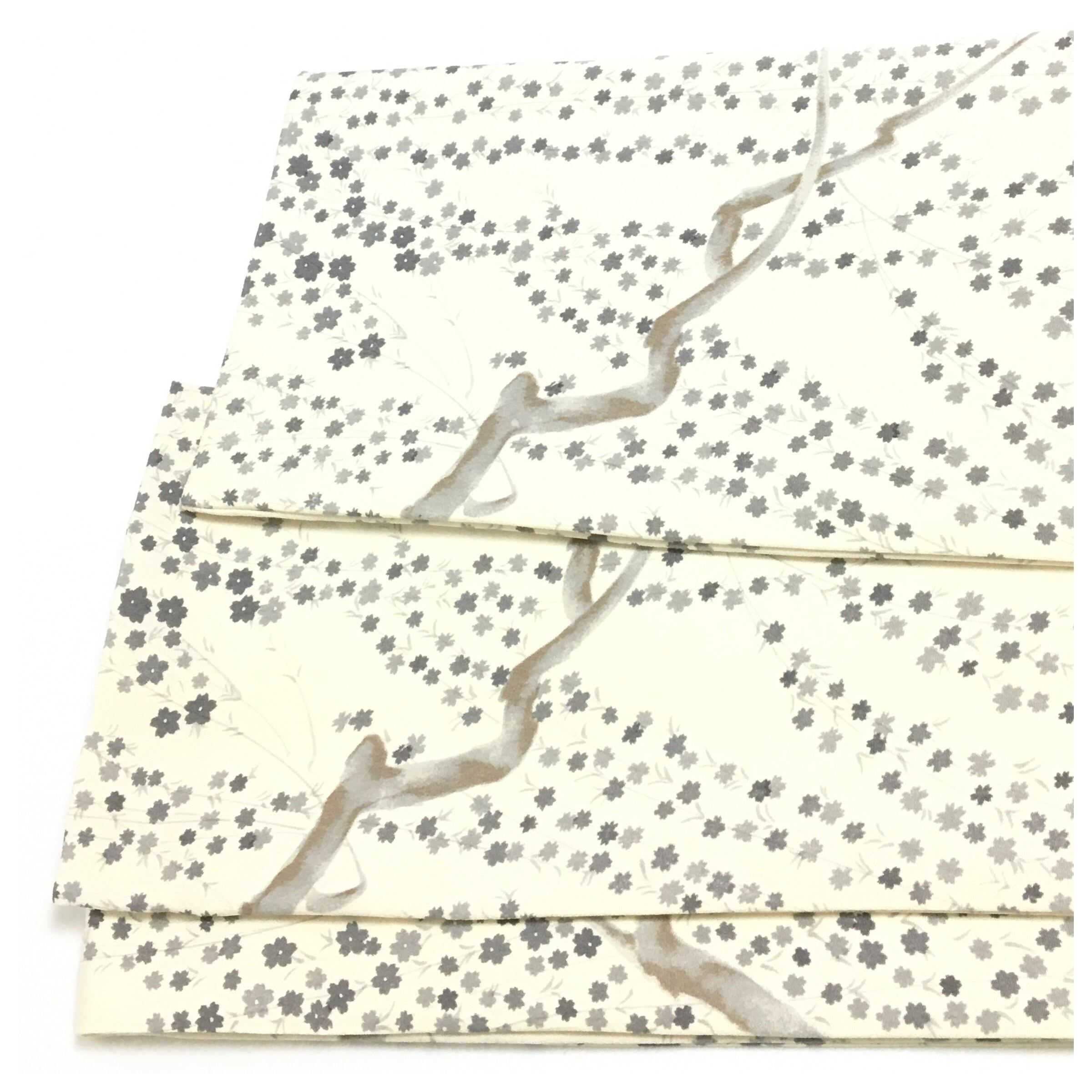 正絹 半幅帯 クリーム 墨絵柄 小紋 個性派 長尺430 幅16 中古品 です。