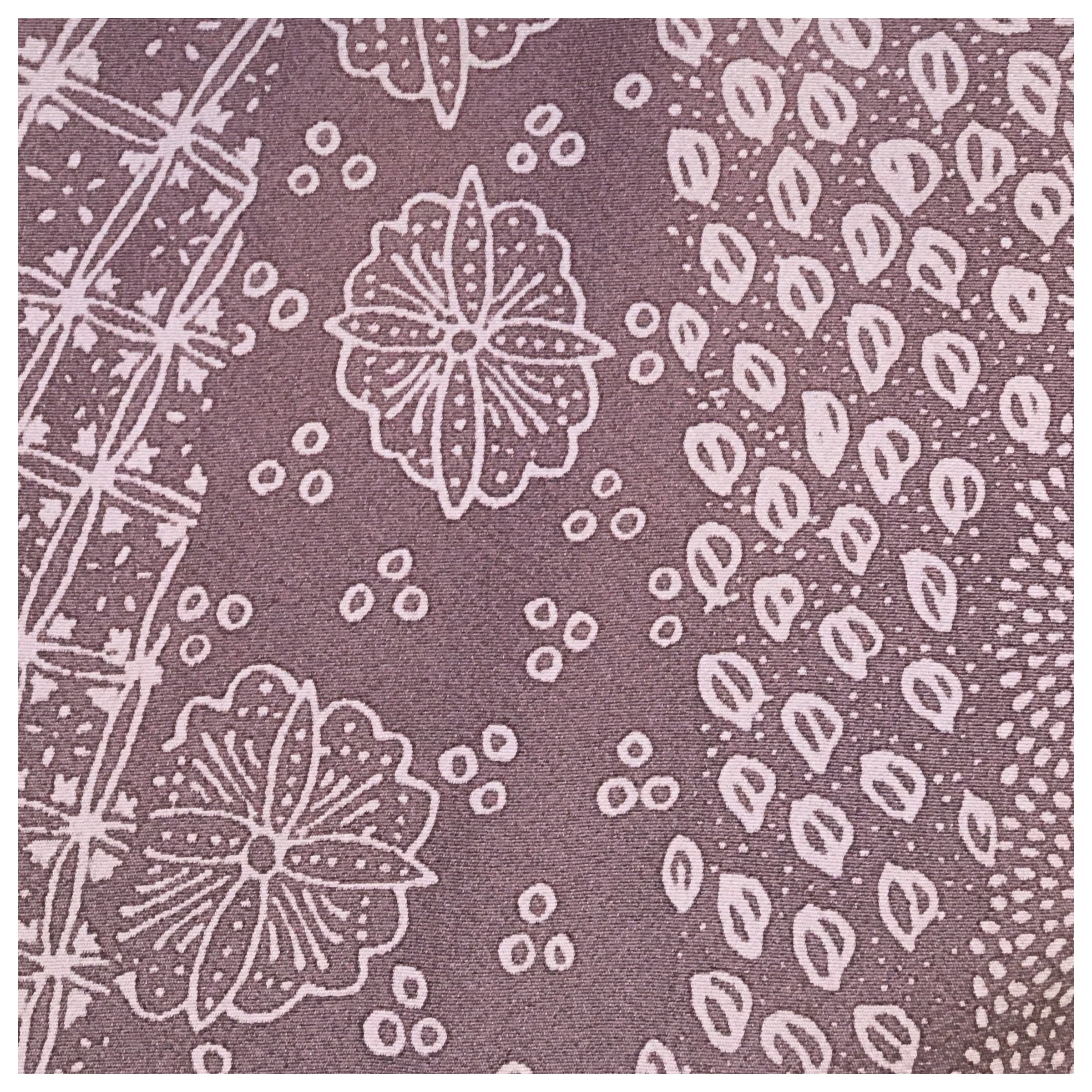 渋めの紫色のサイズの大きい小紋で、幅広い年代で着用頂ける色柄です。