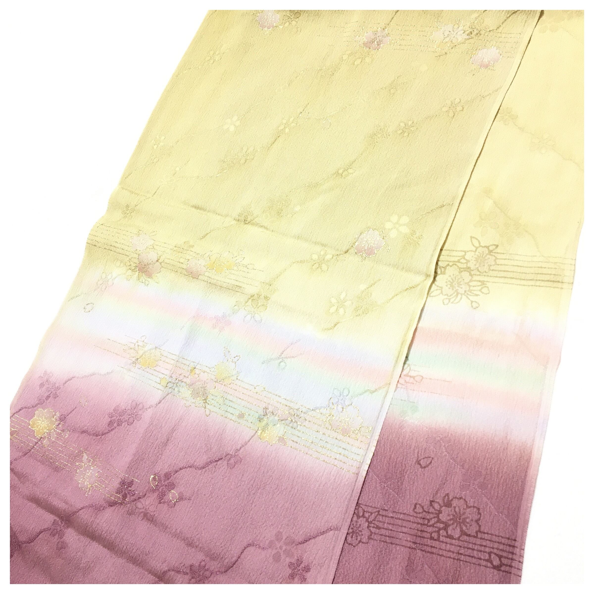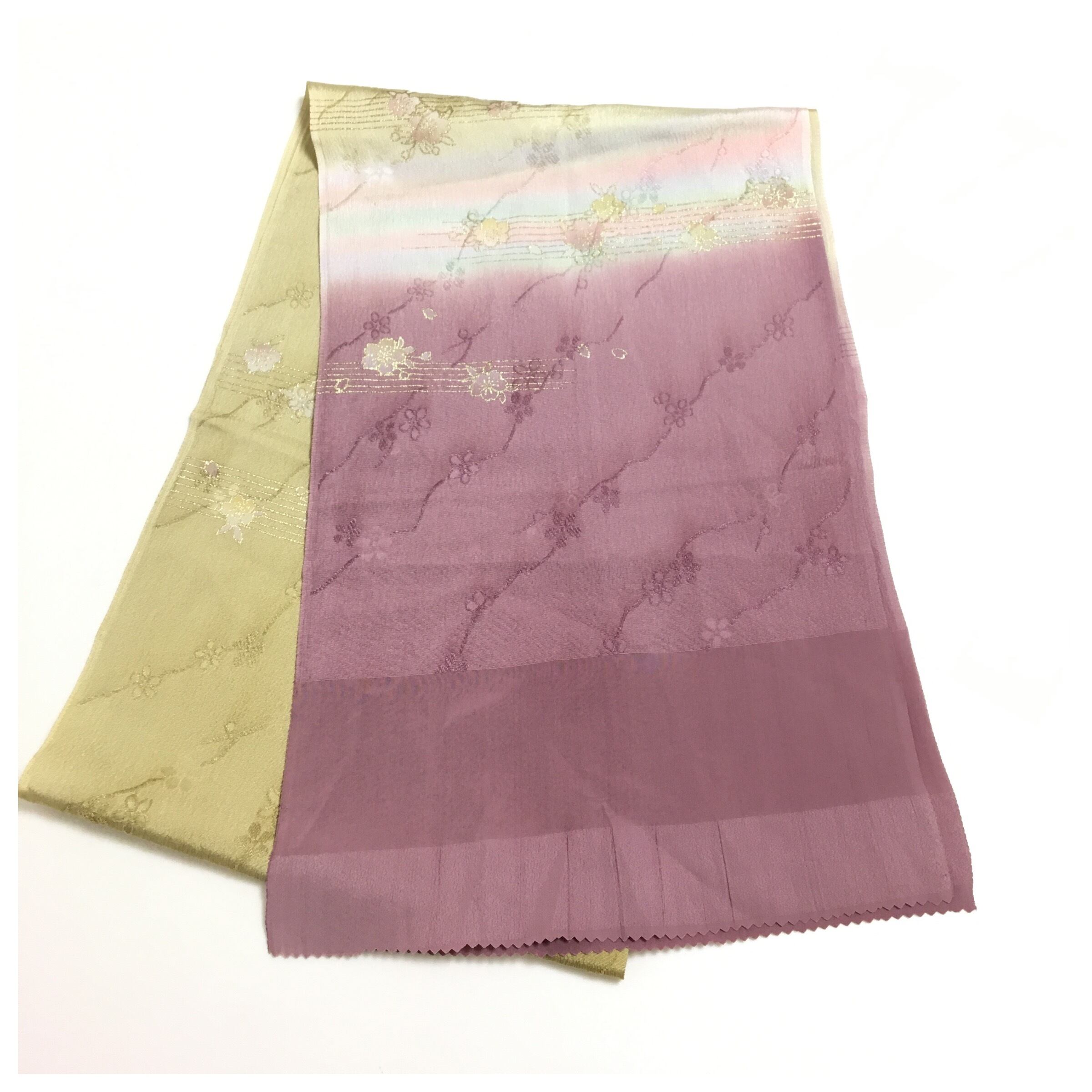 美品 正絹 帯揚げ 紫 グリーン グラデーションカラー 和装小物 です。