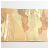 正絹 楽帯 袋帯 ベージュゴールド 吉祥柄 二部式 二重太鼓 作り帯 です。