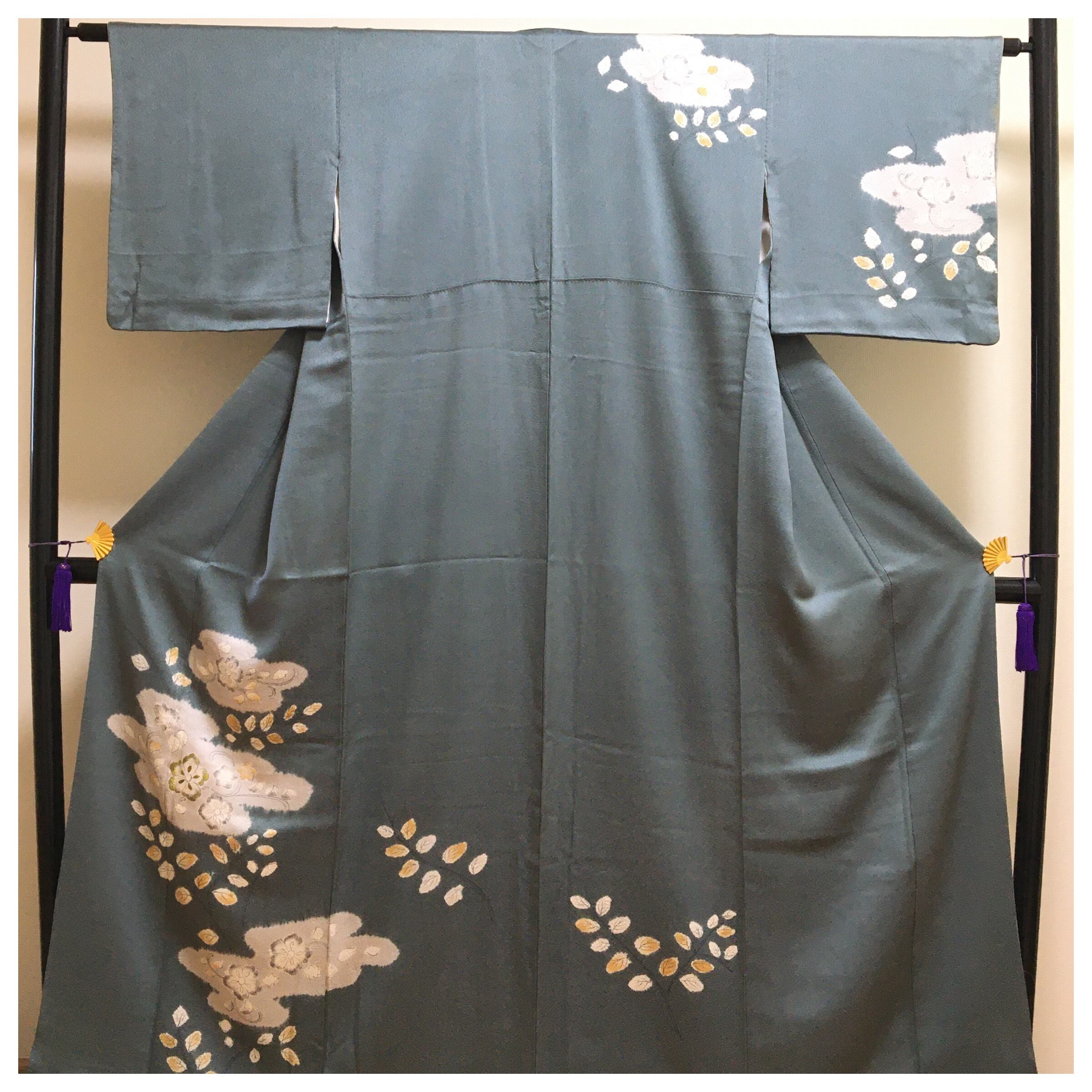 渋めのグリーンを基調とした上品なデザインの上質な訪問着です。