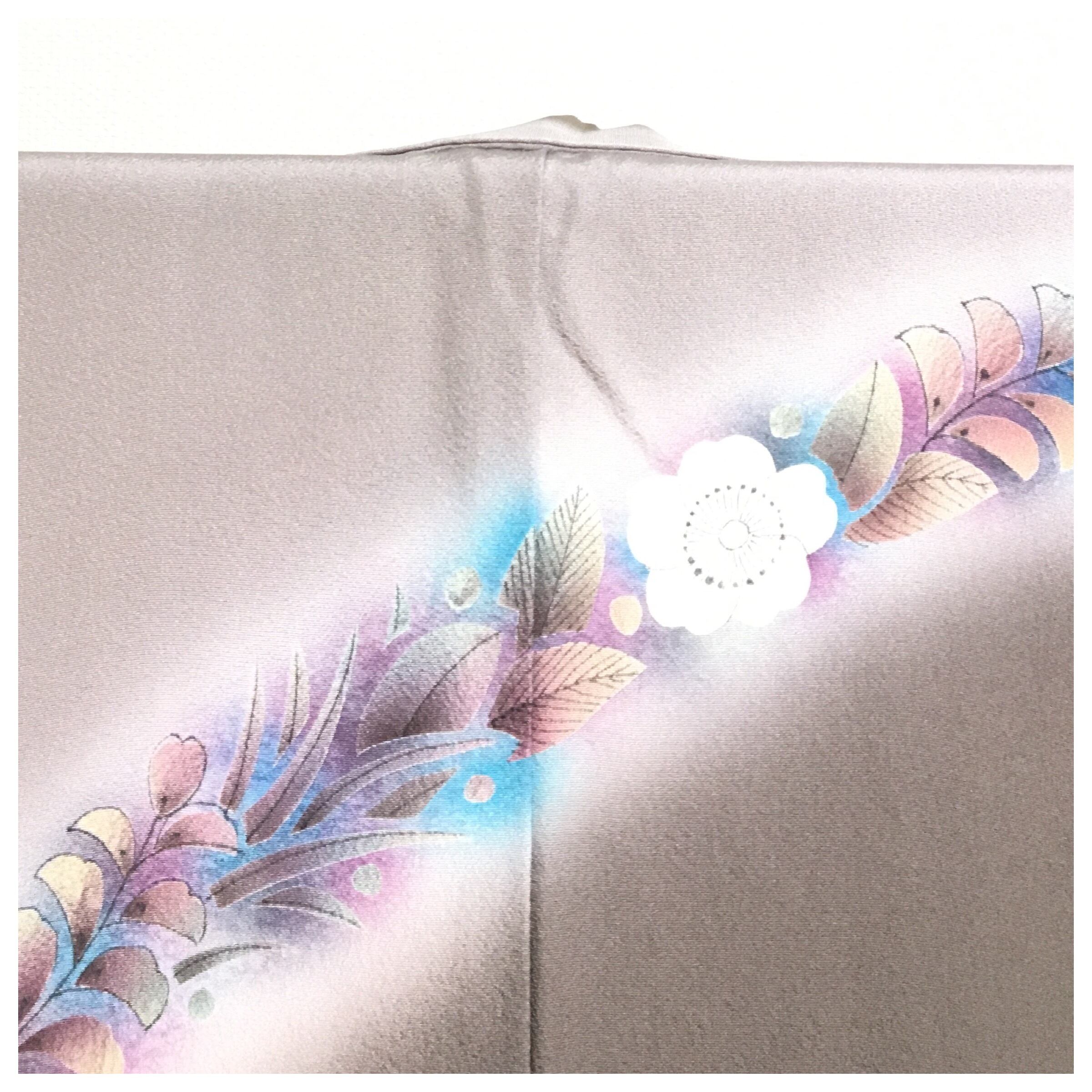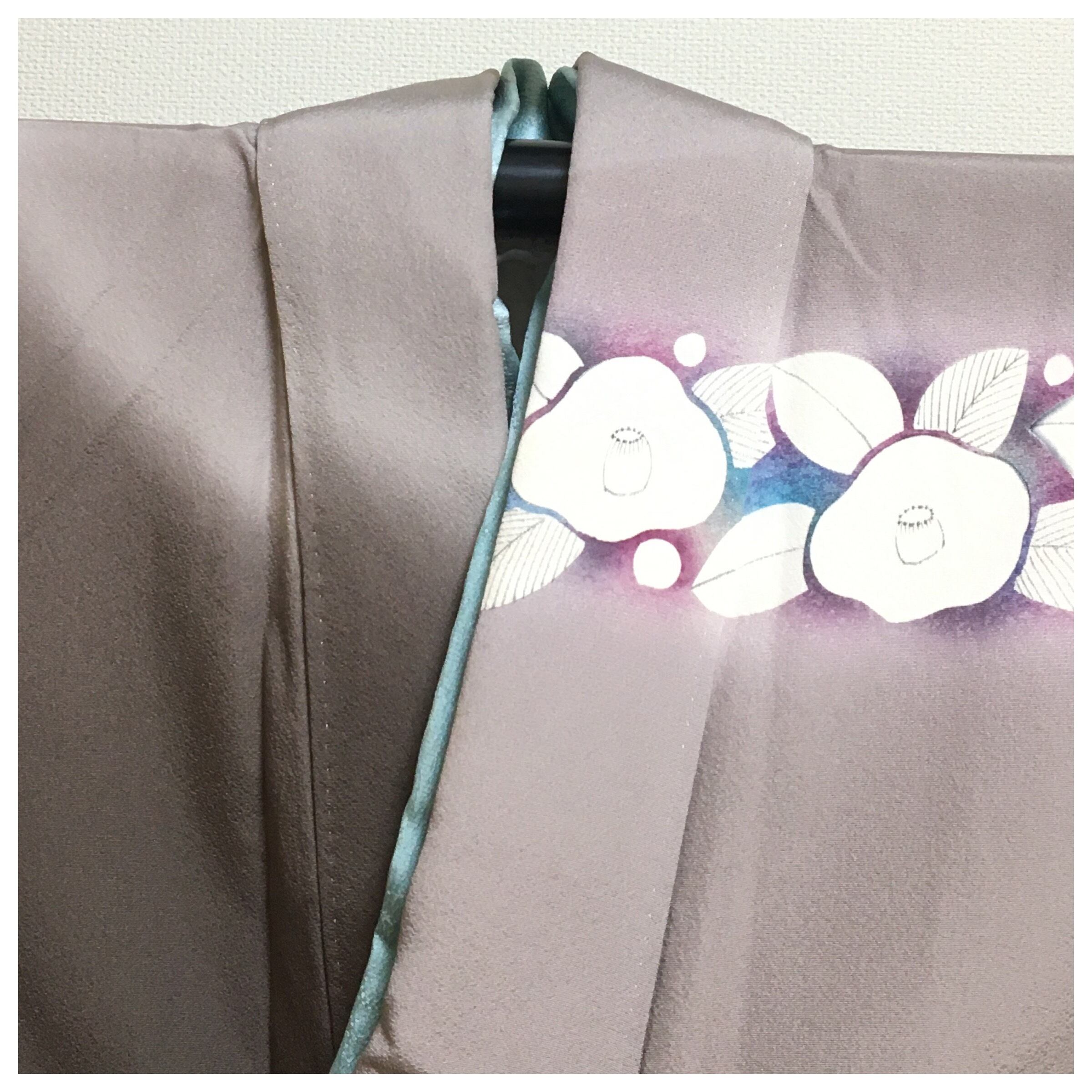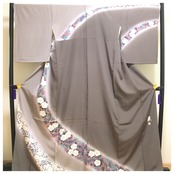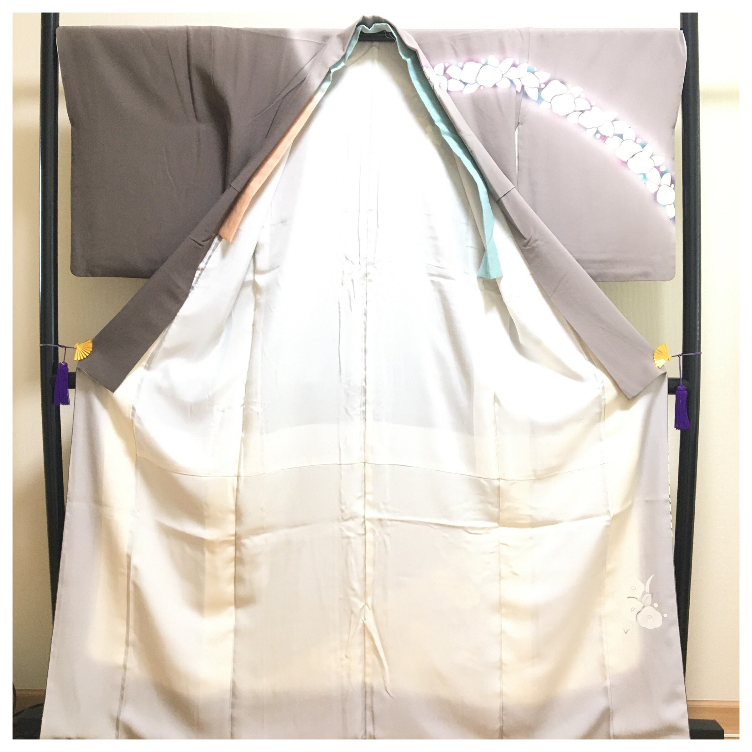 チャコールグレーといった上品なお色味に華やかなデザインが目を惹く訪問着です。