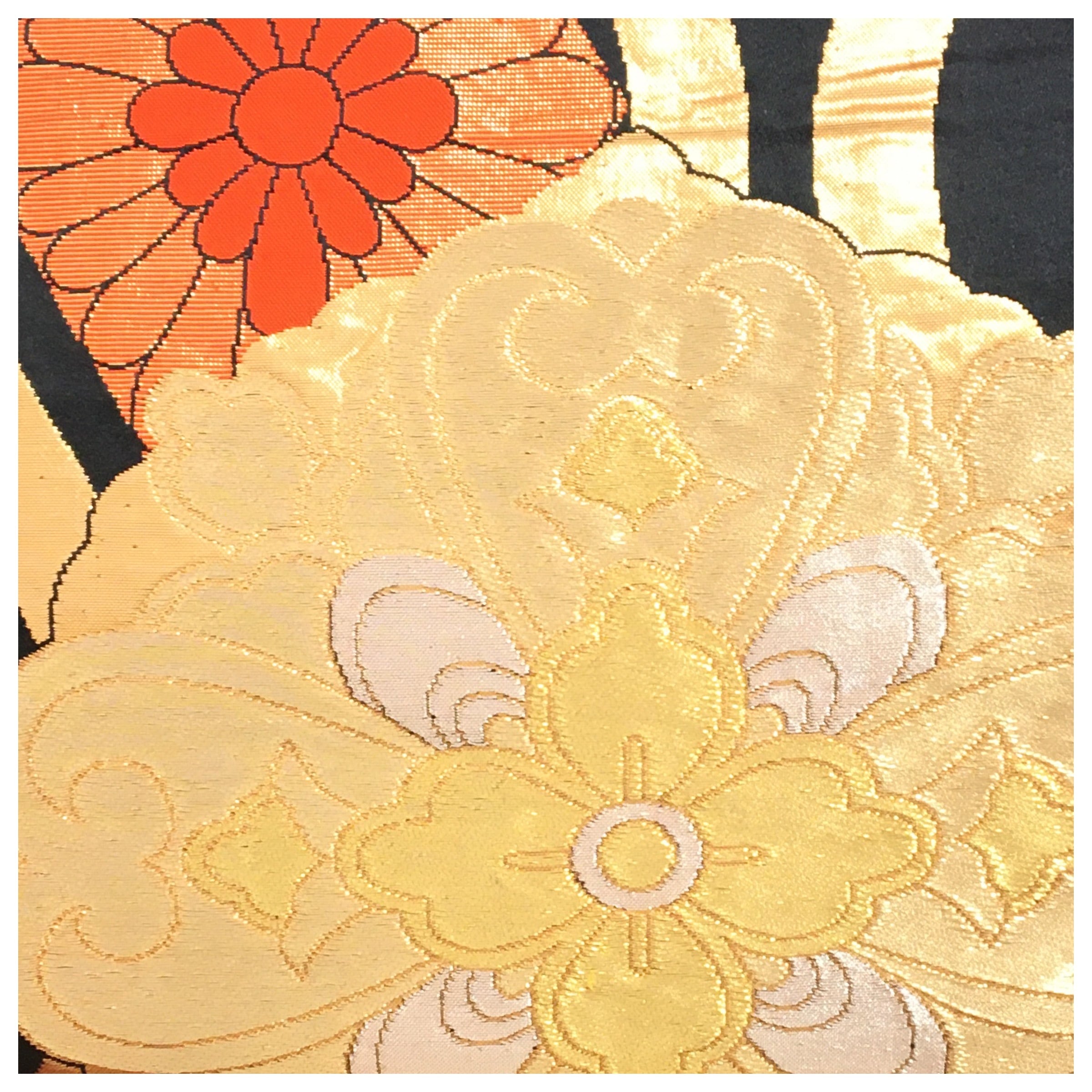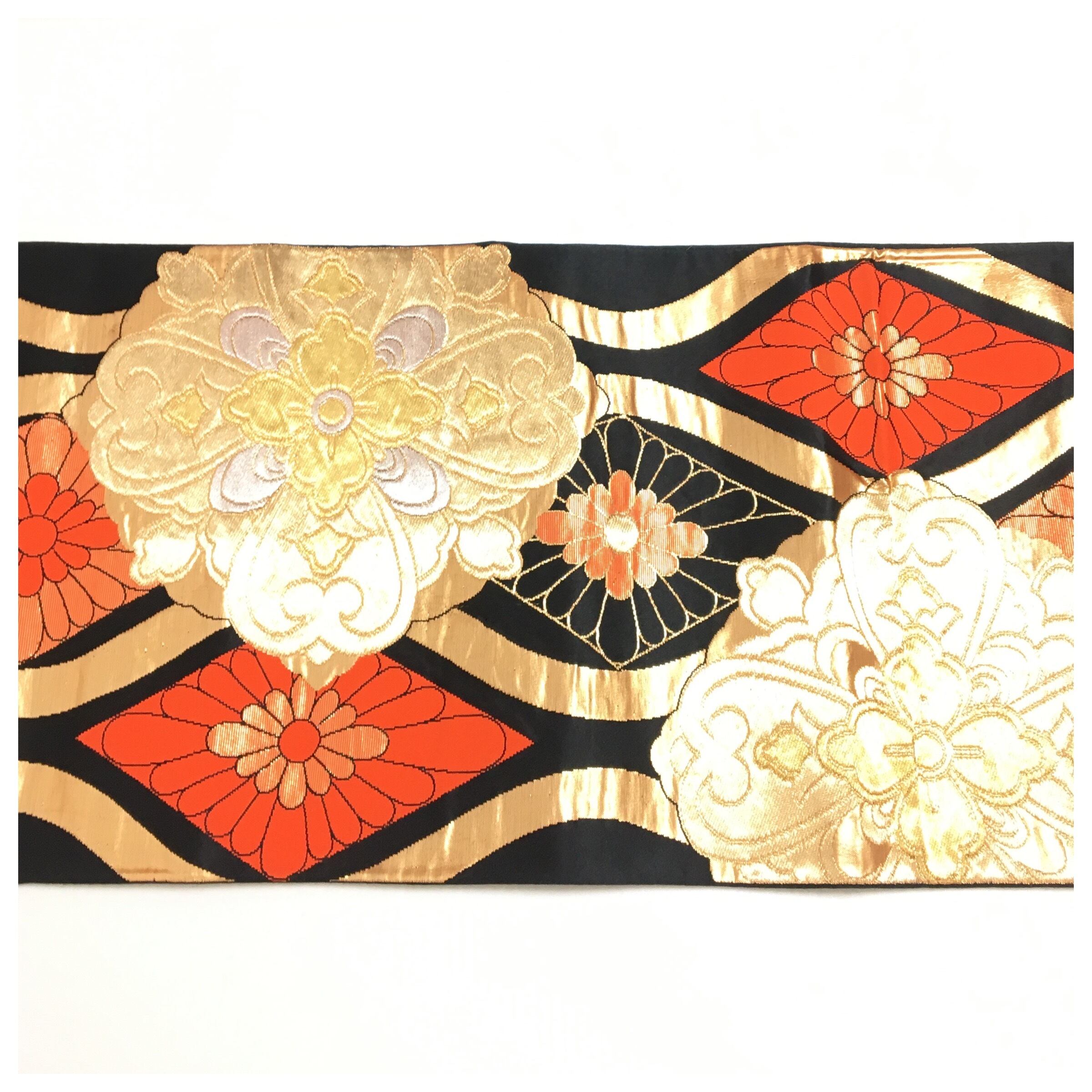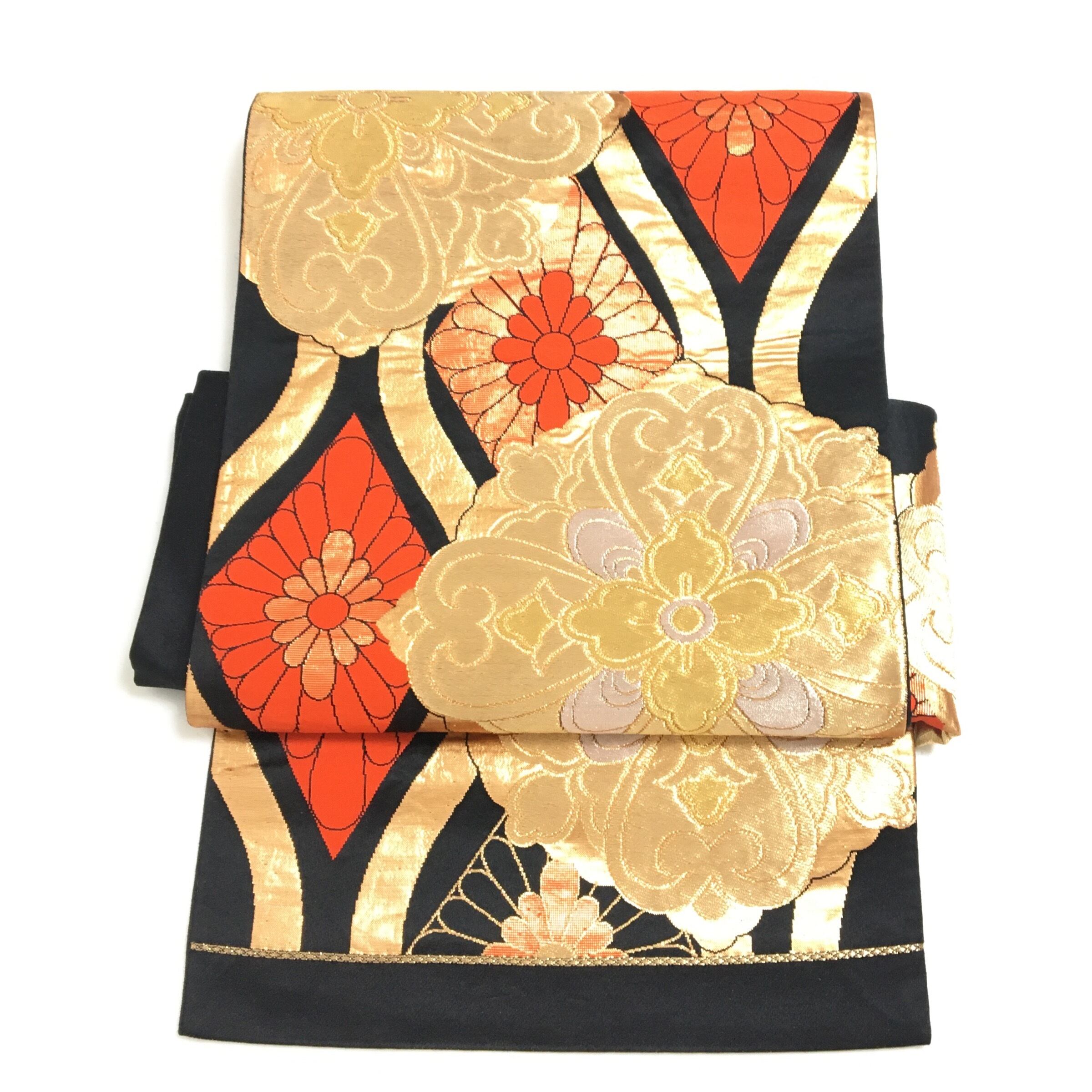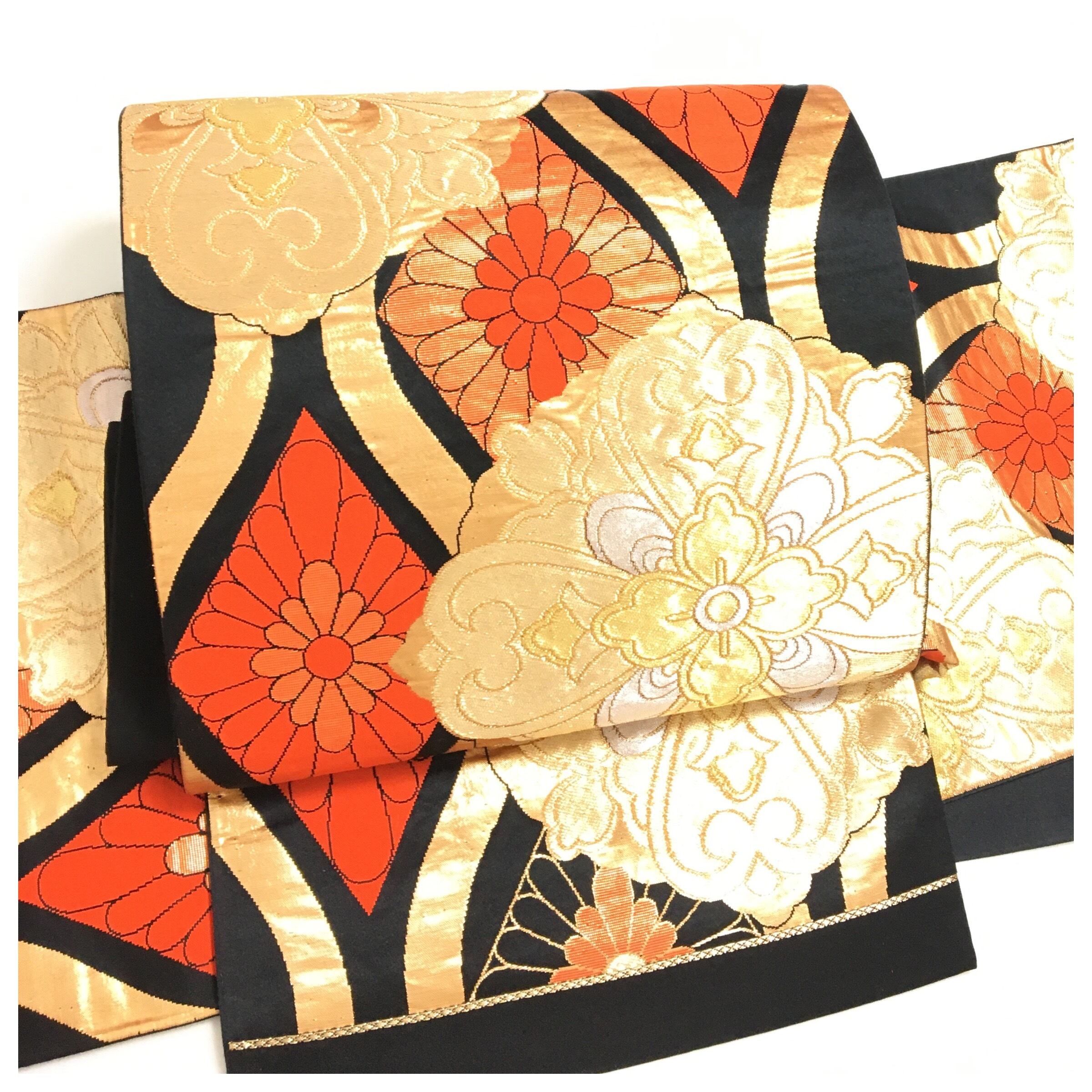 柔らかい帯地に大きな金彩の華紋を描いたアンティークならではのお洒落なお品です。