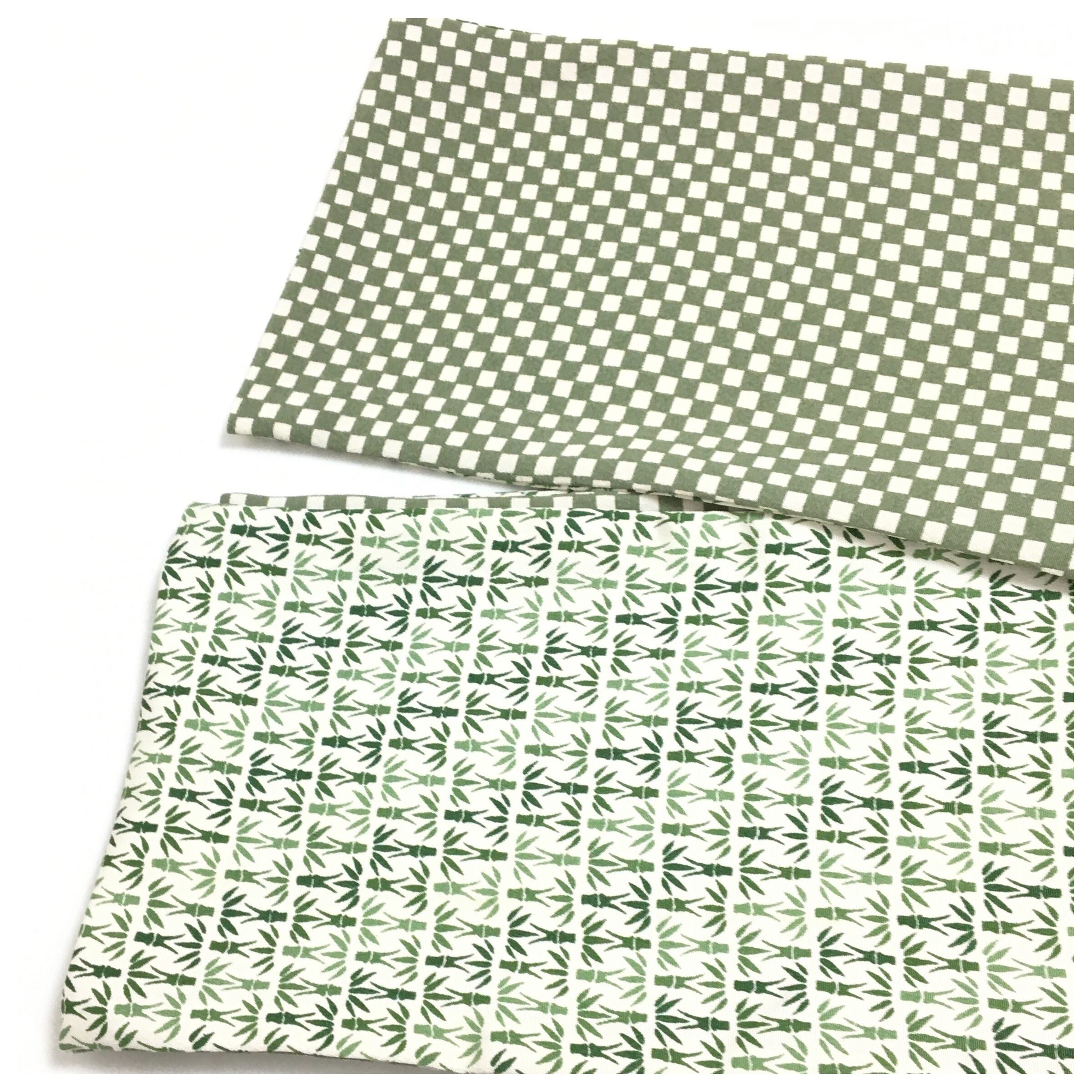 正絹 兵児帯 市松x竹 グリーン系長尺550 幅15 中古品です。