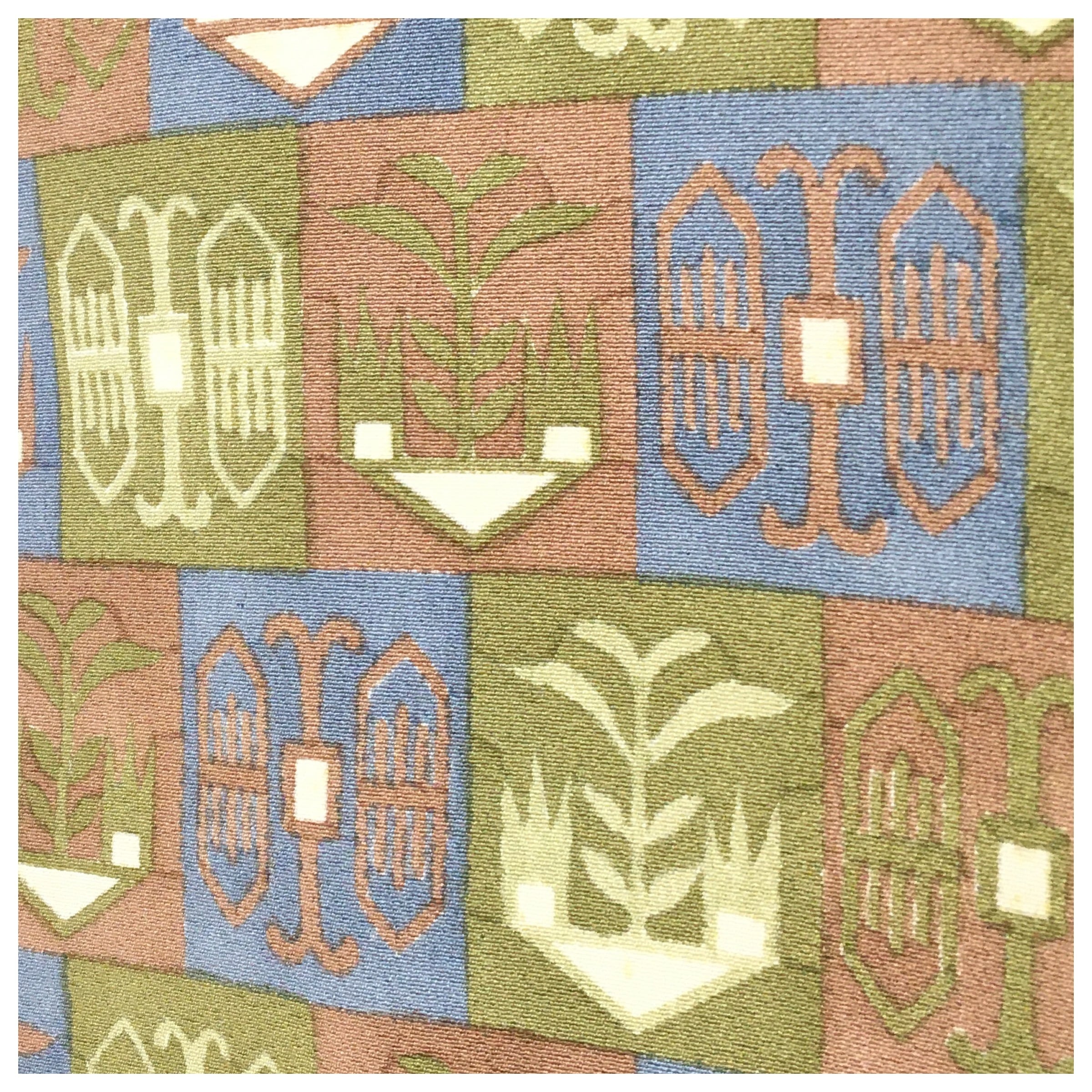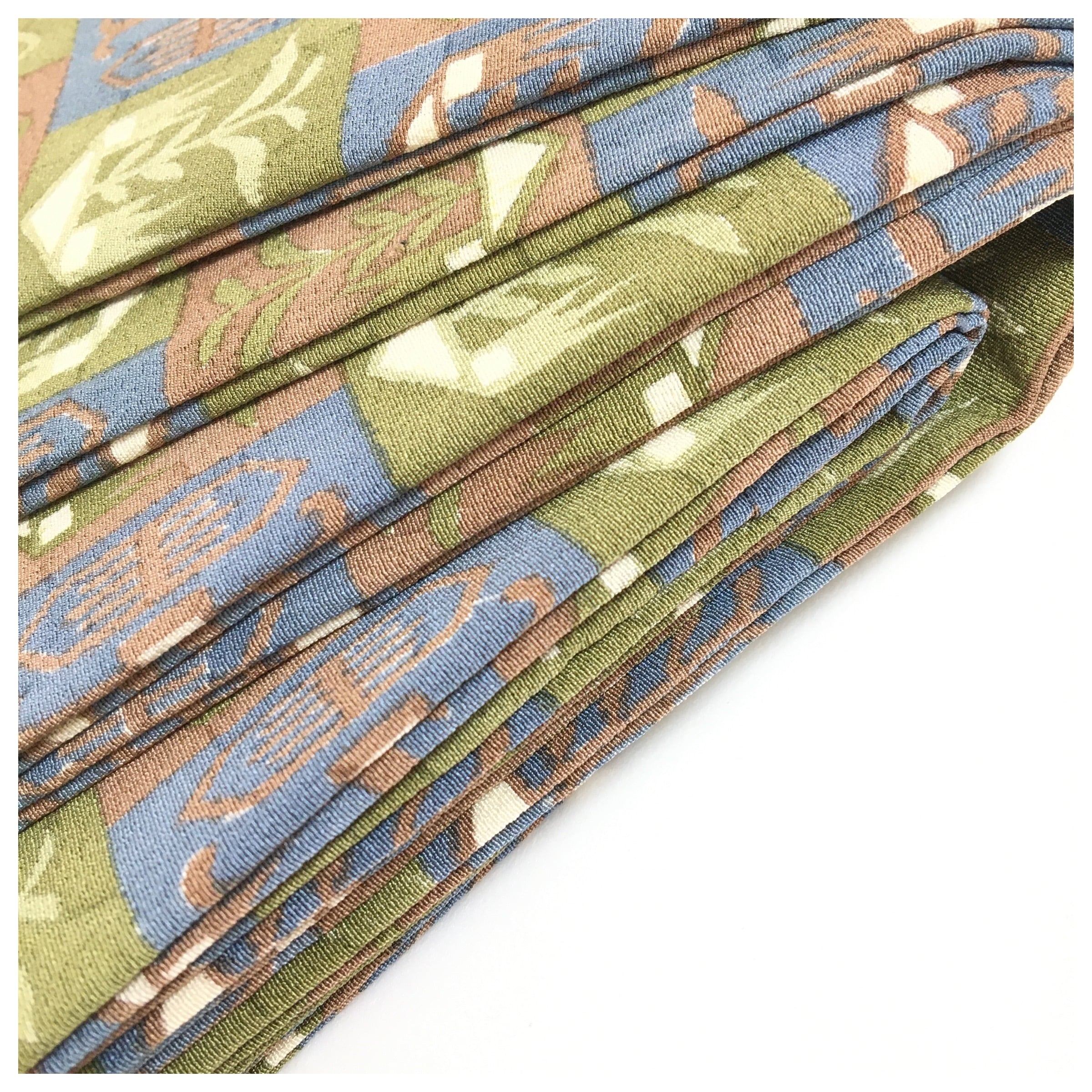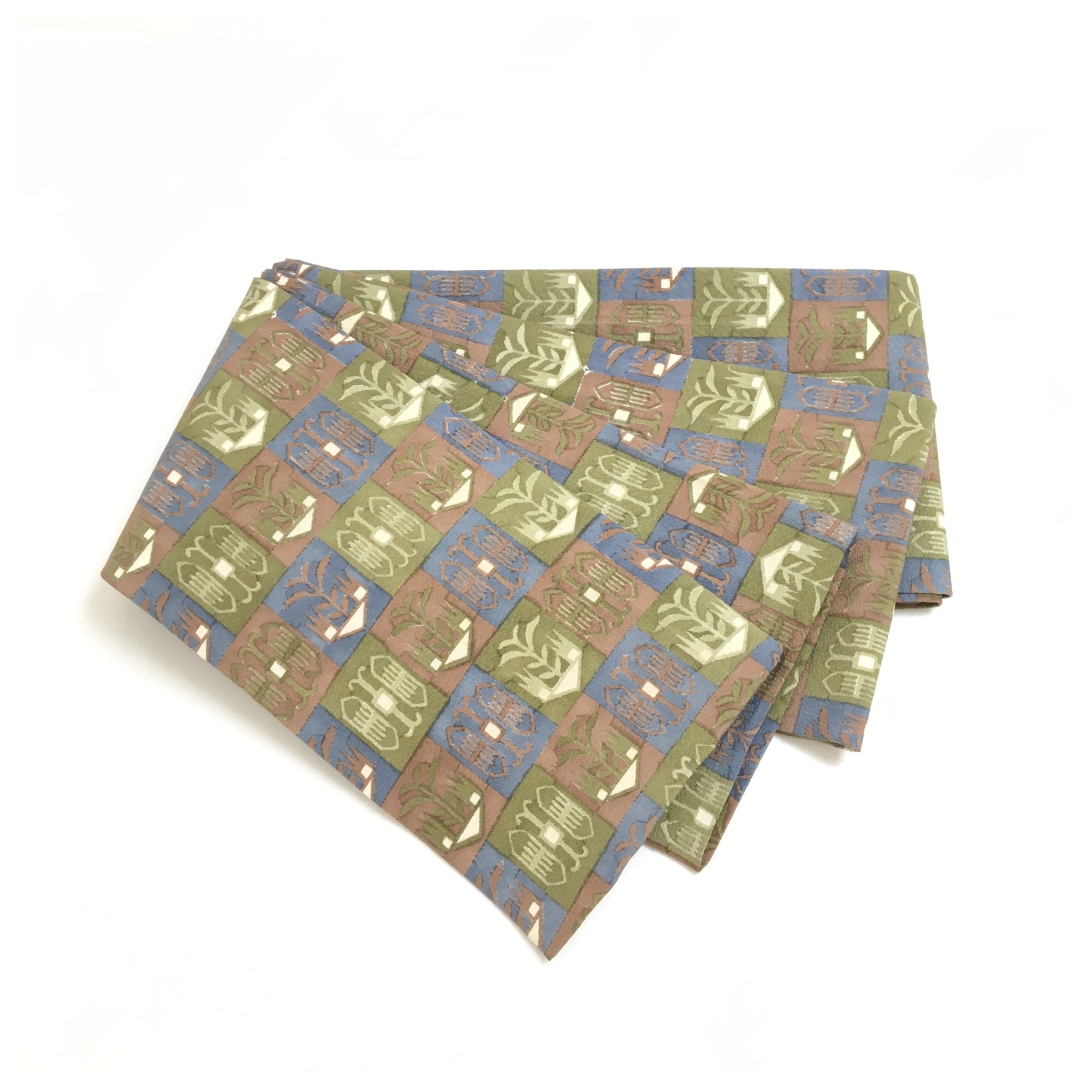 美品 半幅帯 正絹 角紋 グリーン 茶系 全通 長さ408 リサイクル 中古品