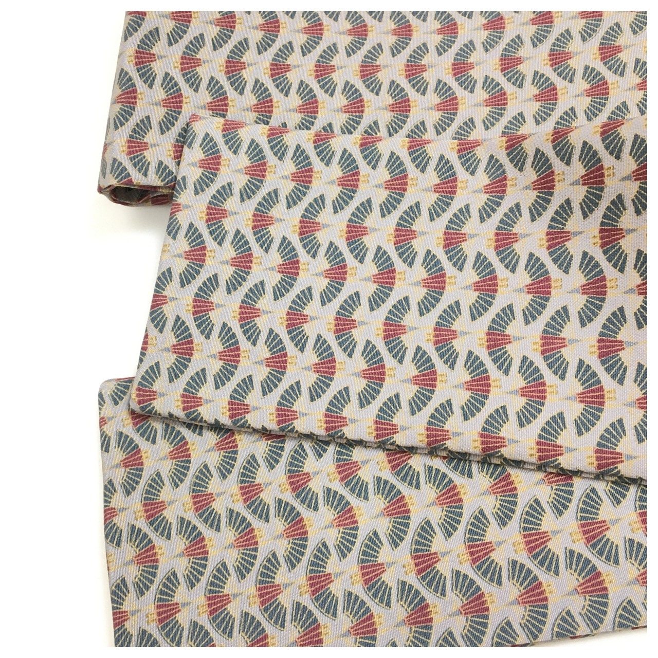 美品 角帯 正絹 グレー 小紋柄 全通 個性派 長さ408