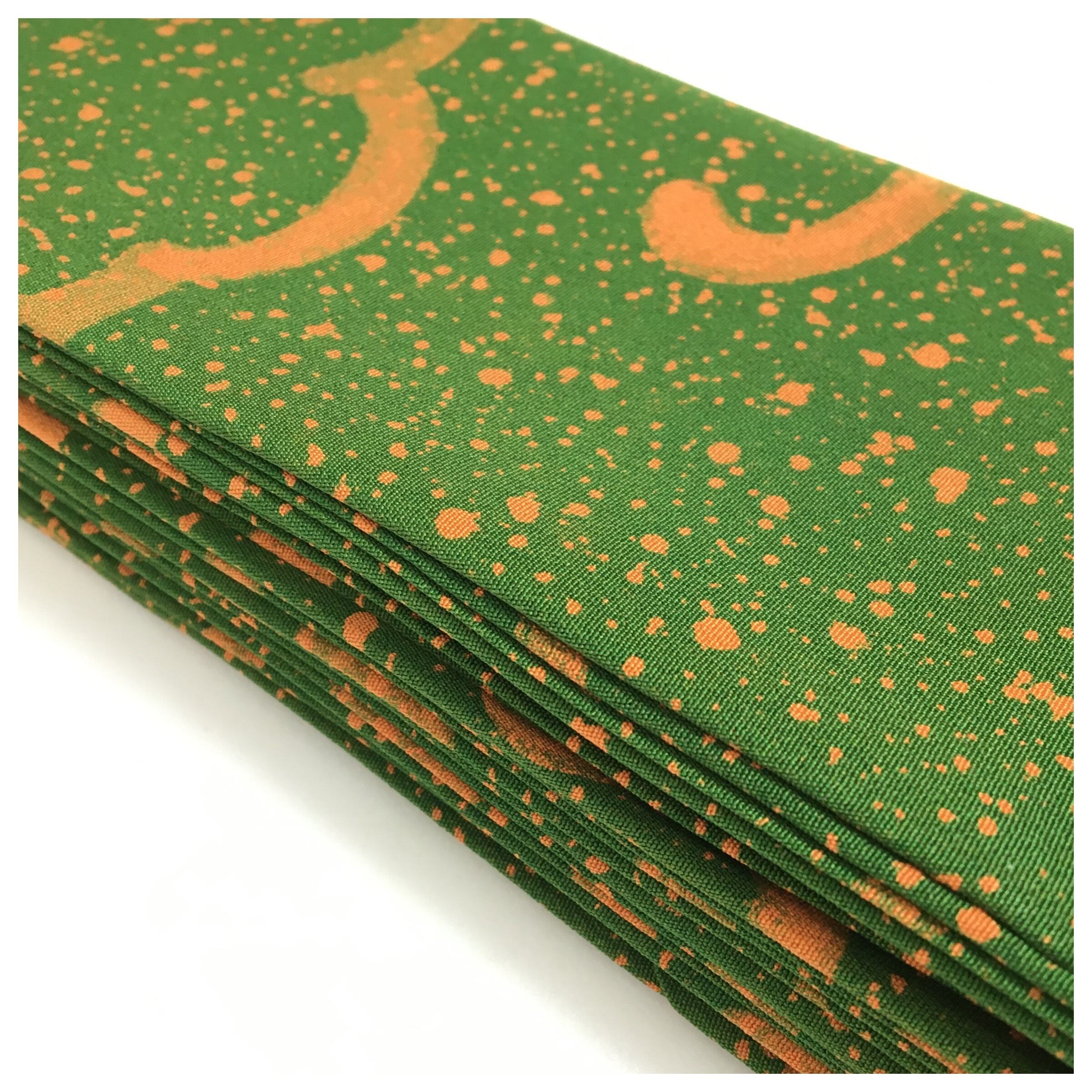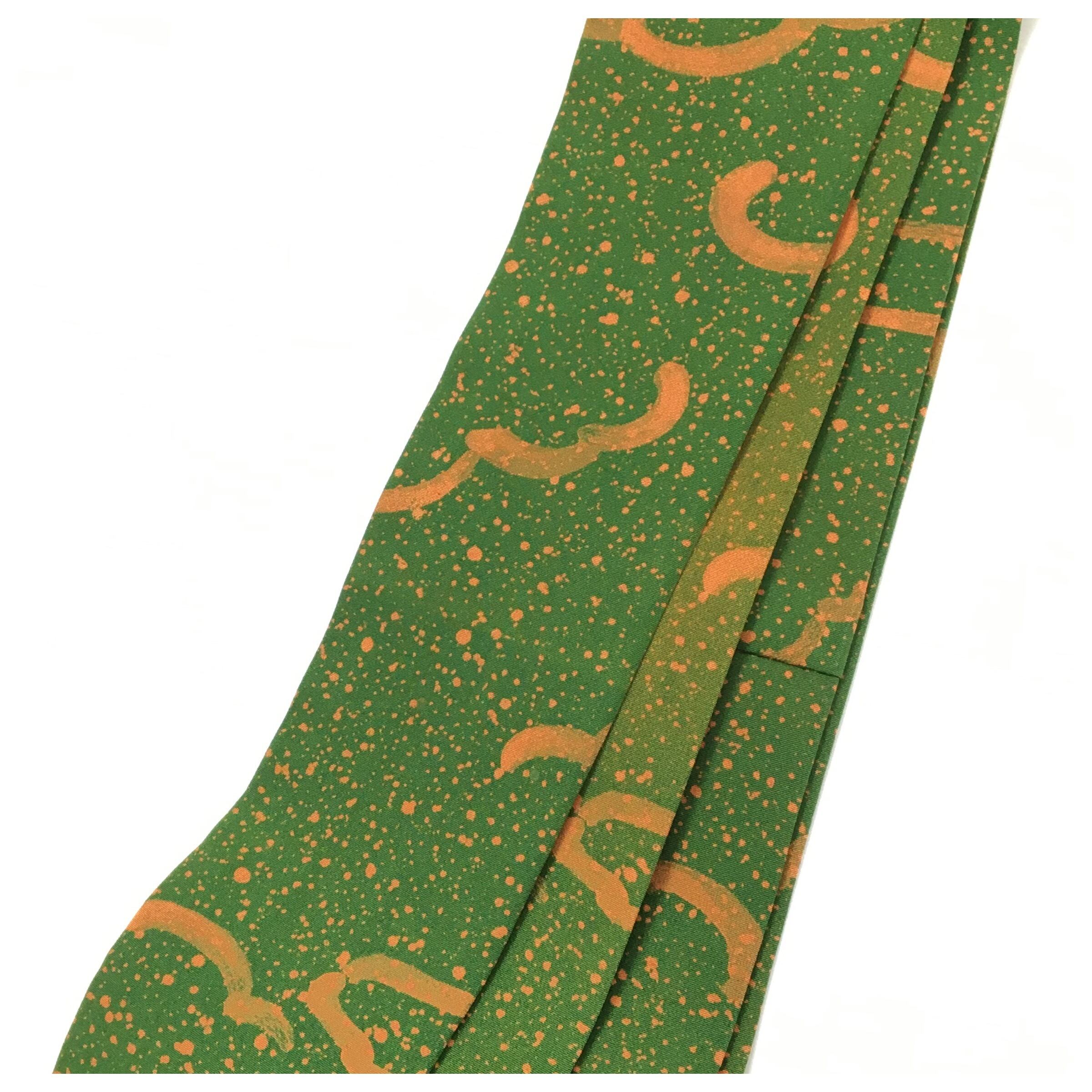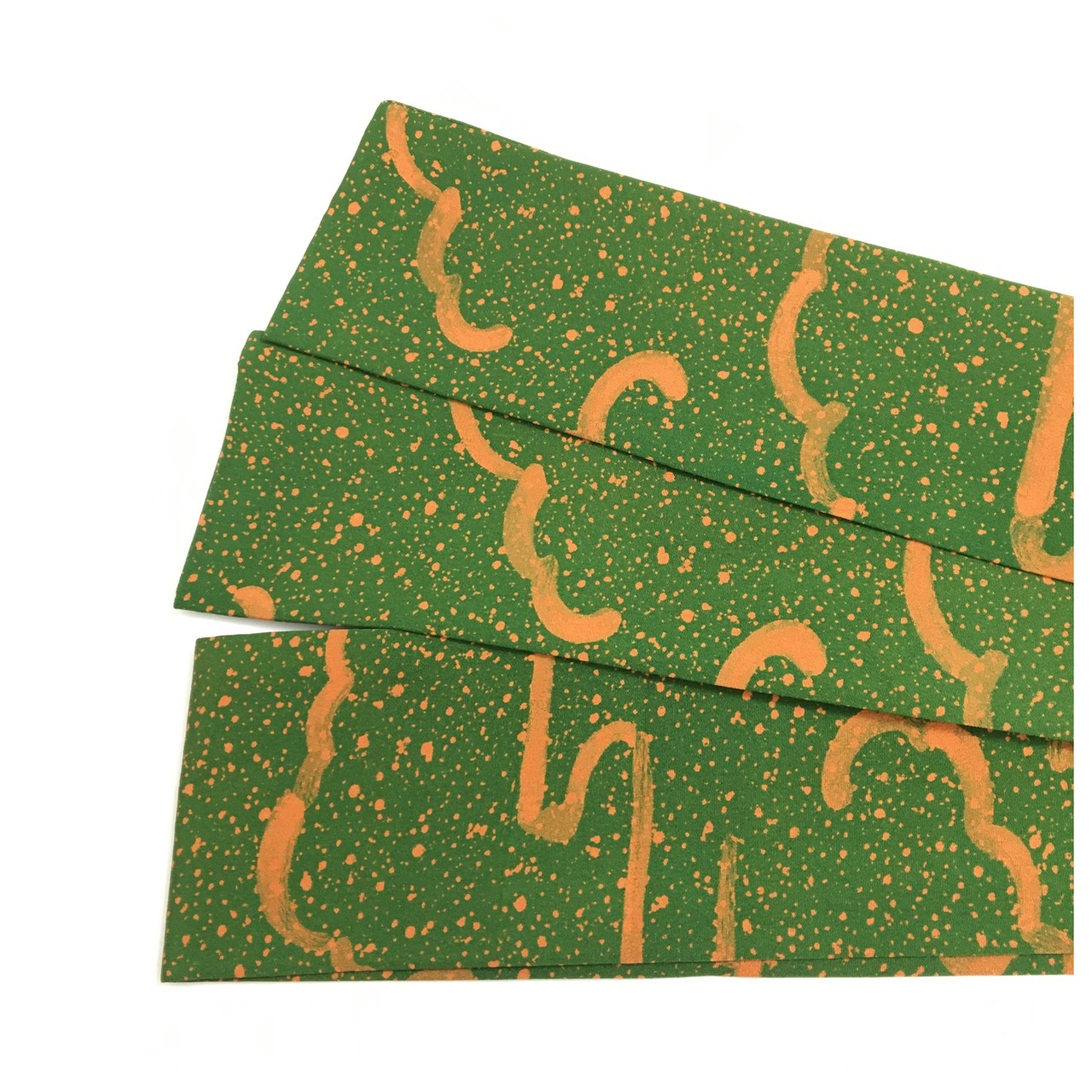 角帯 正絹 男物 グリーン たたき染 小紋柄 全通 個性派 長さ428