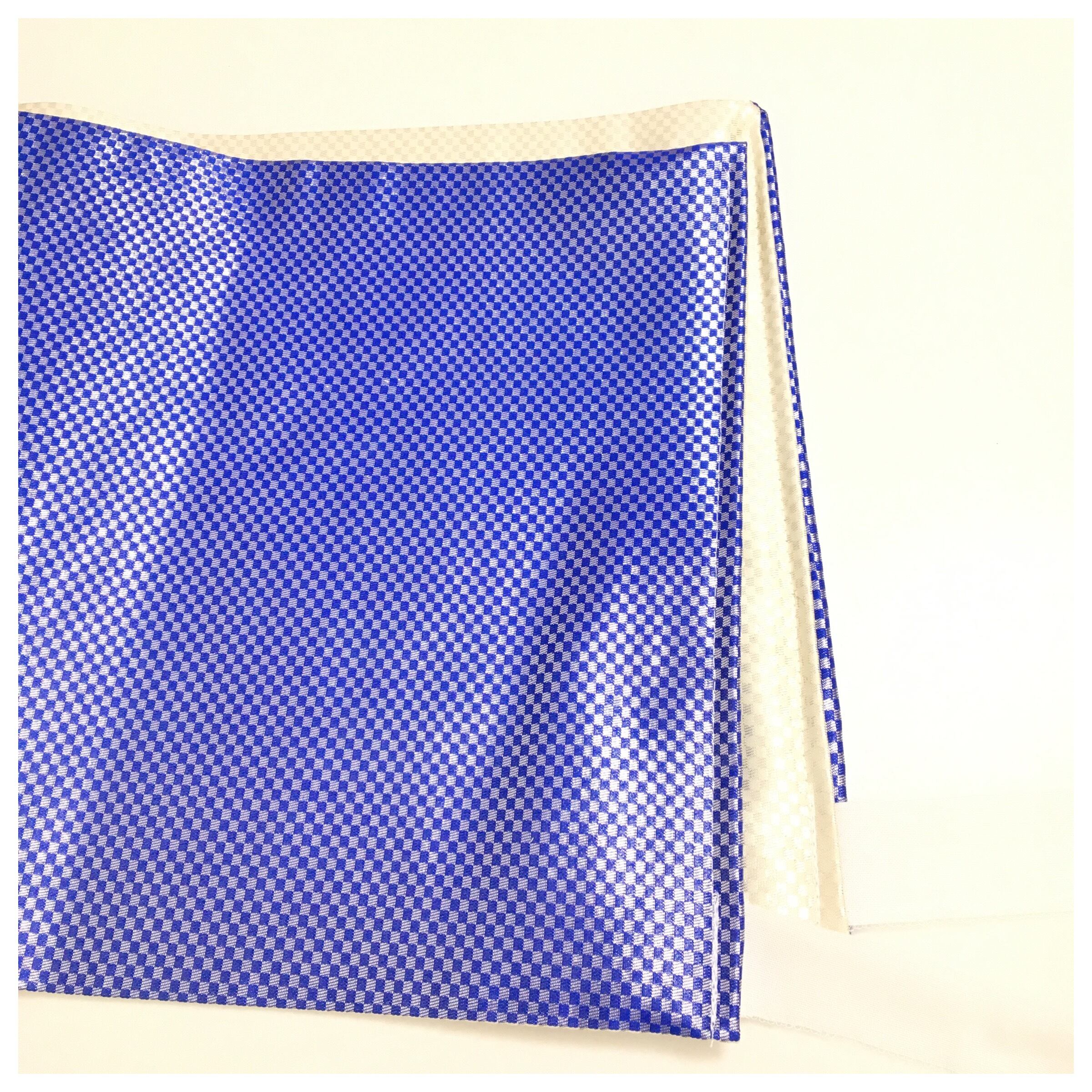 正絹 袋帯 作り帯 市松 ブルー 二部式 二重太鼓 作け帯 です。