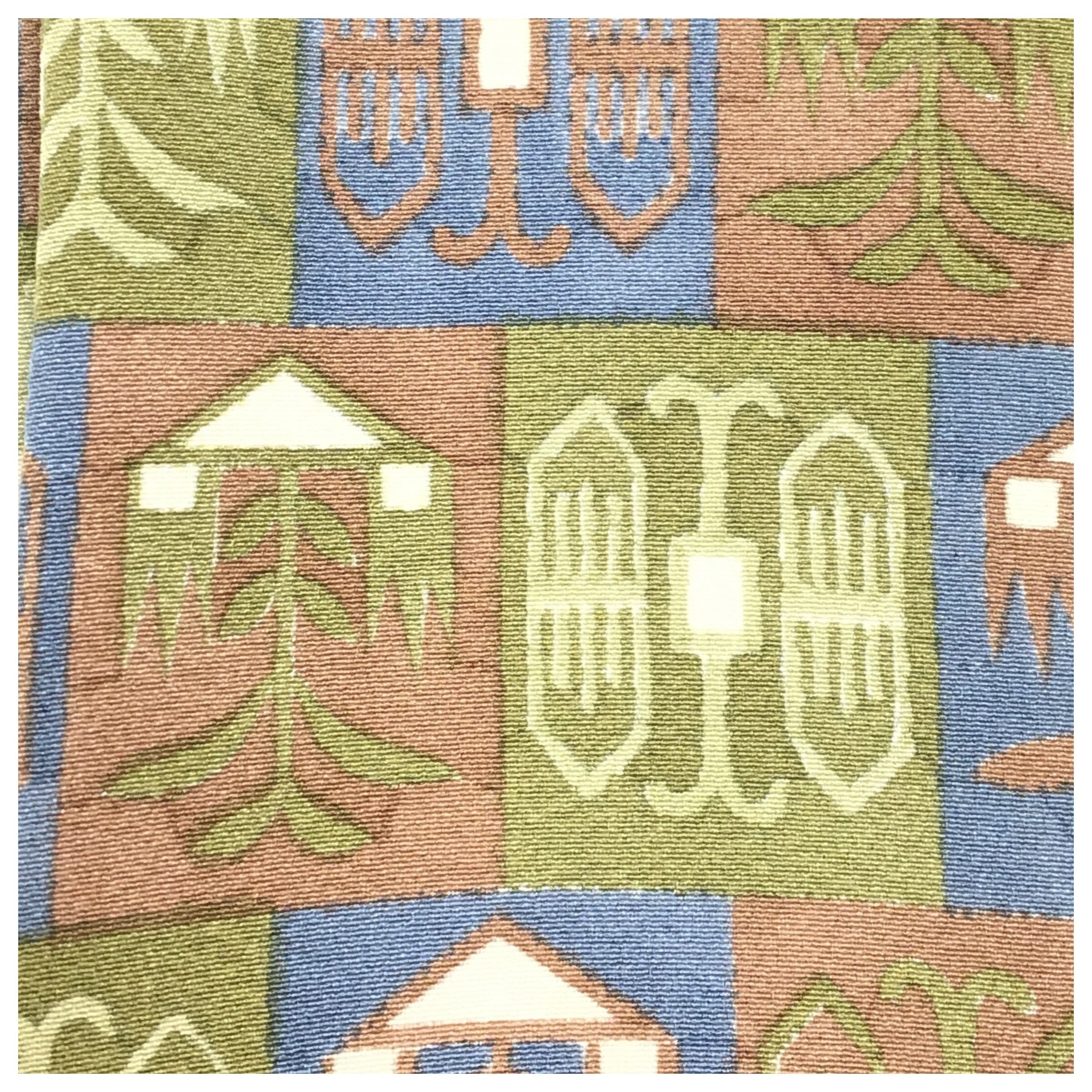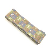 ベージュとブルーを基調とした角紋の小紋で仕上げた手に馴染む帯地です。