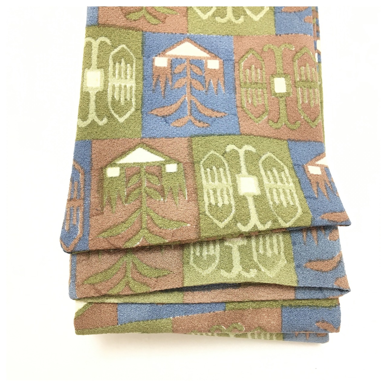 美品 角帯 正絹 男物 ベージュ ブルー 角紋 個性派 長さ400