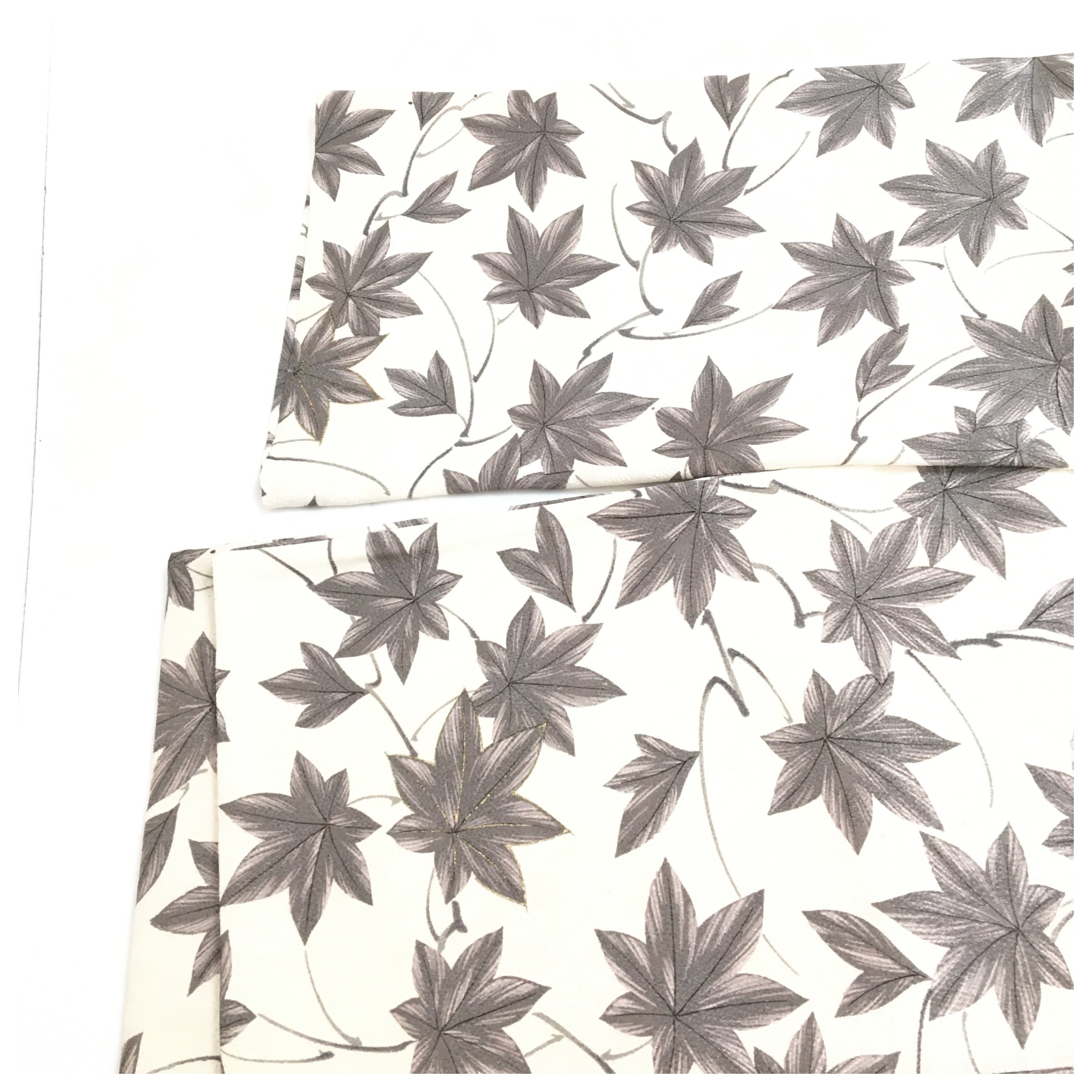正絹 半幅帯 楓 墨絵柄 クリーム 全通柄 小紋 長尺388