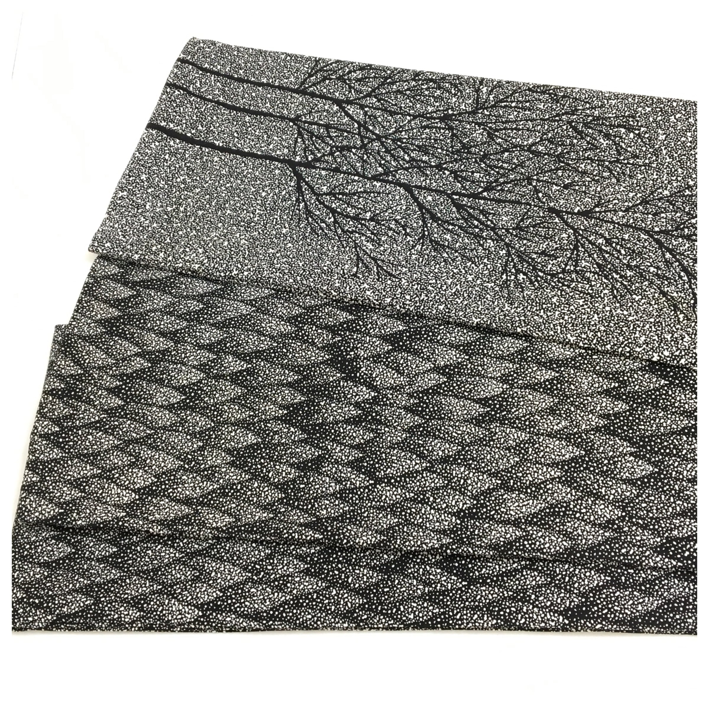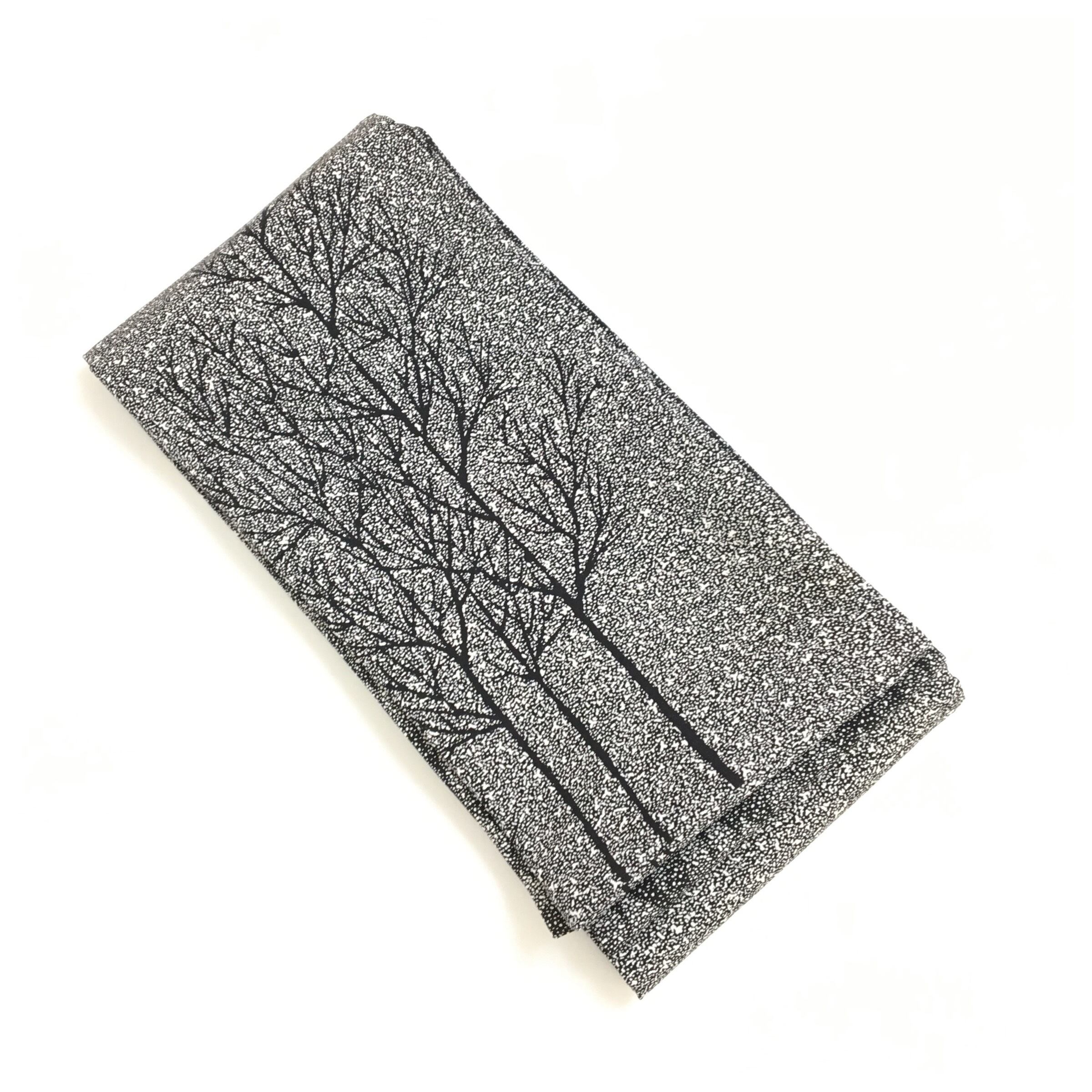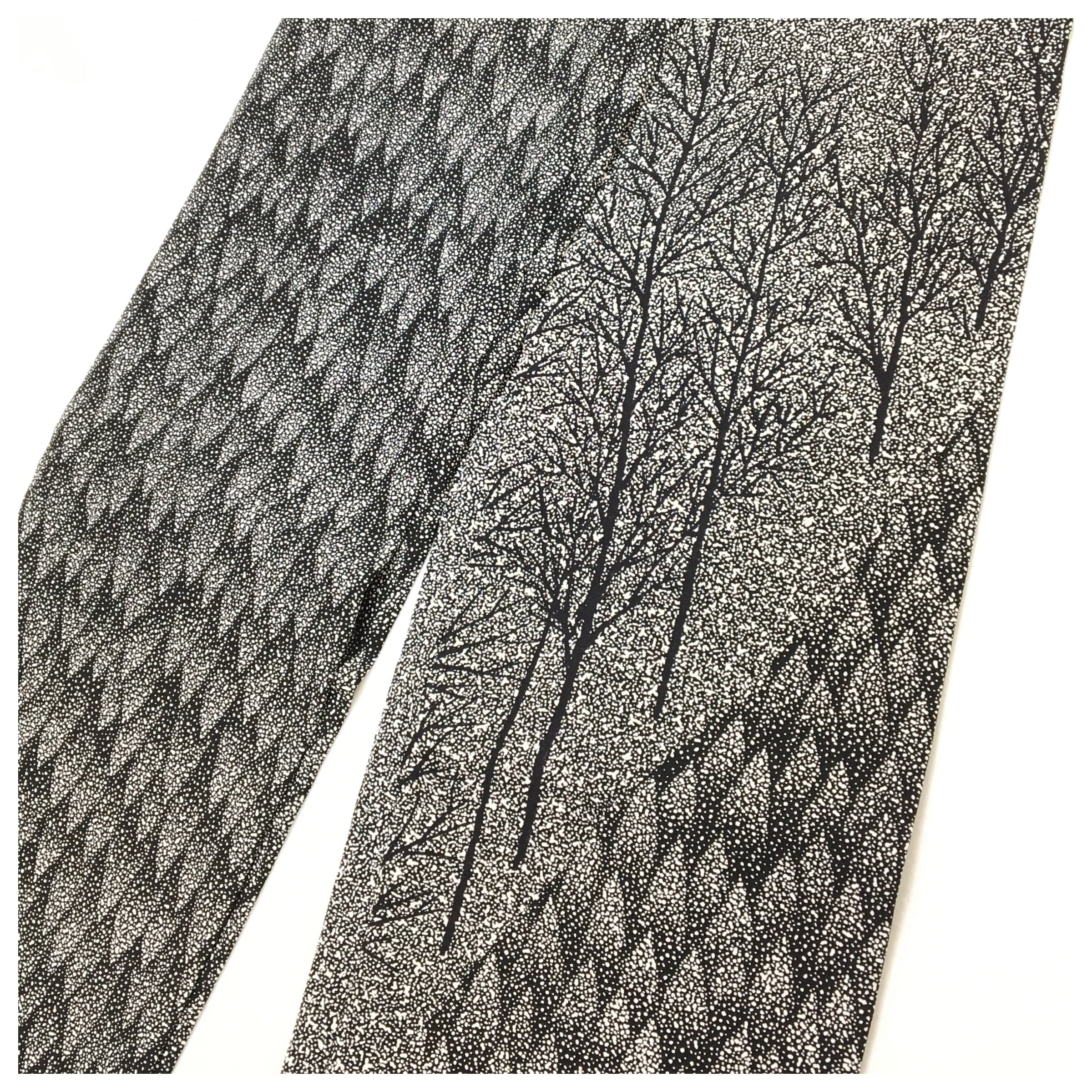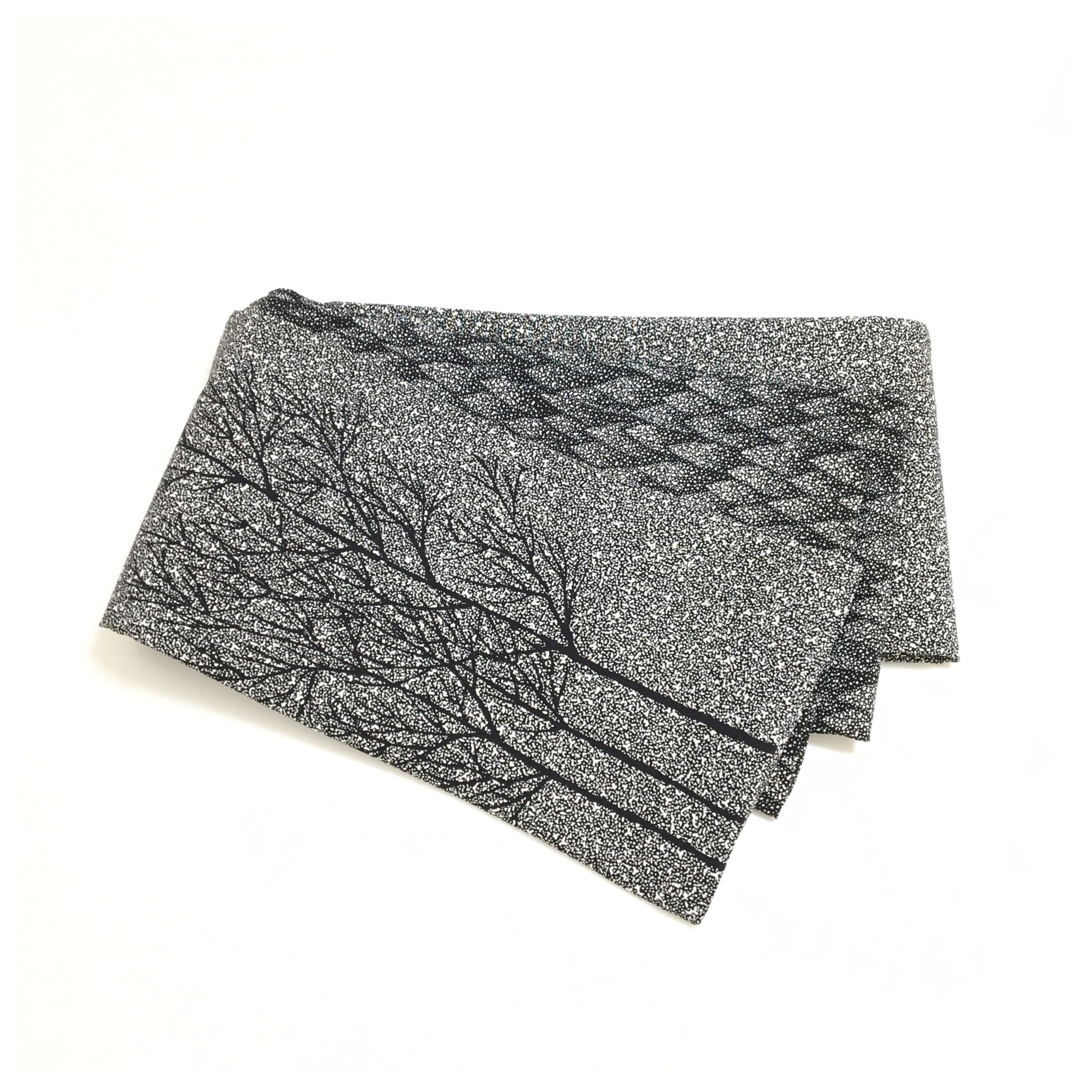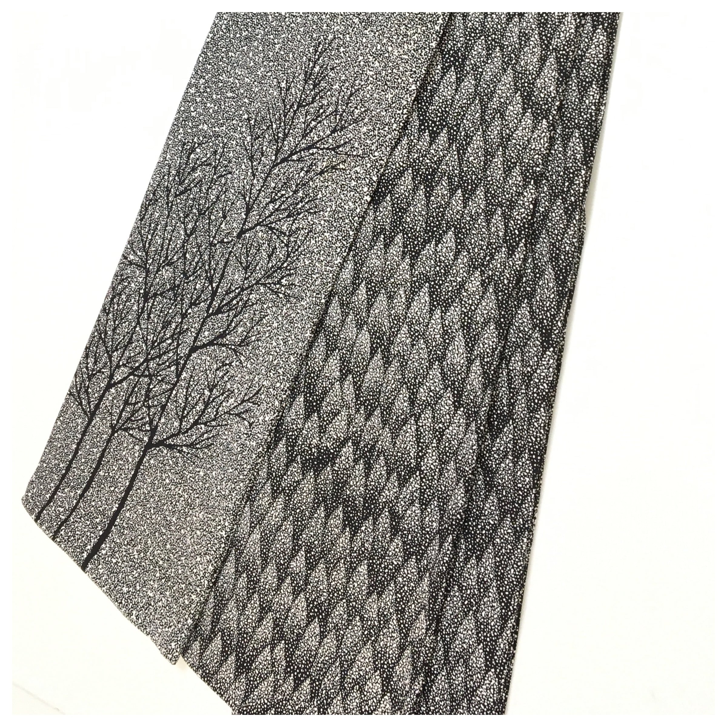 正絹 半幅帯 黒 たたき染 木柄 お洒落 長さ416 リサイクル 中古品