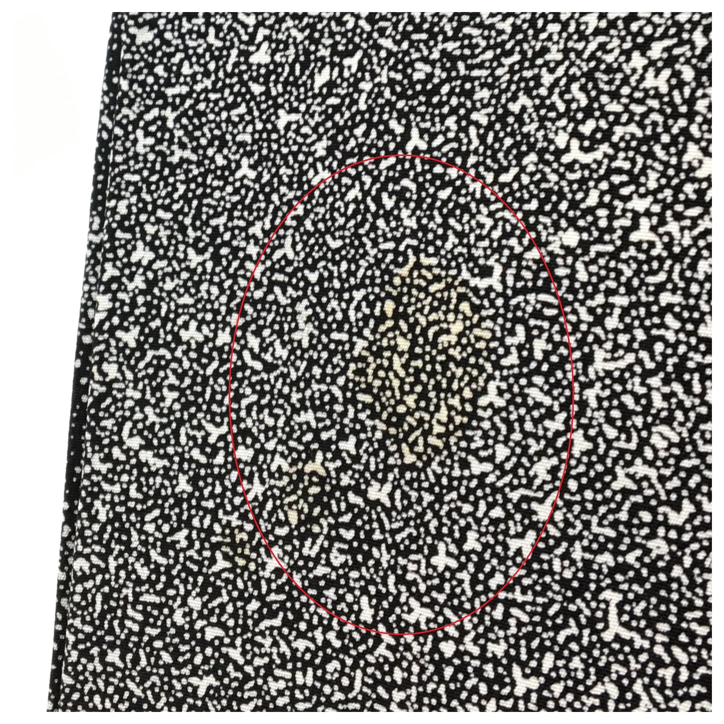 残念ですが片側50cmあたりに柄に紛れた汚れがありましたので、