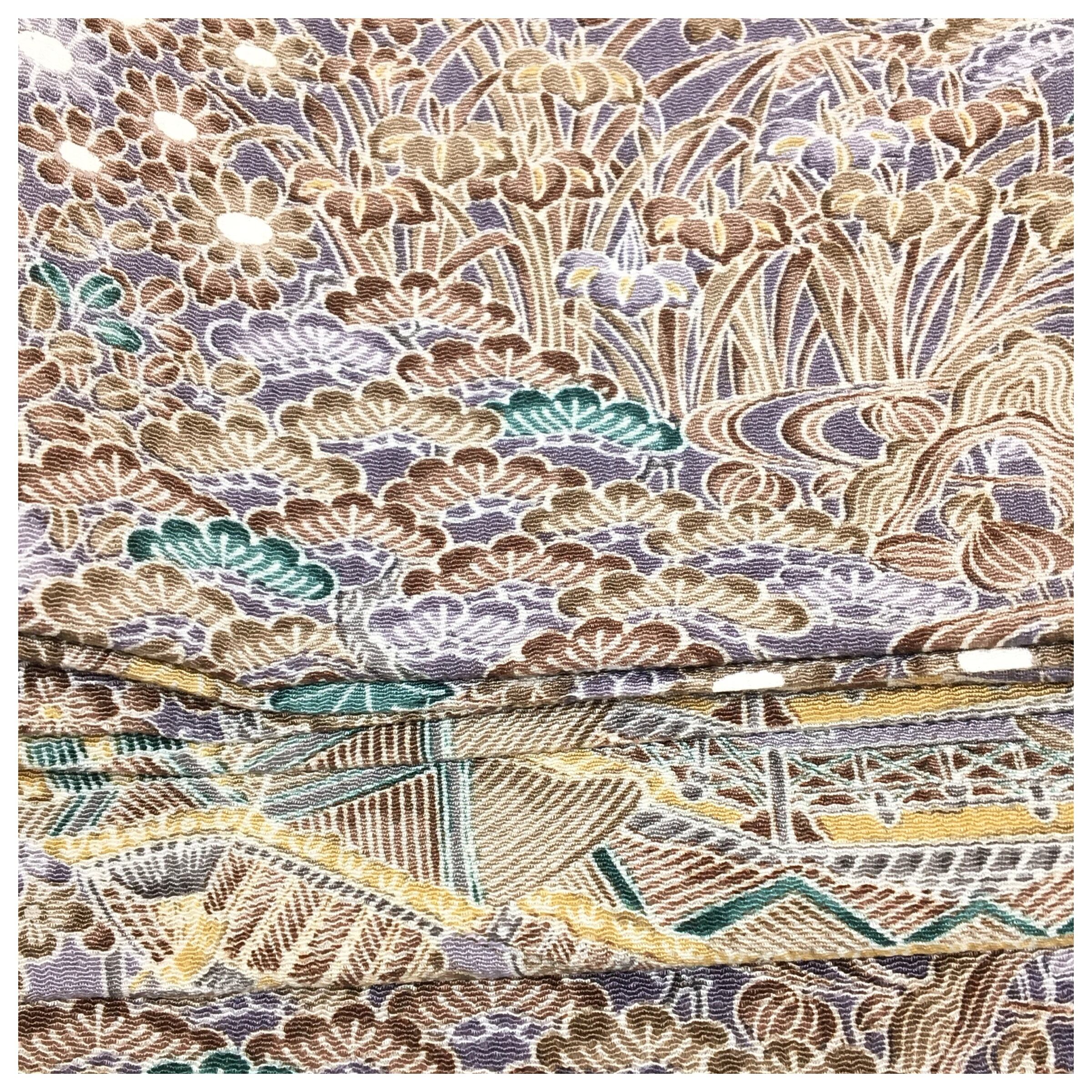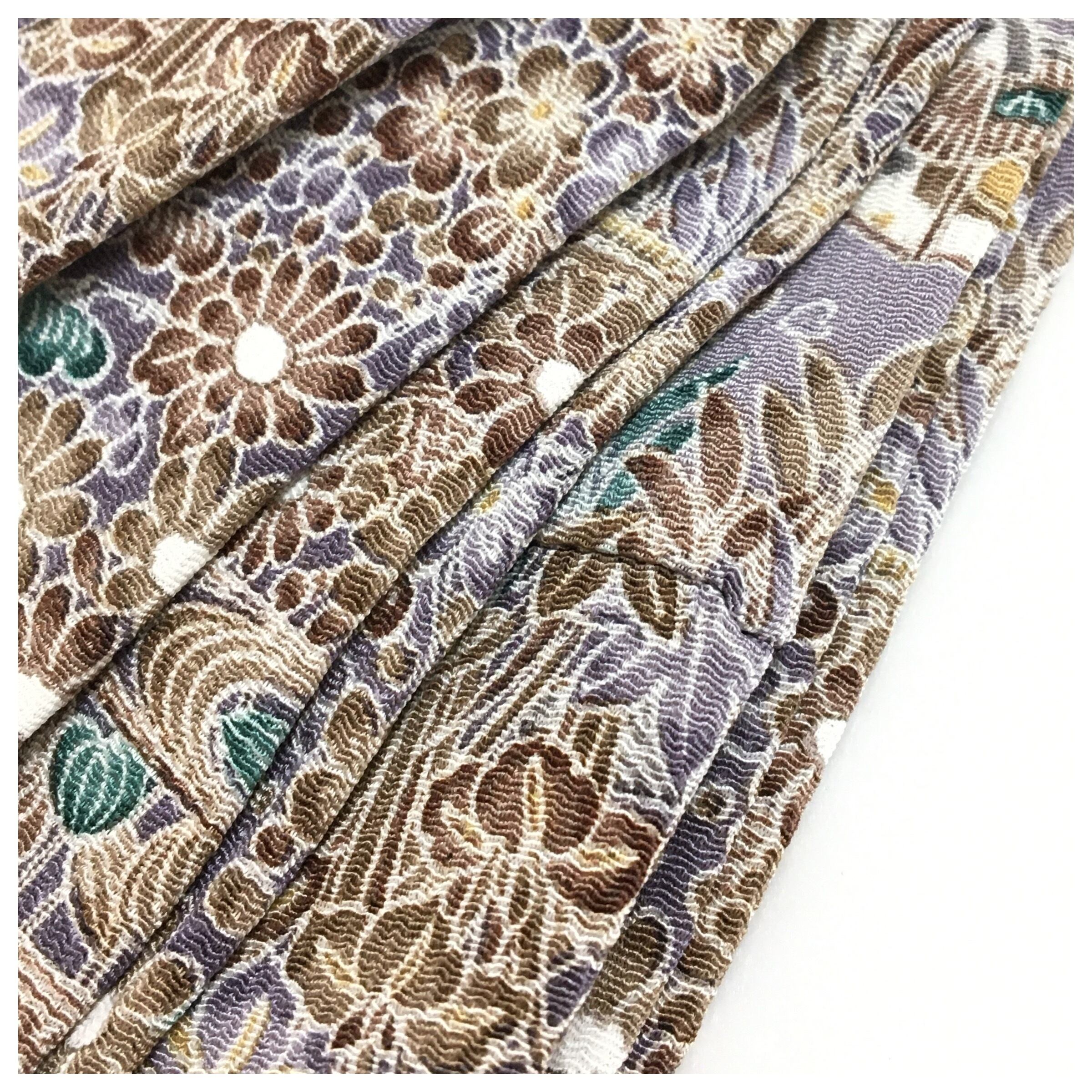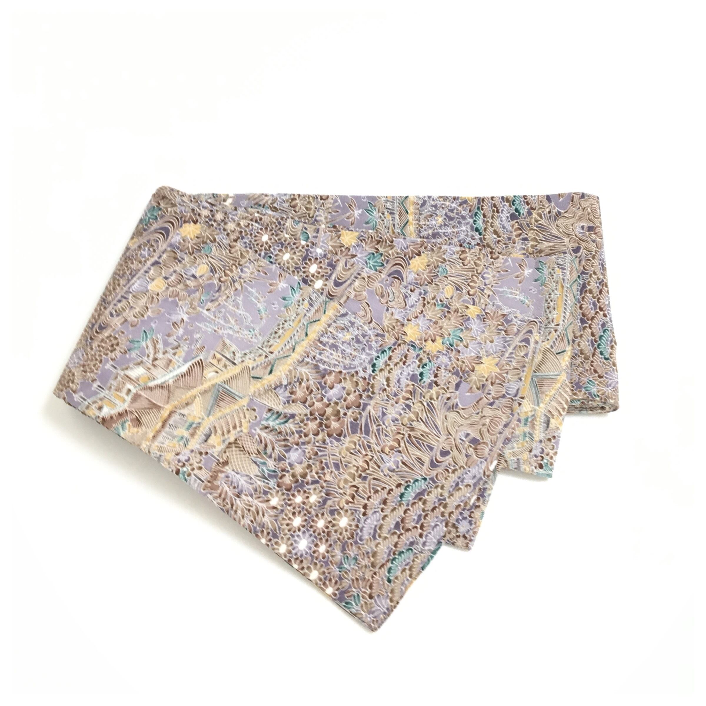美品 半幅帯 正絹 茶屋辻柄 紫 個性派 全通 長さ428 リサイクル 中古品
