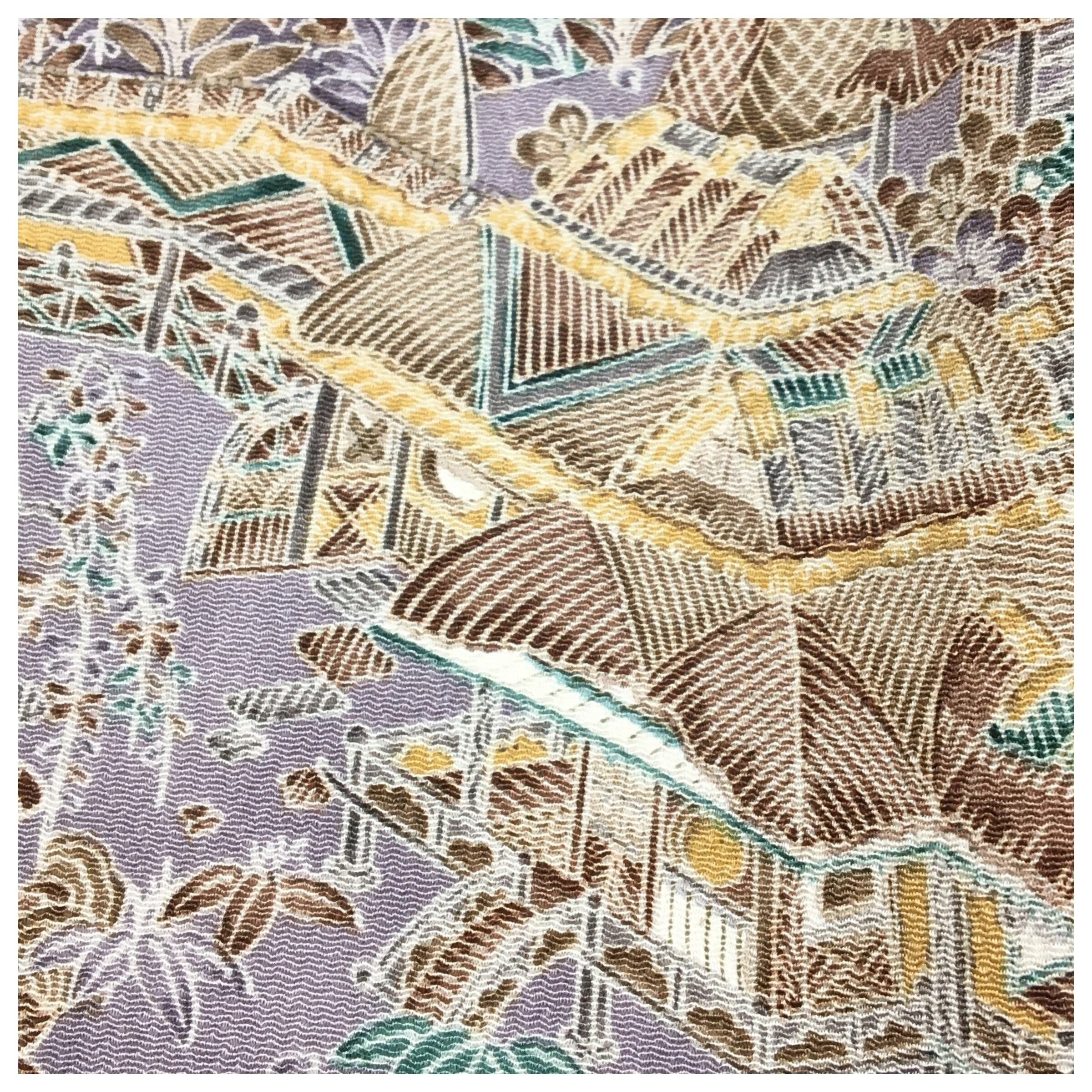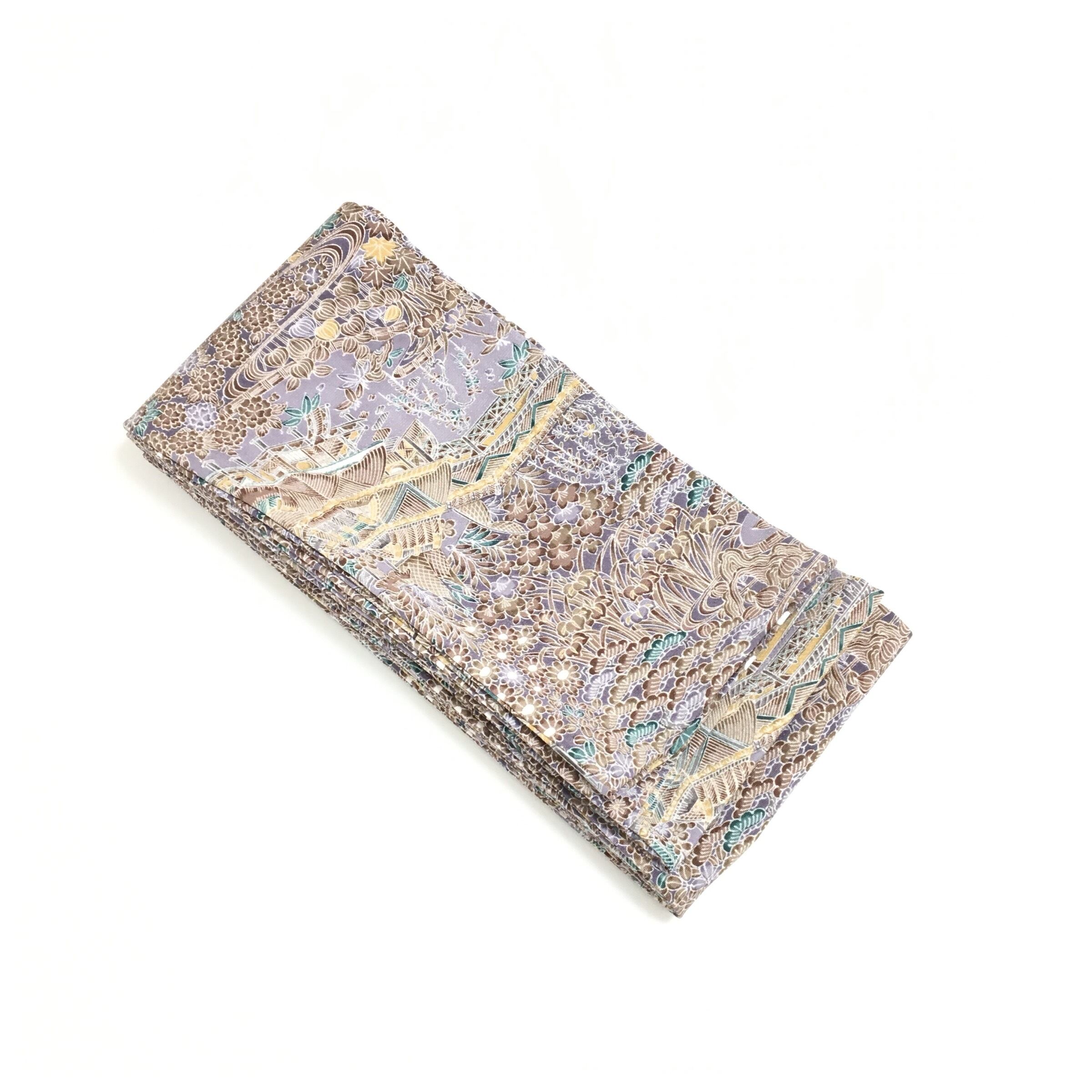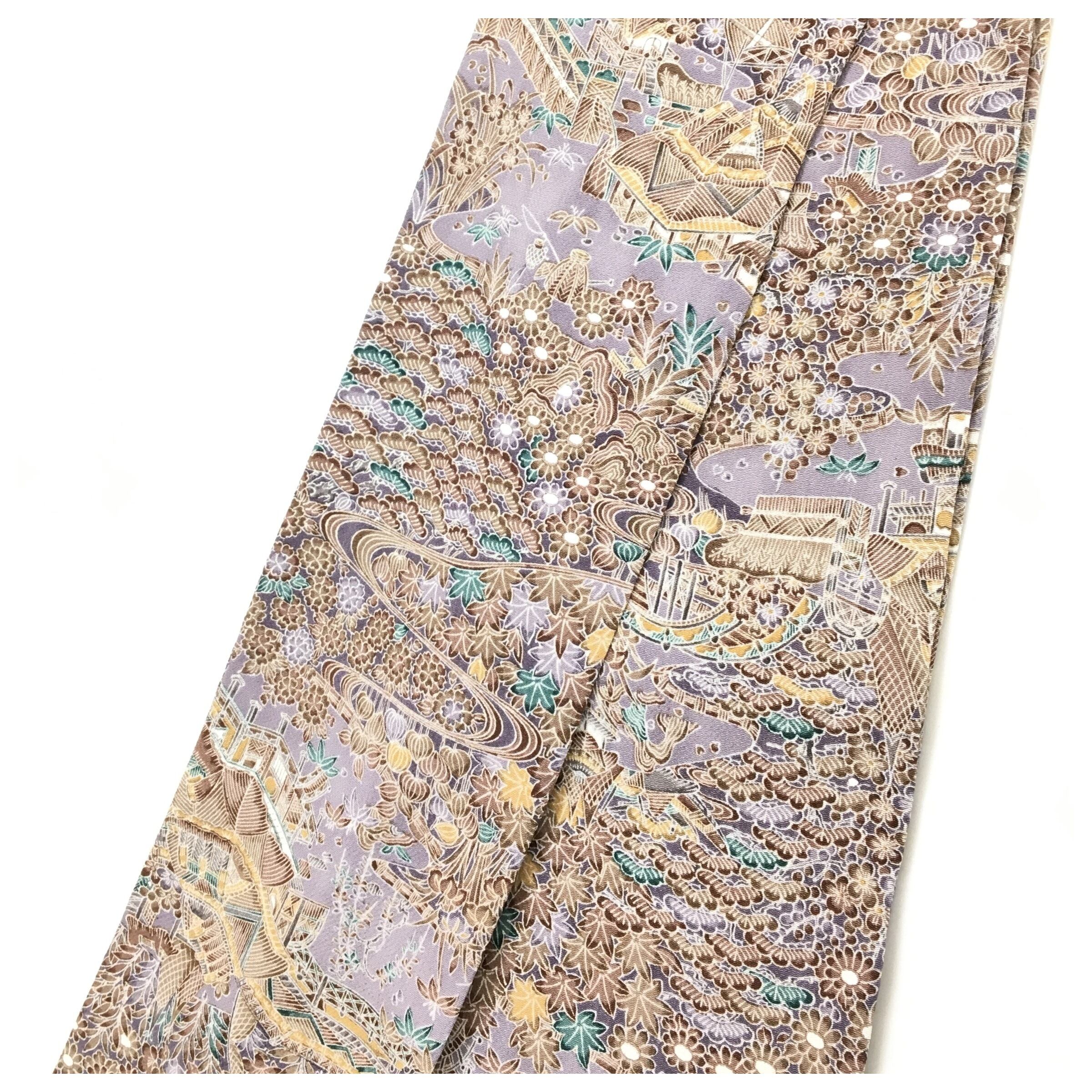 美品 半幅帯 正絹 茶屋辻柄 紫 個性派 全通 長さ428 リサイクル 中古品