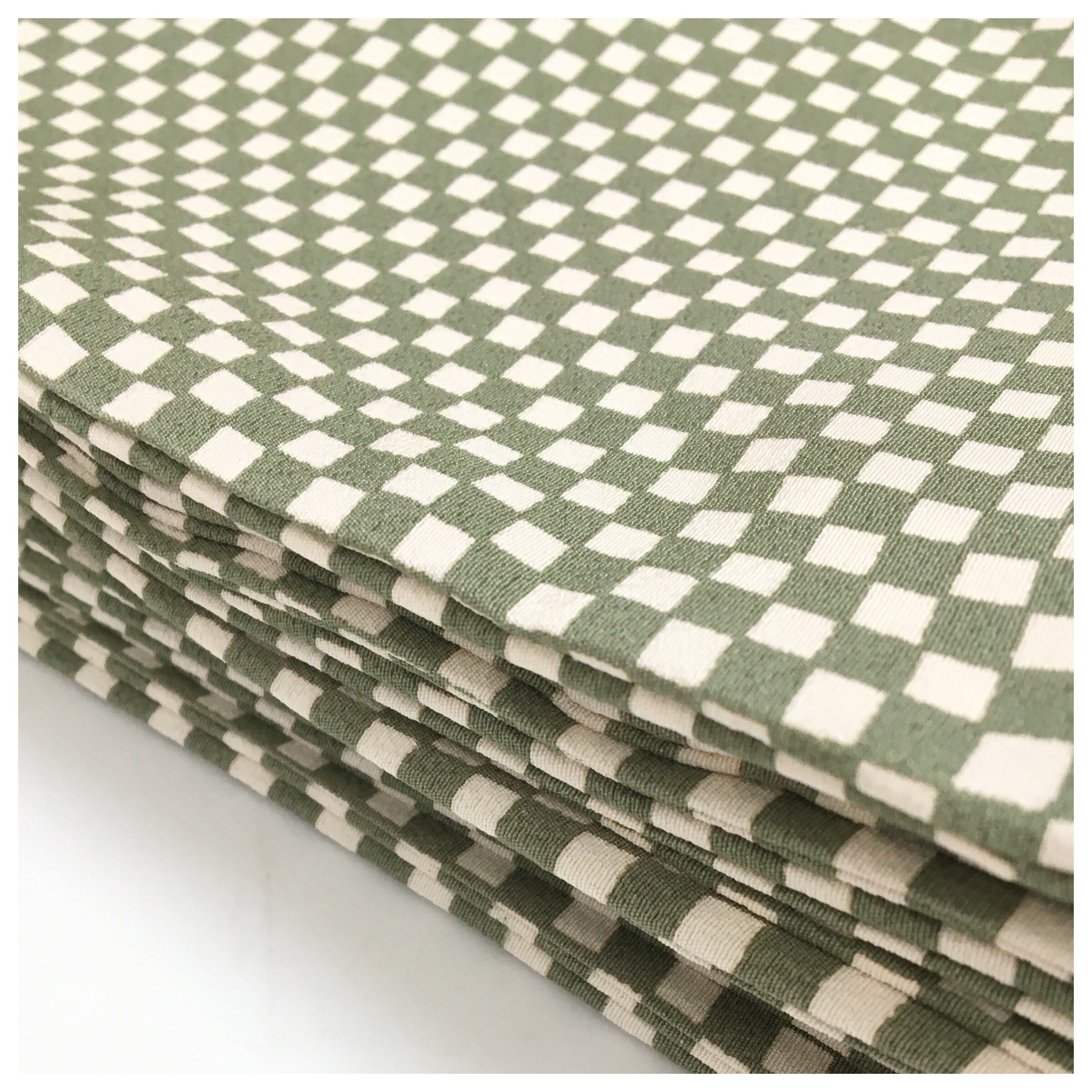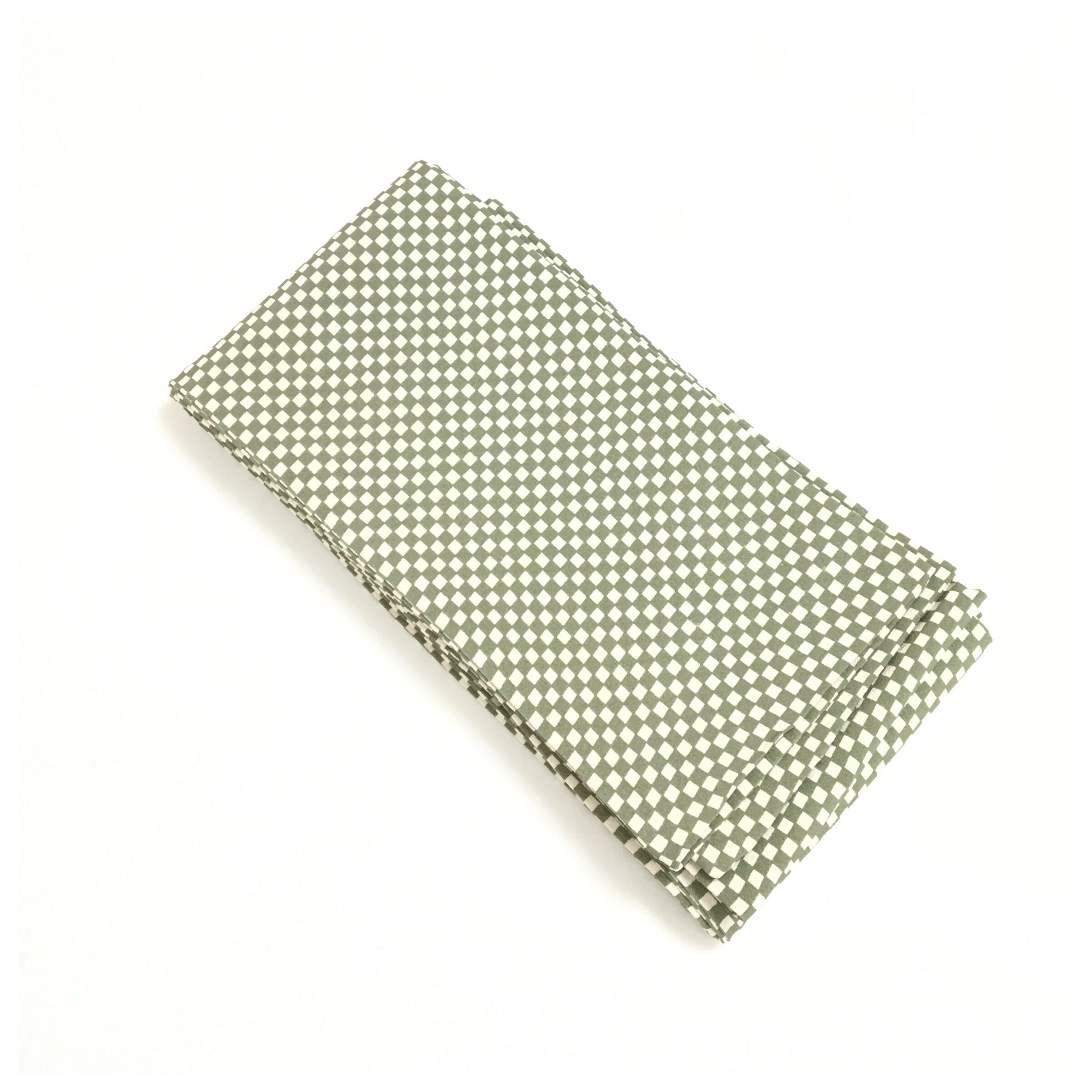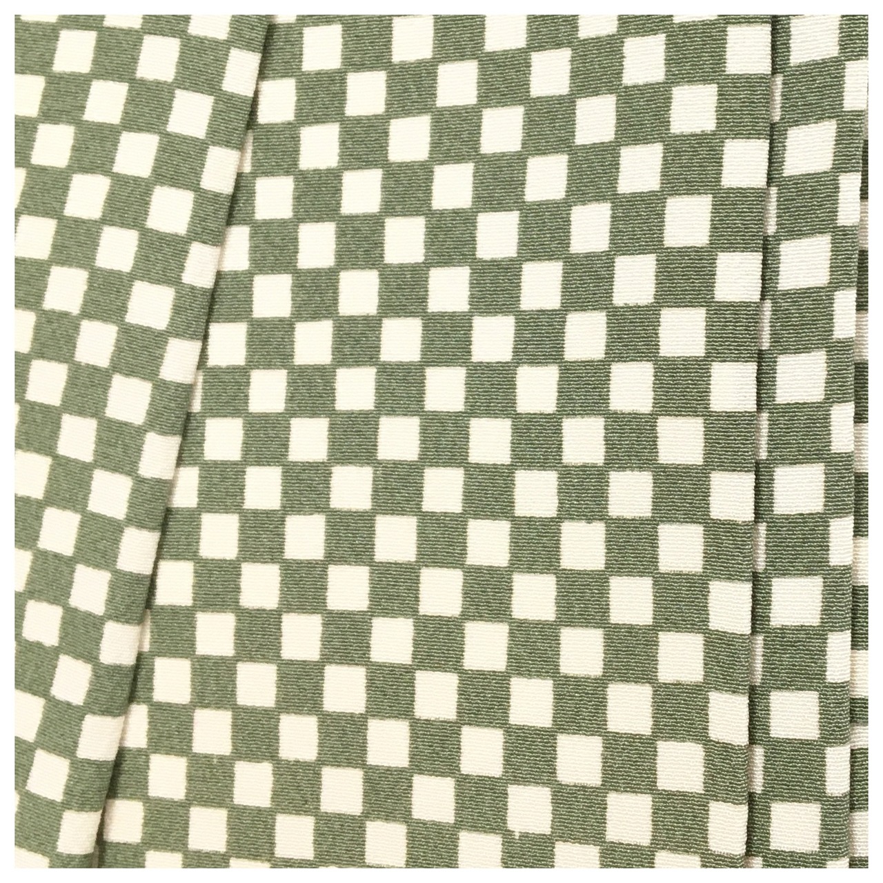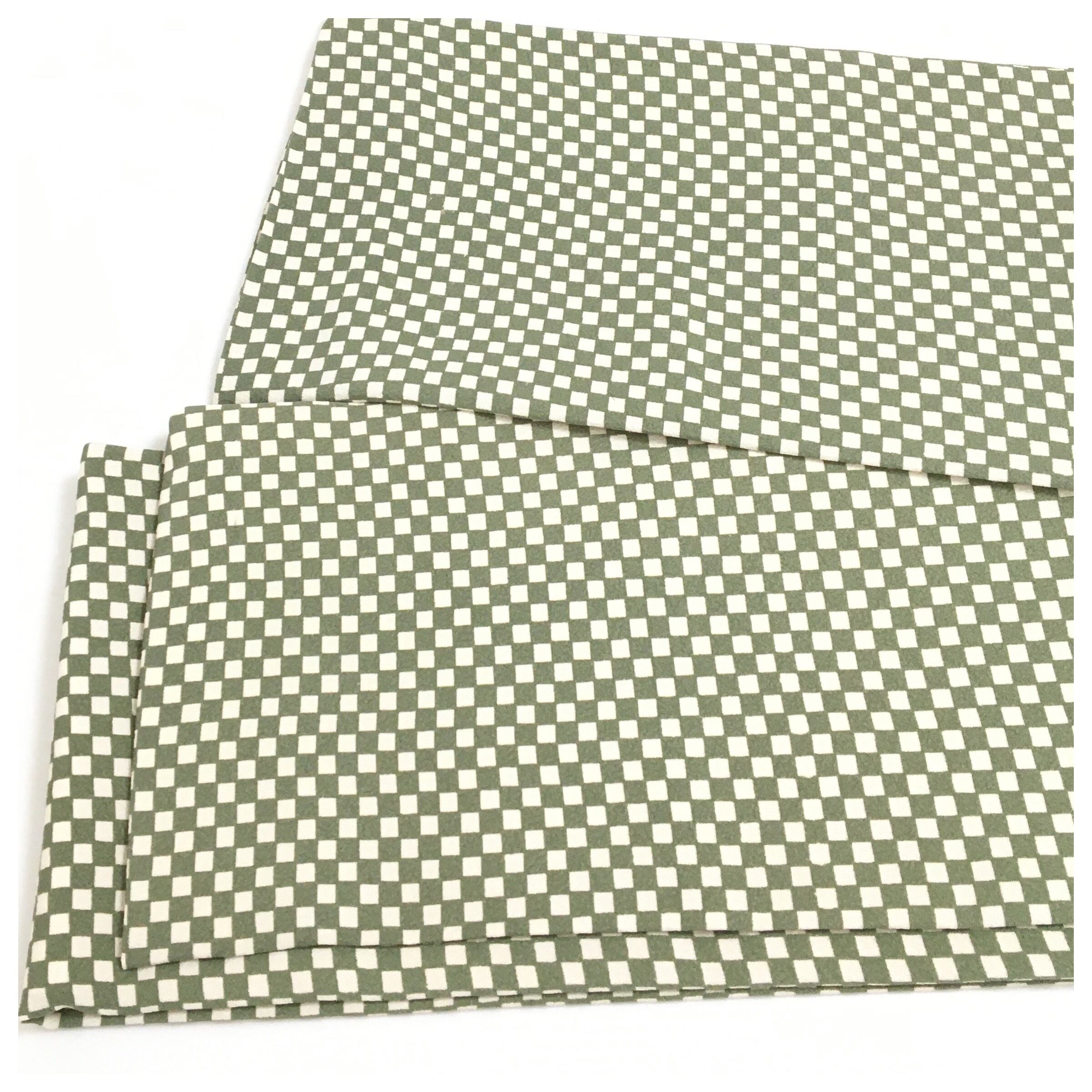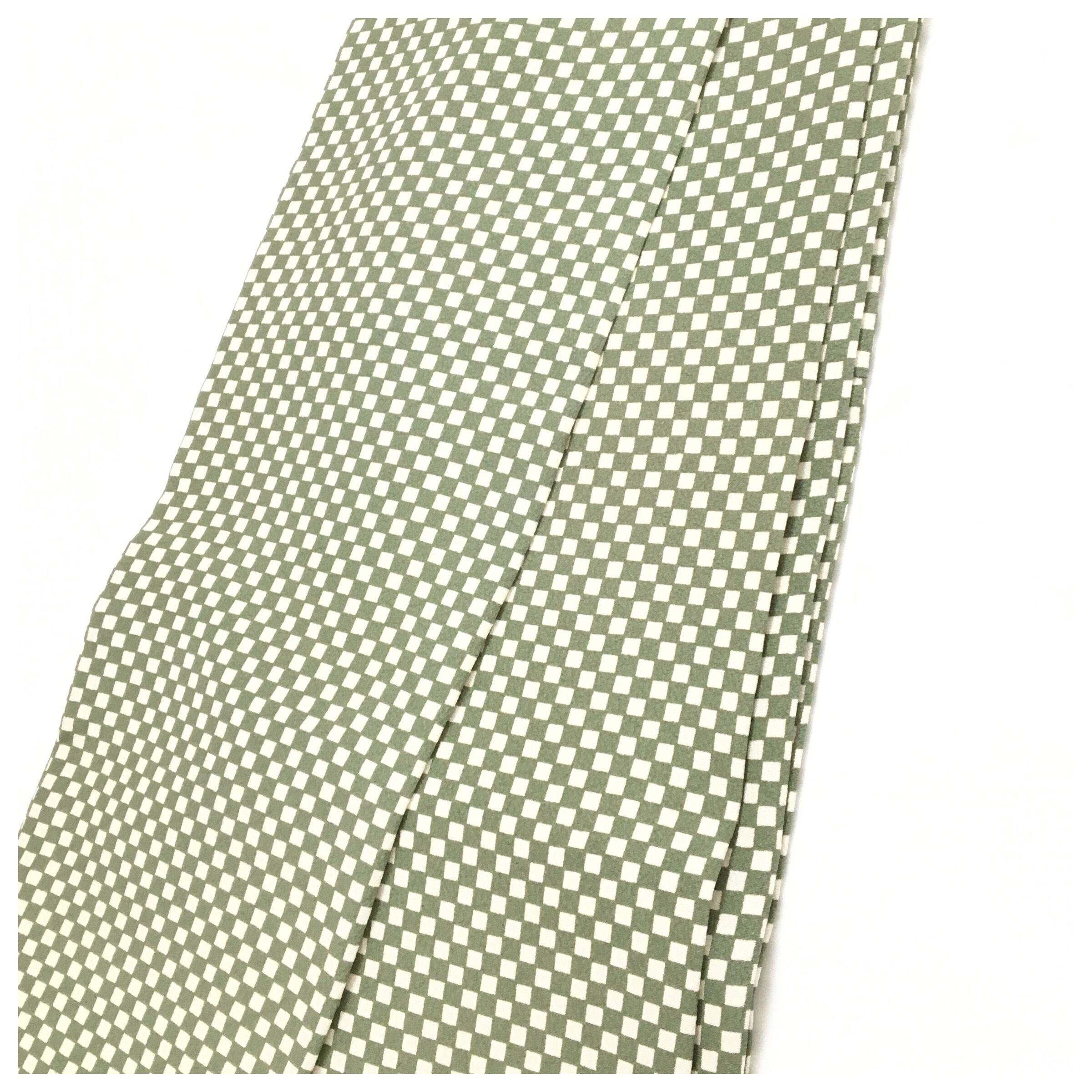 美品 半幅帯 正絹 市松柄 グリーン 個性派 全通 長さ412 リサイクル 中古品