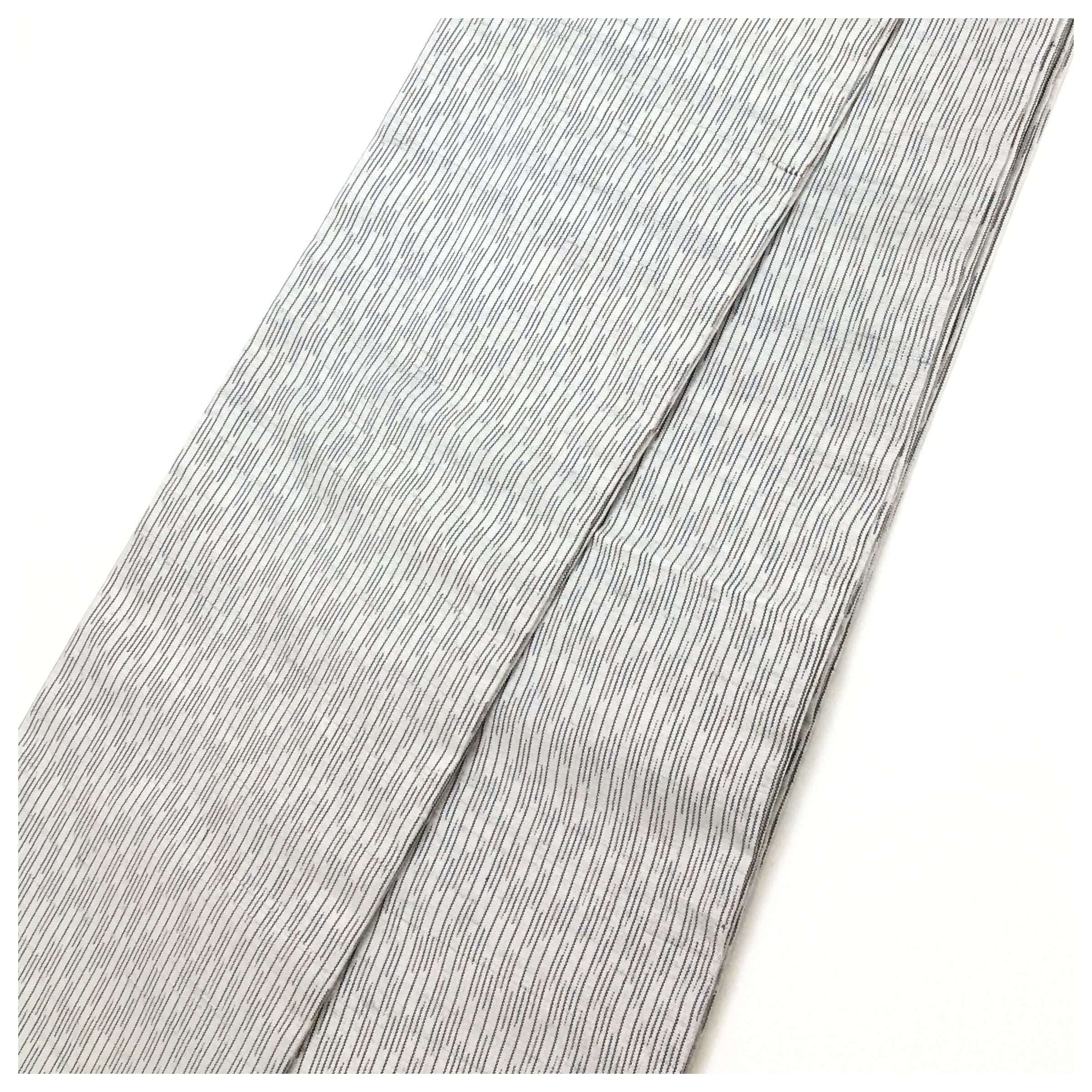 美品 正絹 お召 半幅帯 ホワイトグレー 縞 長尺408 中古品 です。
