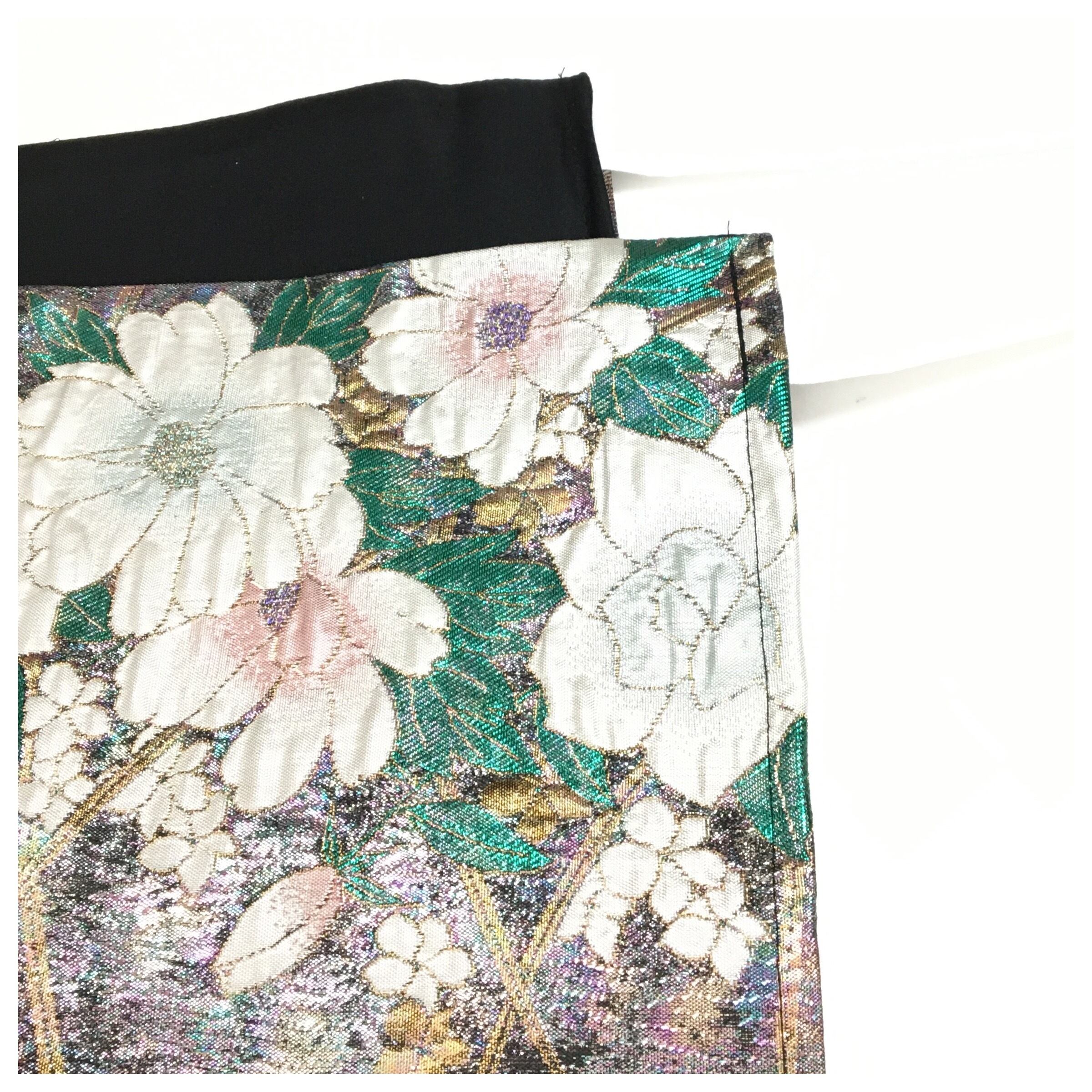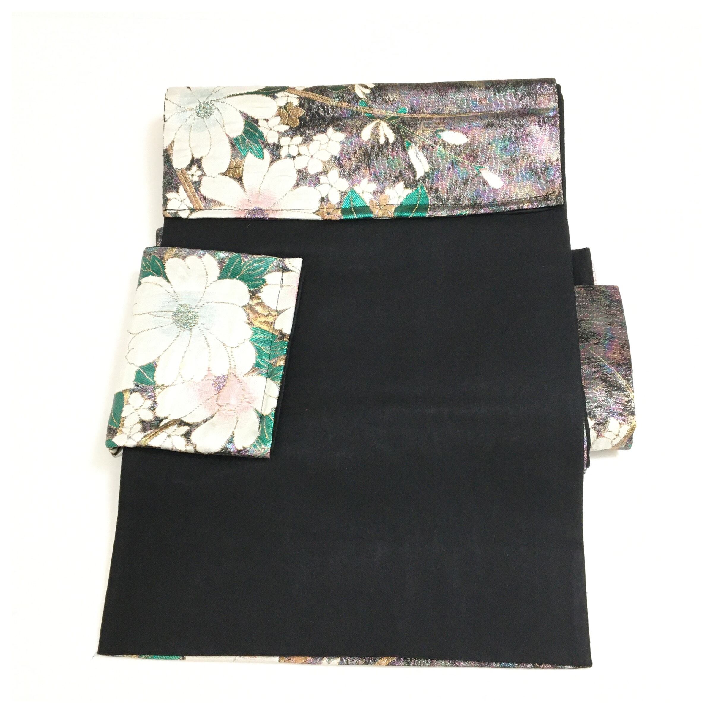 正絹 付け帯 楽帯 黒地 シルバー 華紋 二部式 二重太鼓 作り帯 です。