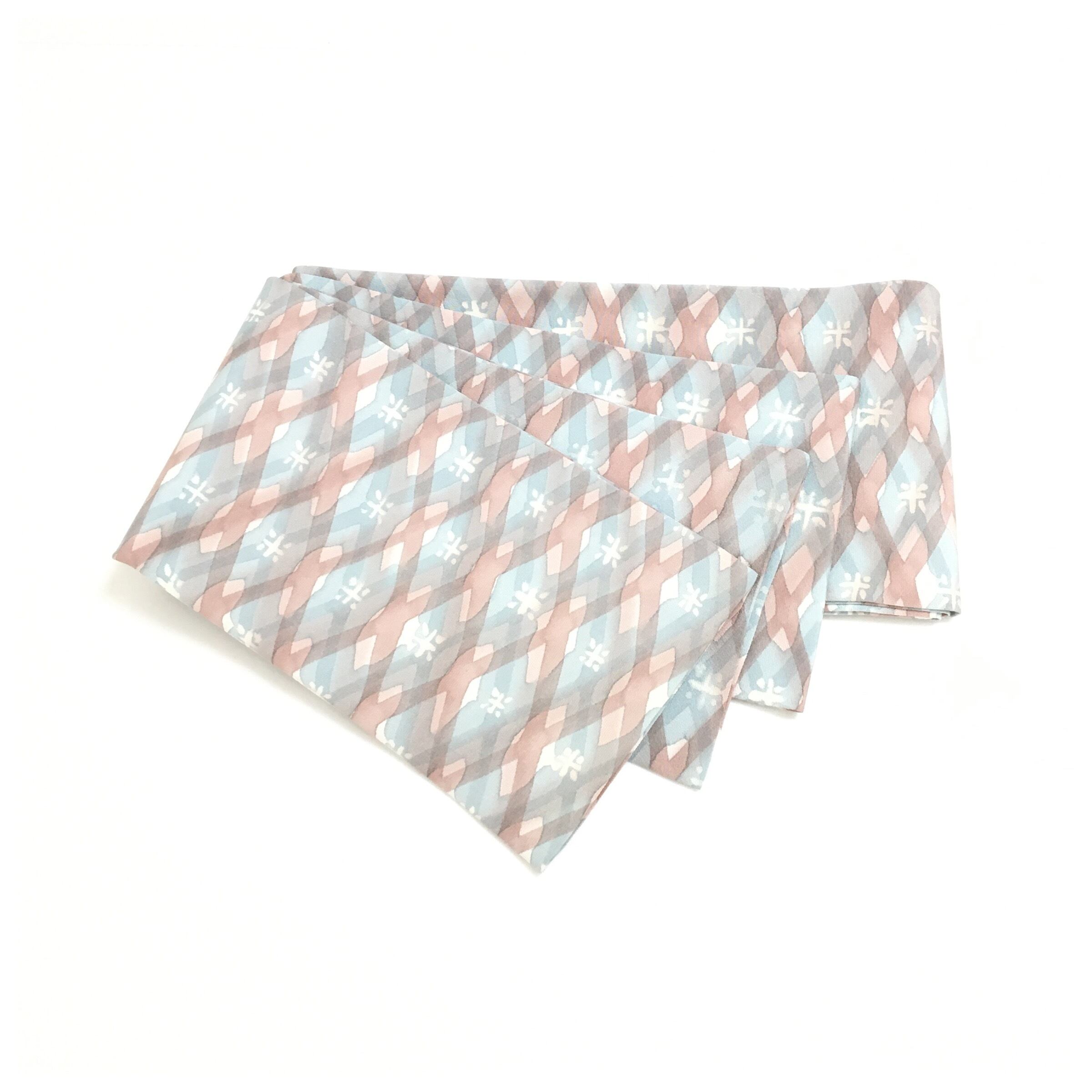 美品 正絹 小紋 大人お洒落 半幅帯 水色 長尺408 幅16 中古品です。