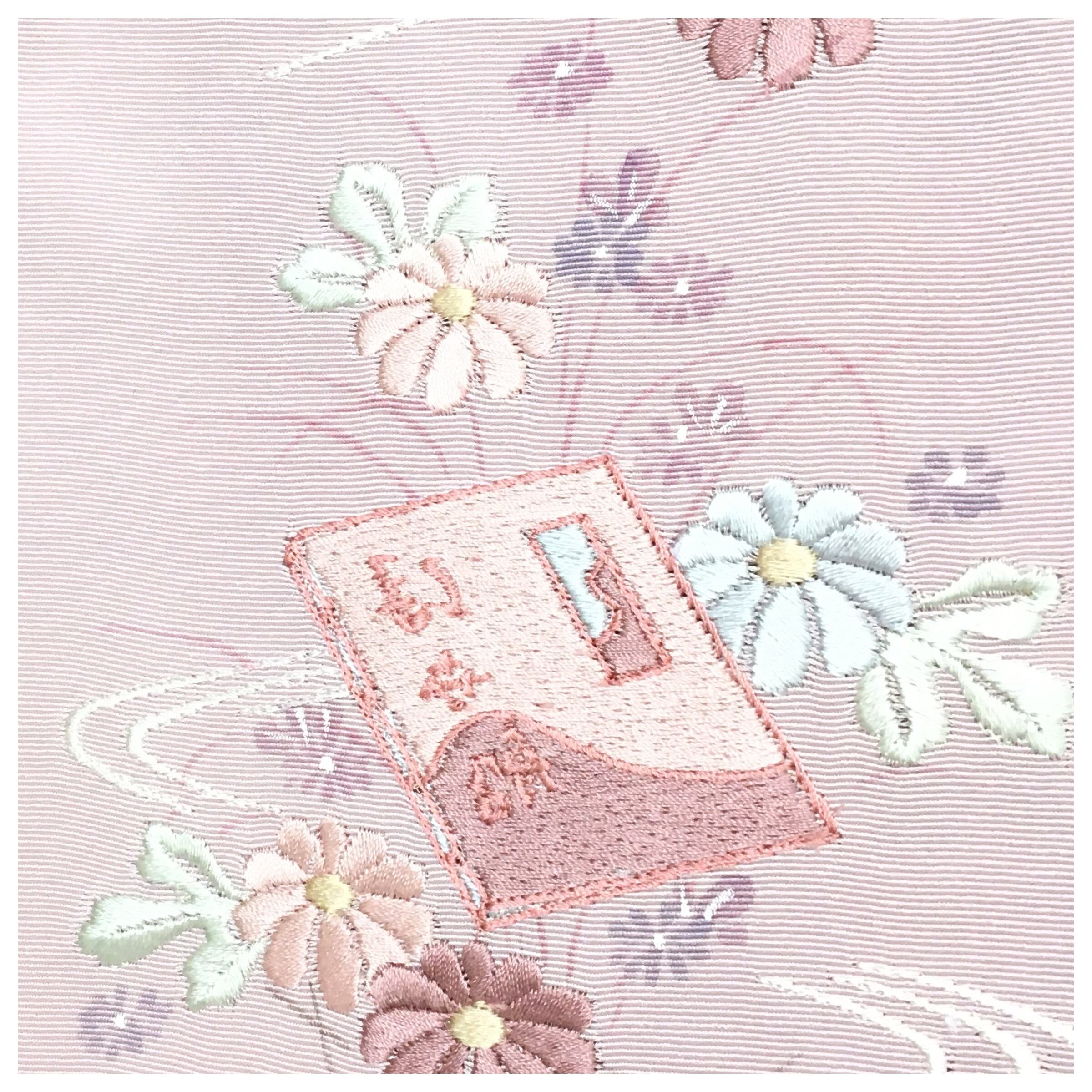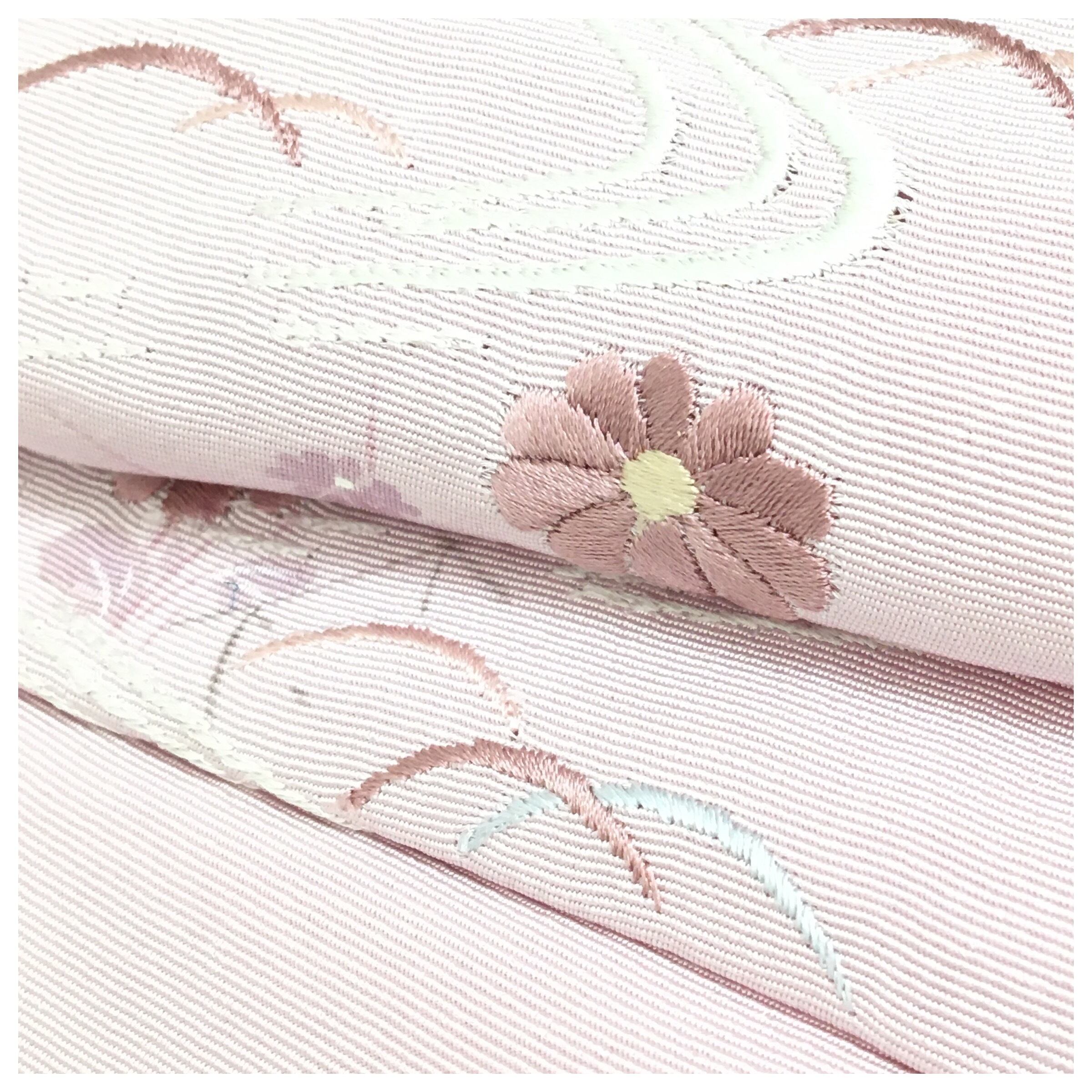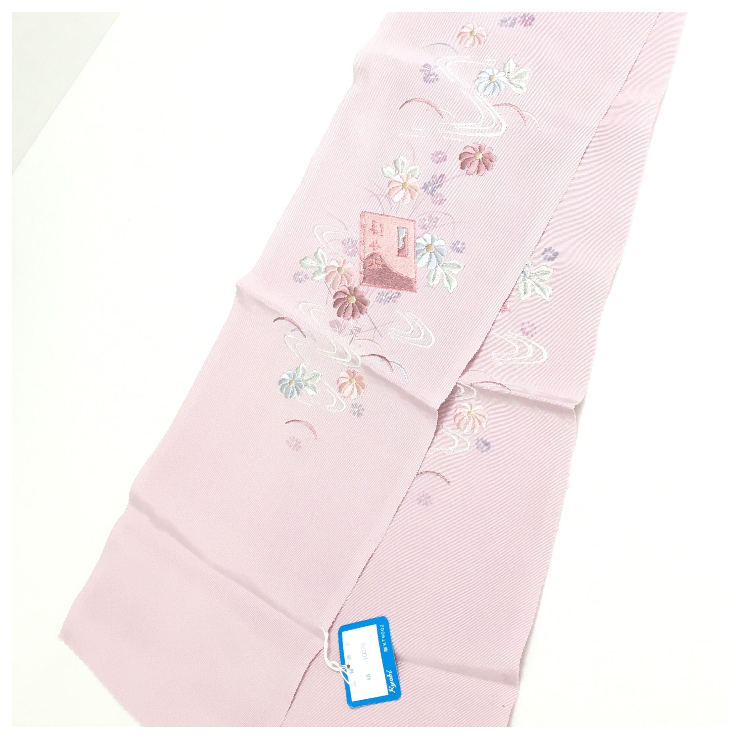 未使用 正絹 刺繍柄 半襟 淡いピンク紫 和装小物 です。