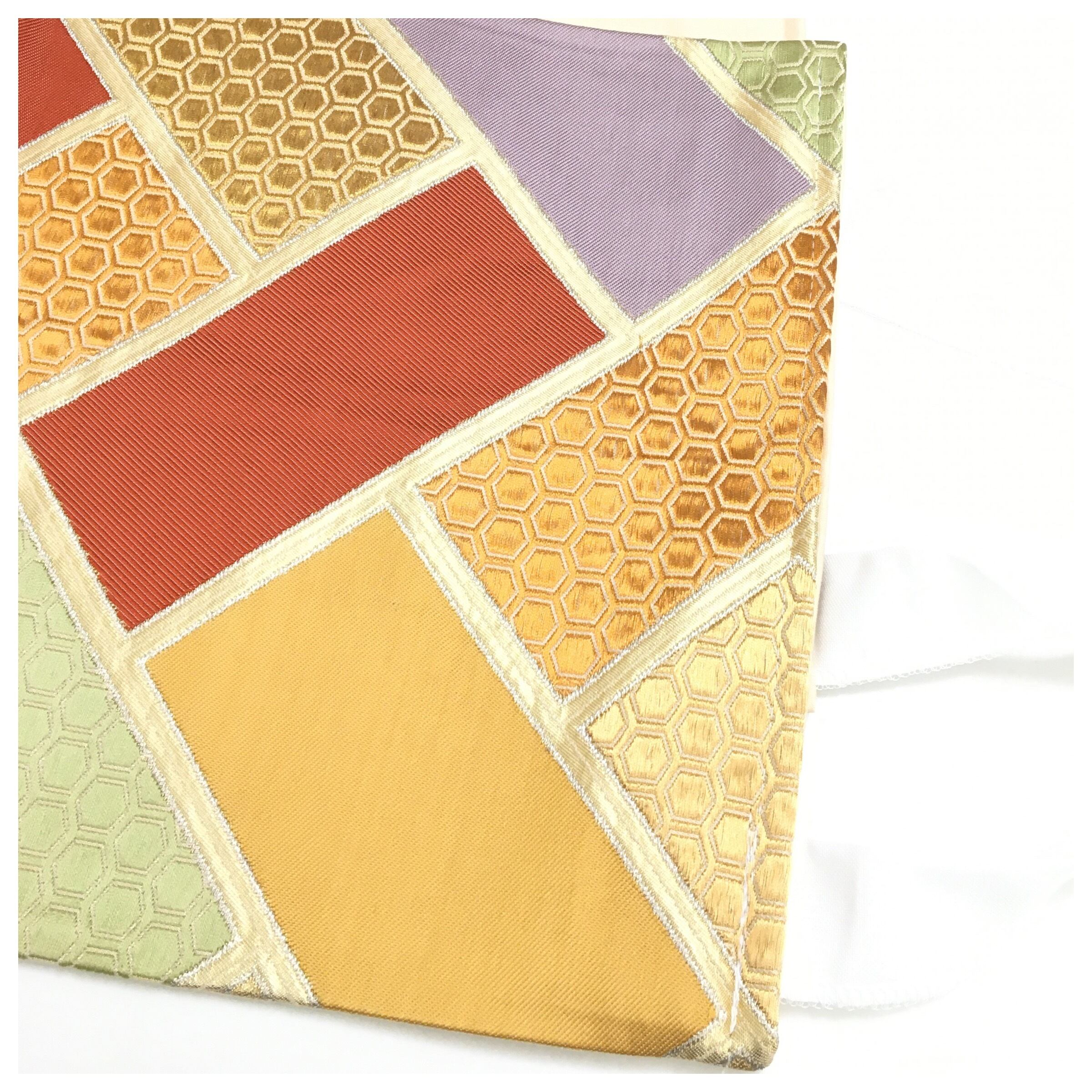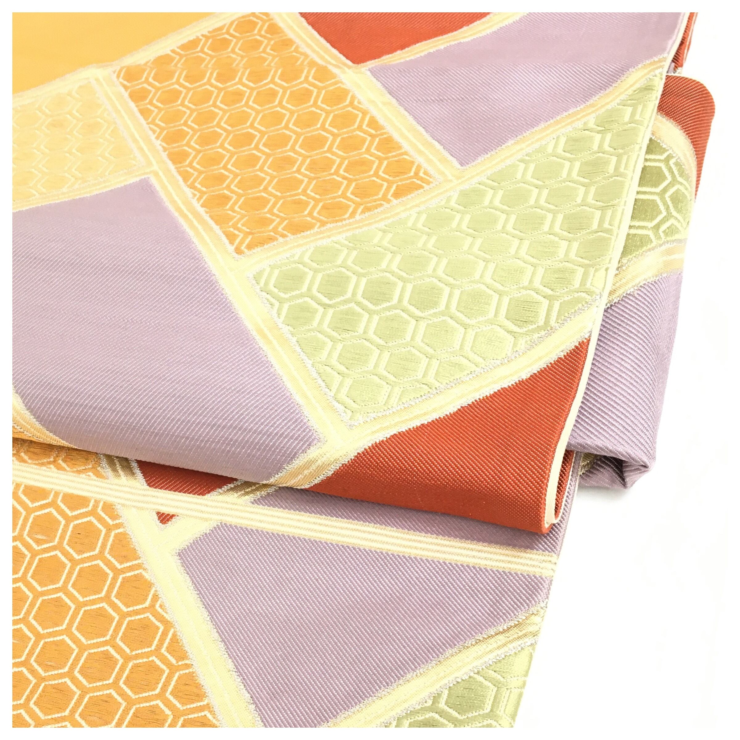 正絹 袋帯 作り帯 楽帯 網代模様 多彩 二部式 二重太鼓 付け帯 です。