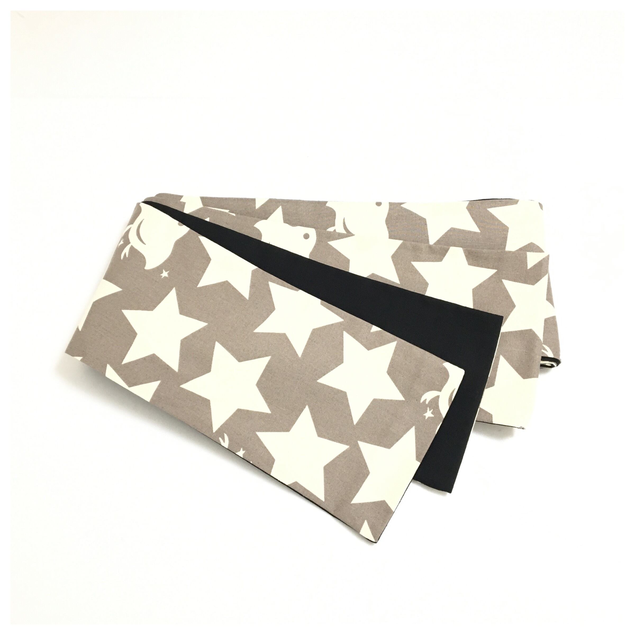 チャコールグレーに千鳥と星をデザインしたお洒落なファブリックの半幅帯です。