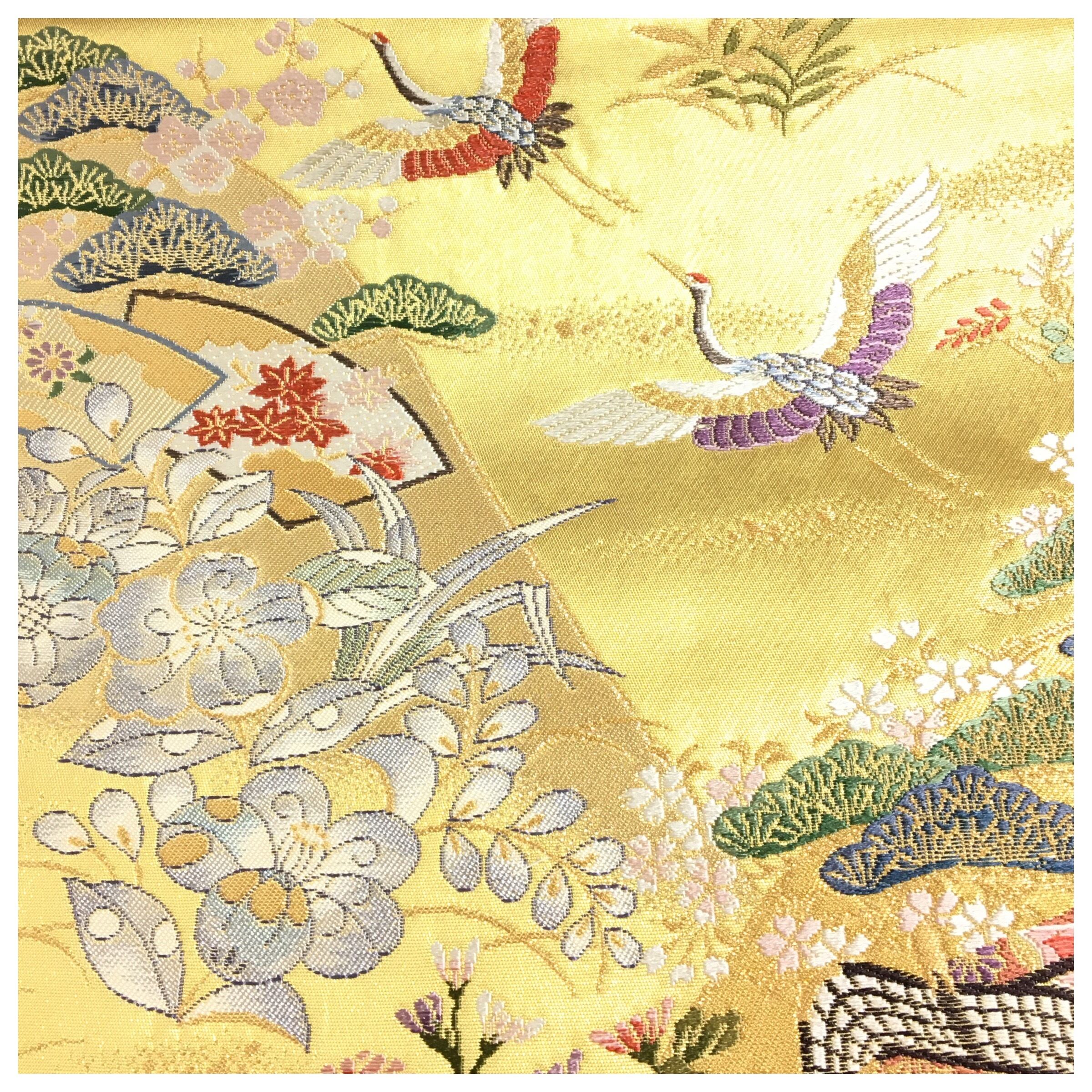 美品 正絹 楽帯 袋帯 高級呉服 二部式 金彩 鶴 松 華 二重太鼓 作り帯 です。