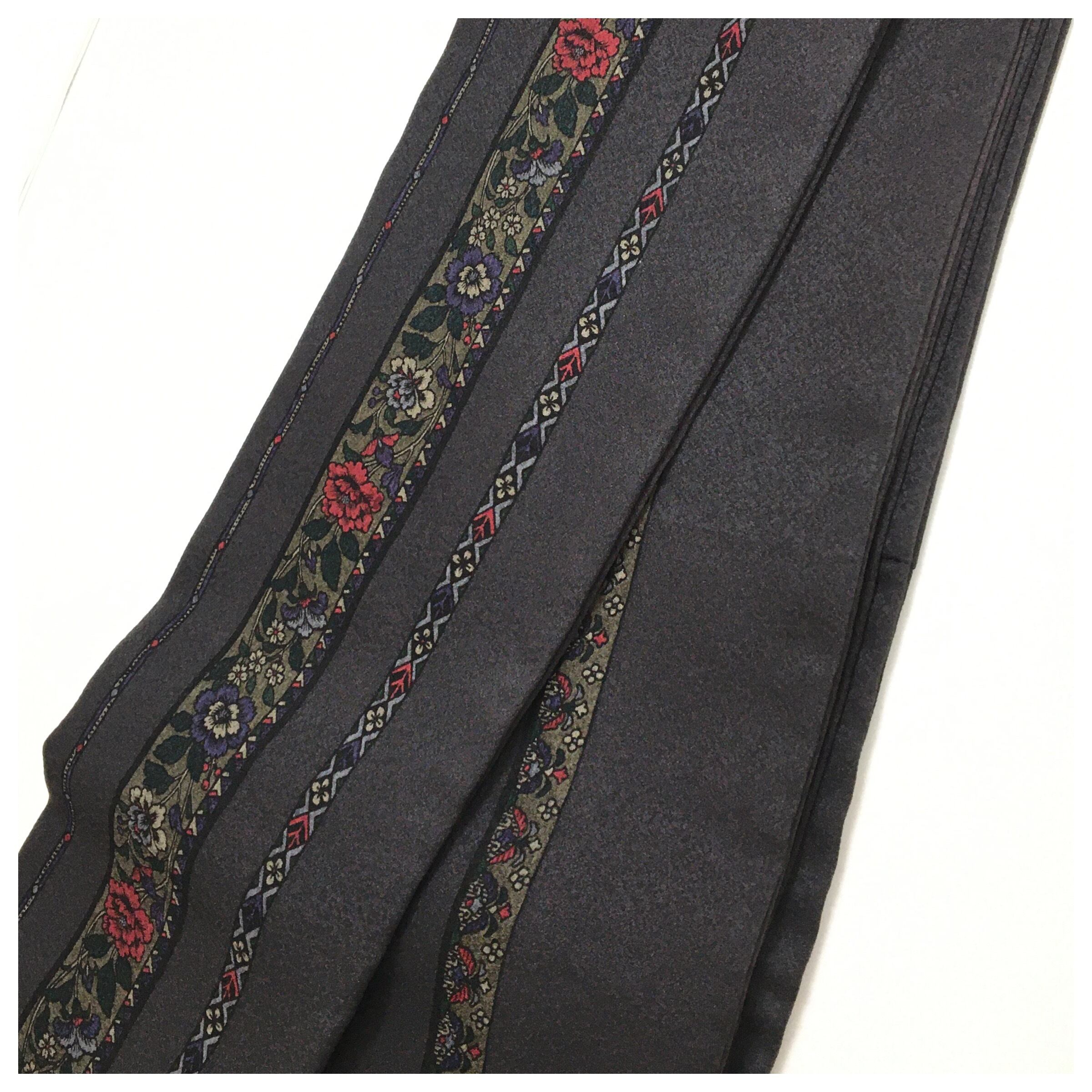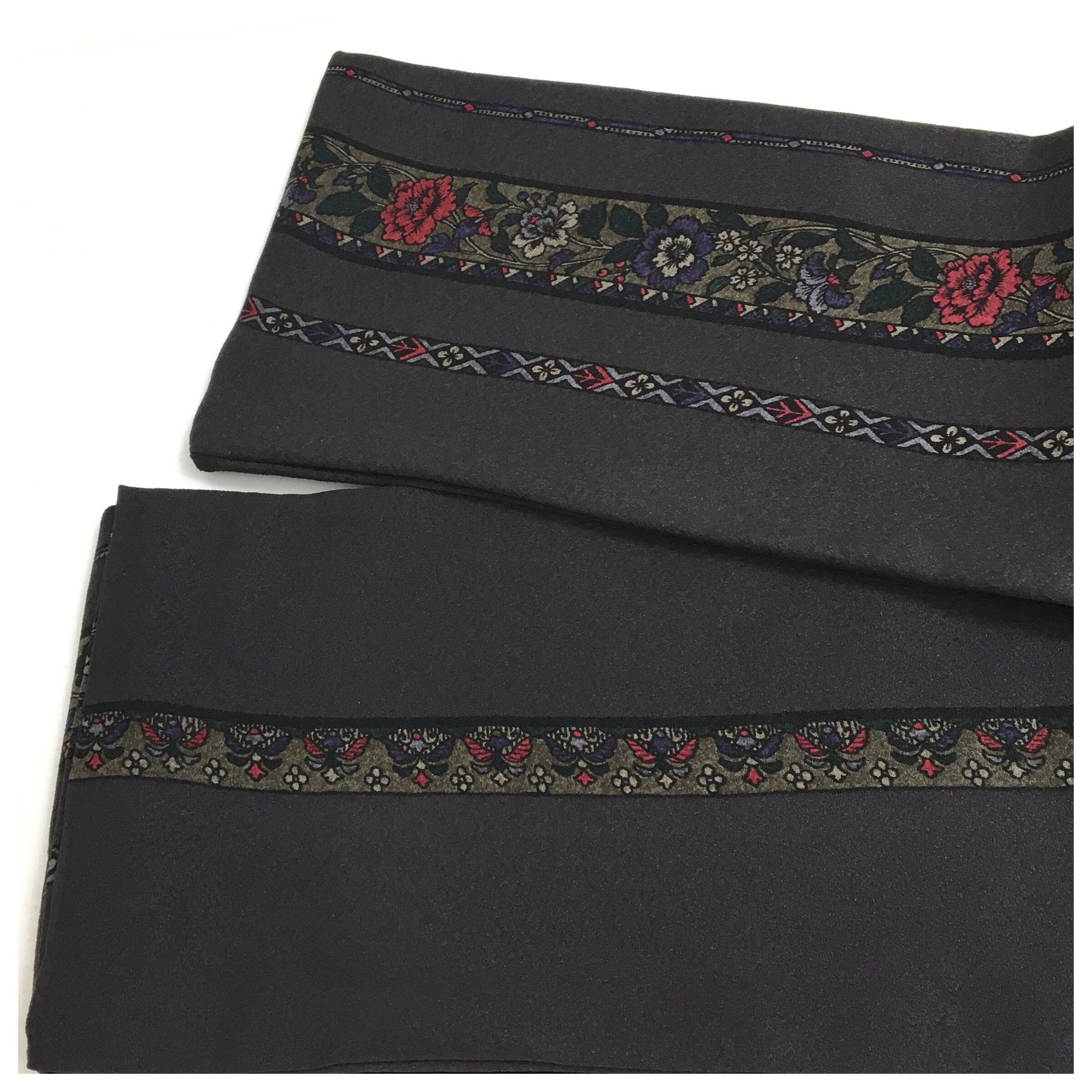 正絹 半幅帯 大人お洒落 墨黒 縞華模様 個性派 長尺424 です。