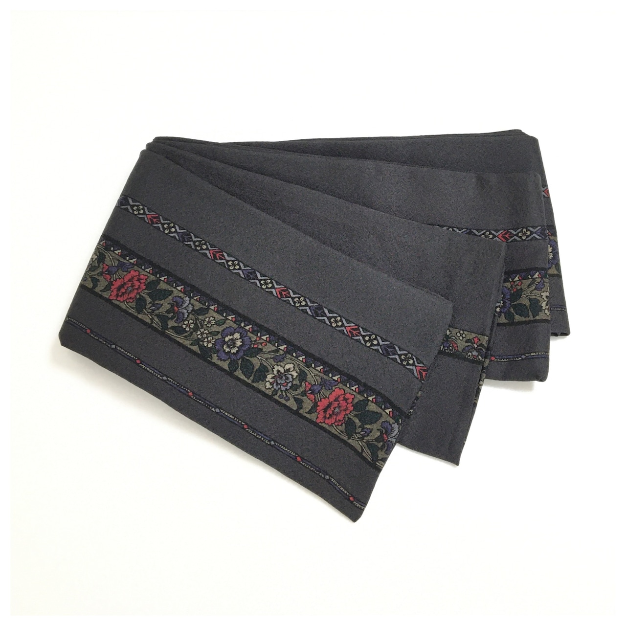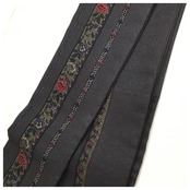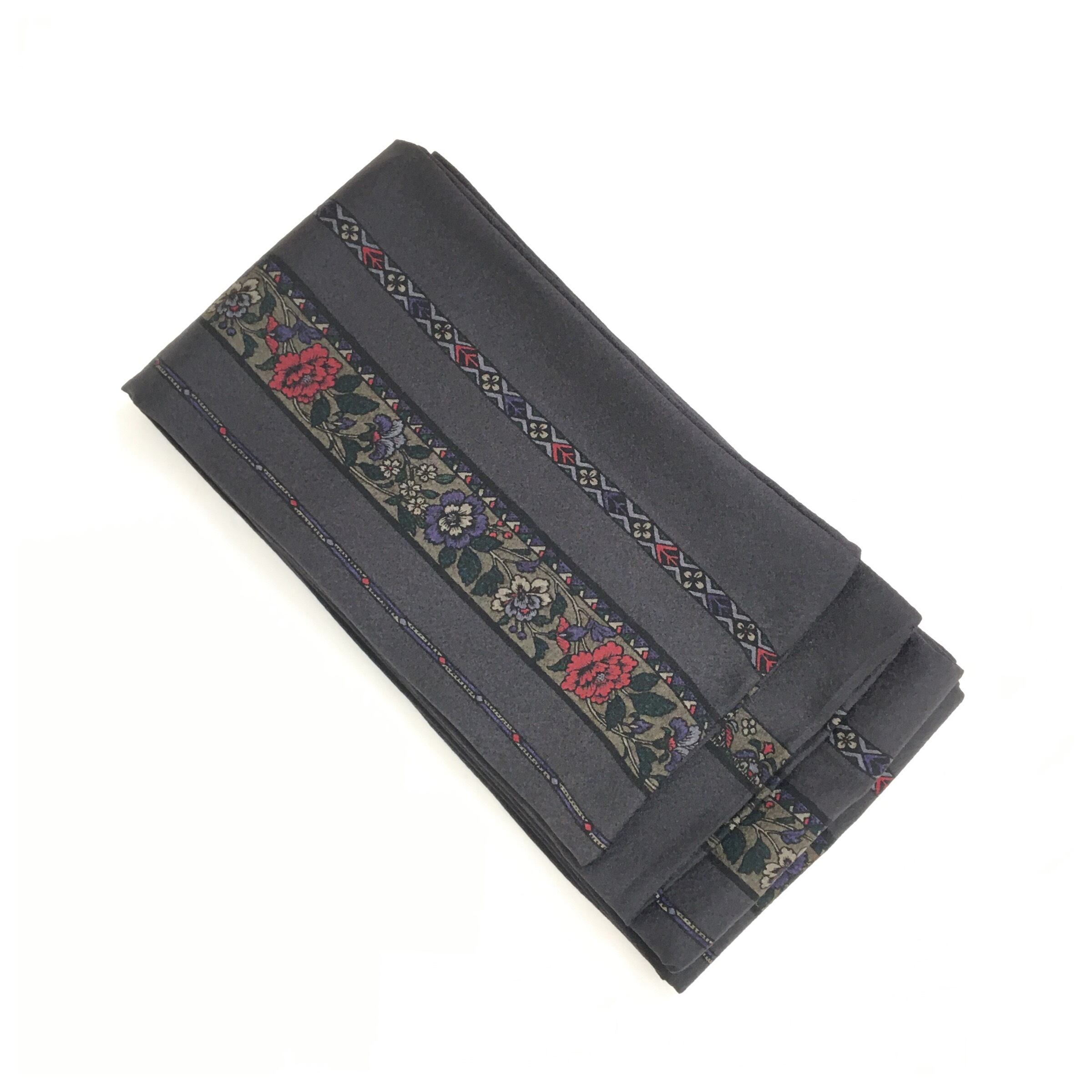 正絹 半幅帯 大人お洒落 墨黒 縞華模様 個性派 長尺424
