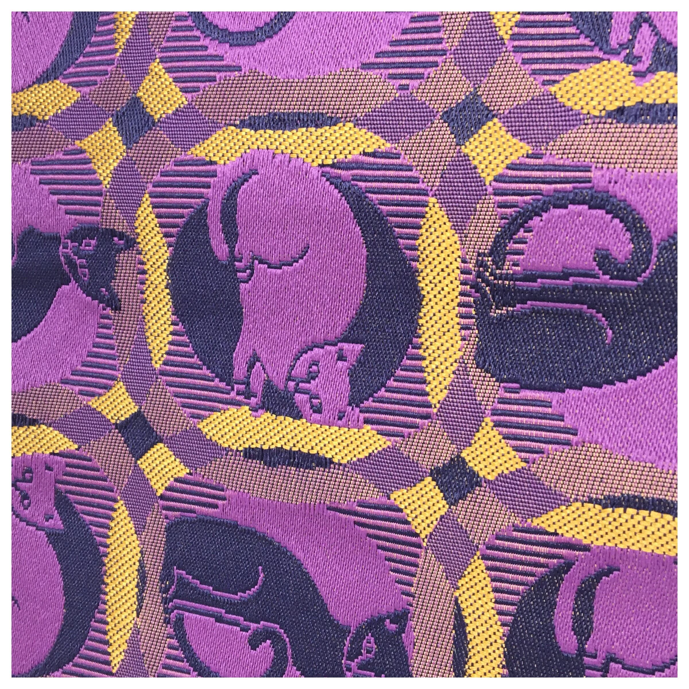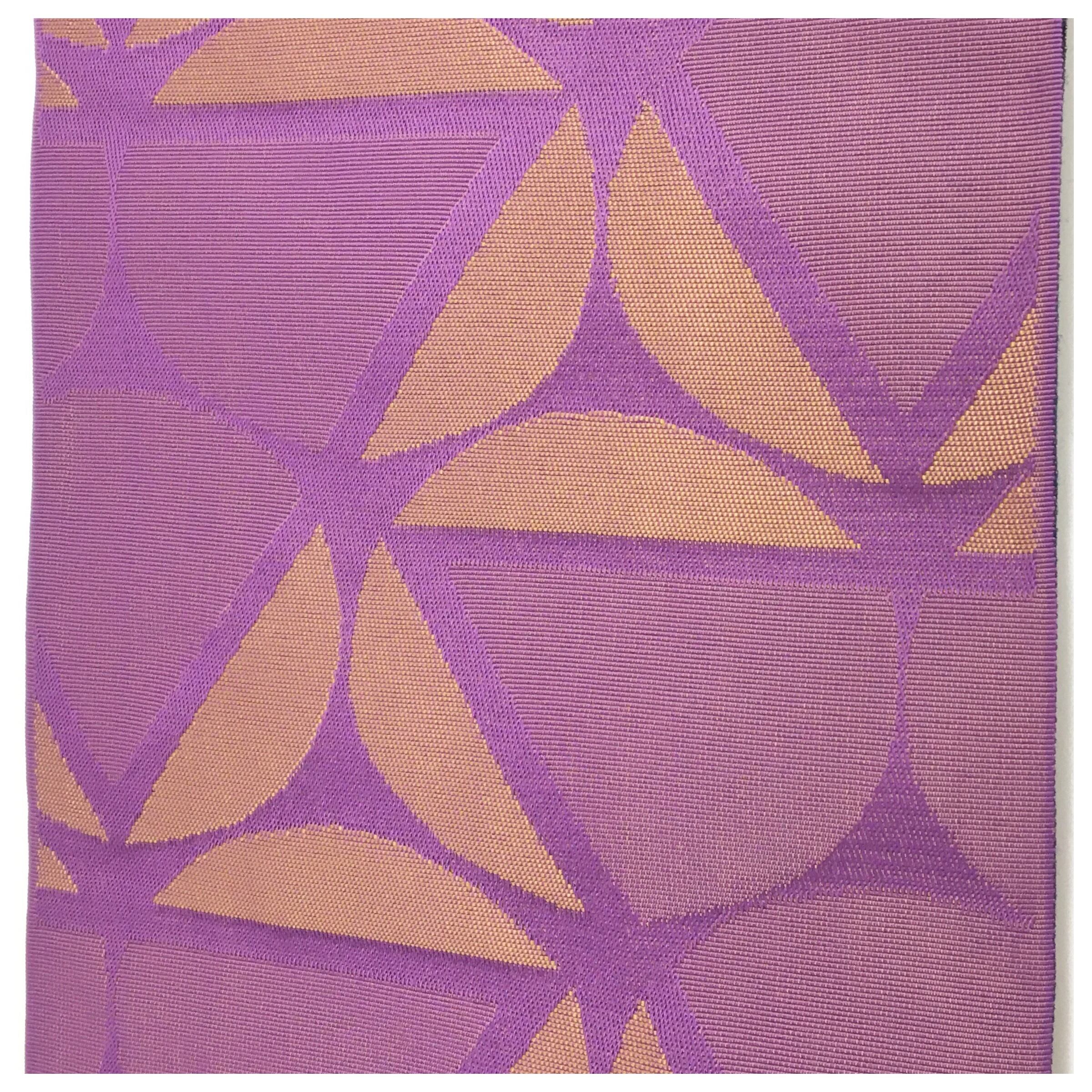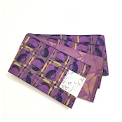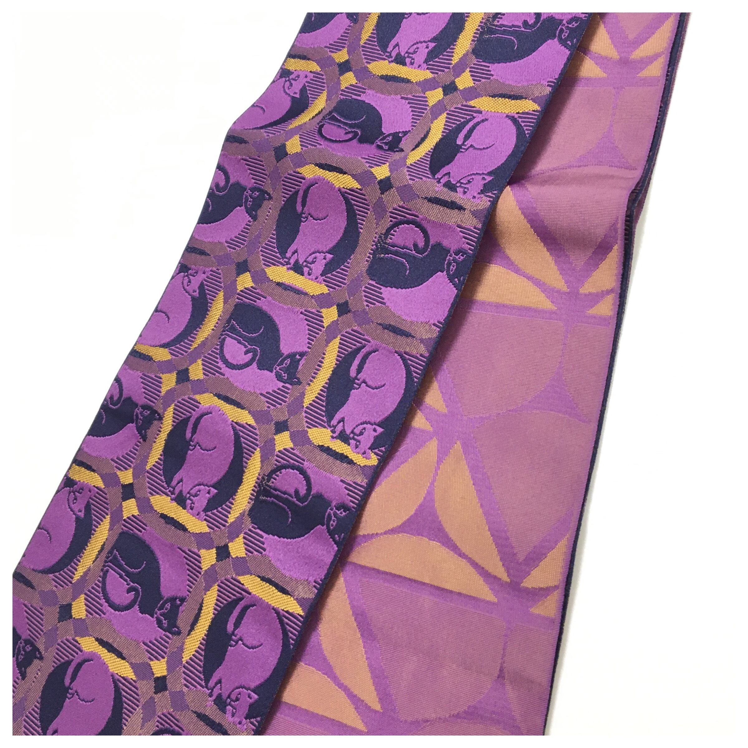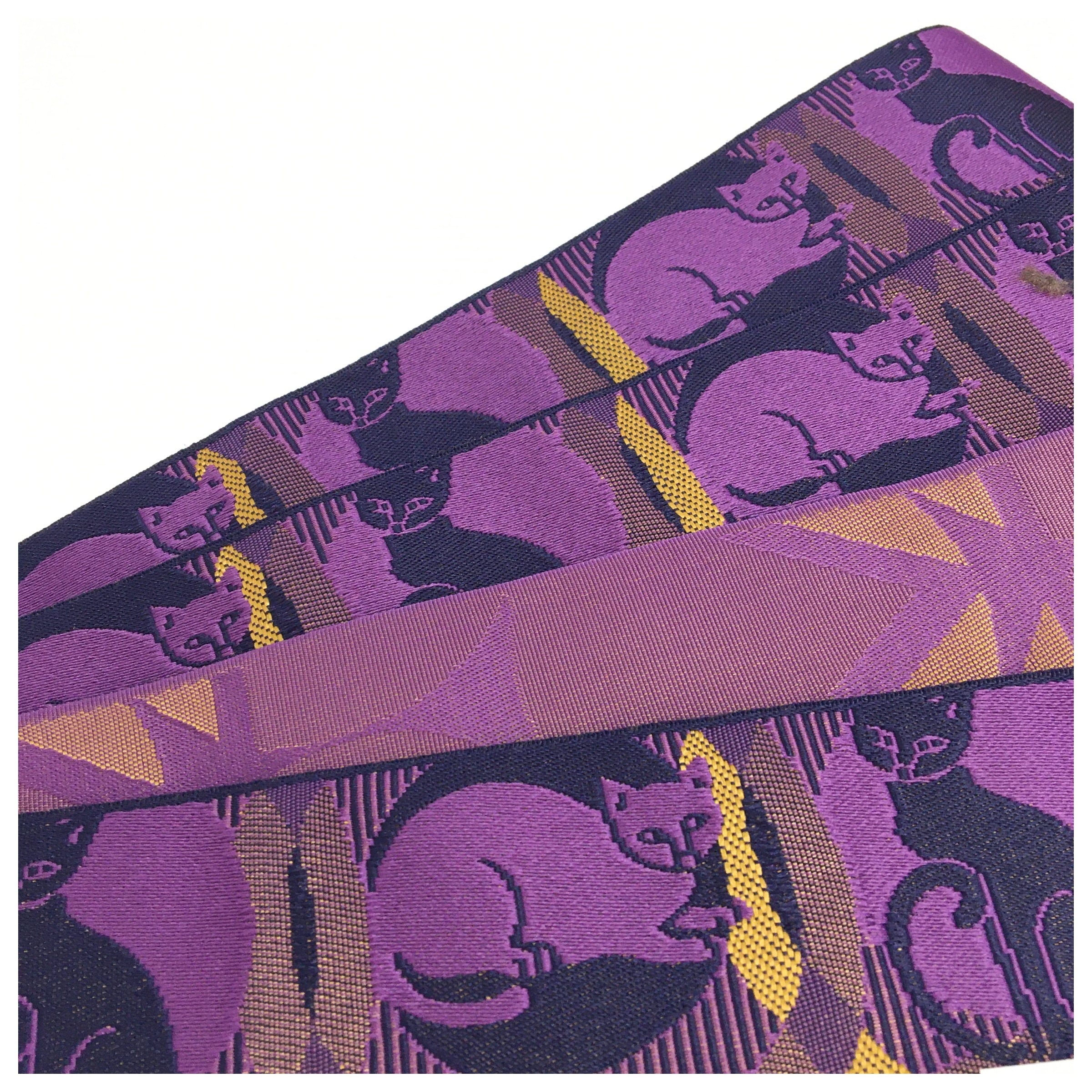 美品 未使用 猫 半幅帯 化繊 紫 両面違い 長さ400